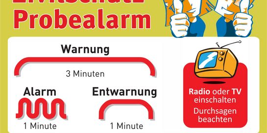 Am Samstag, den 4. Oktober findet der diesjährige Zivilschutz Probealarm zwischen 12:00 und 13:00 Uhr statt.