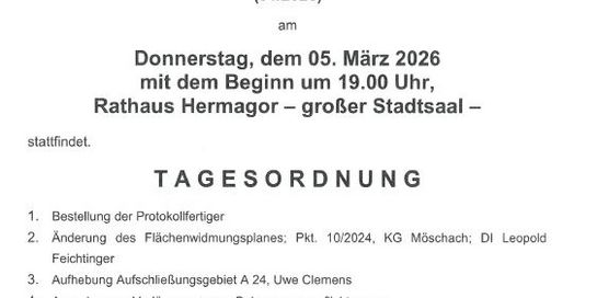 Die nächste Sitzung des Gemeinderates findet am 5. März 2026 um 19.00 Uhr statt.