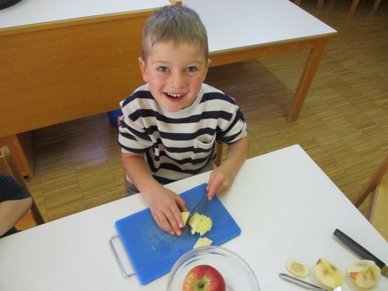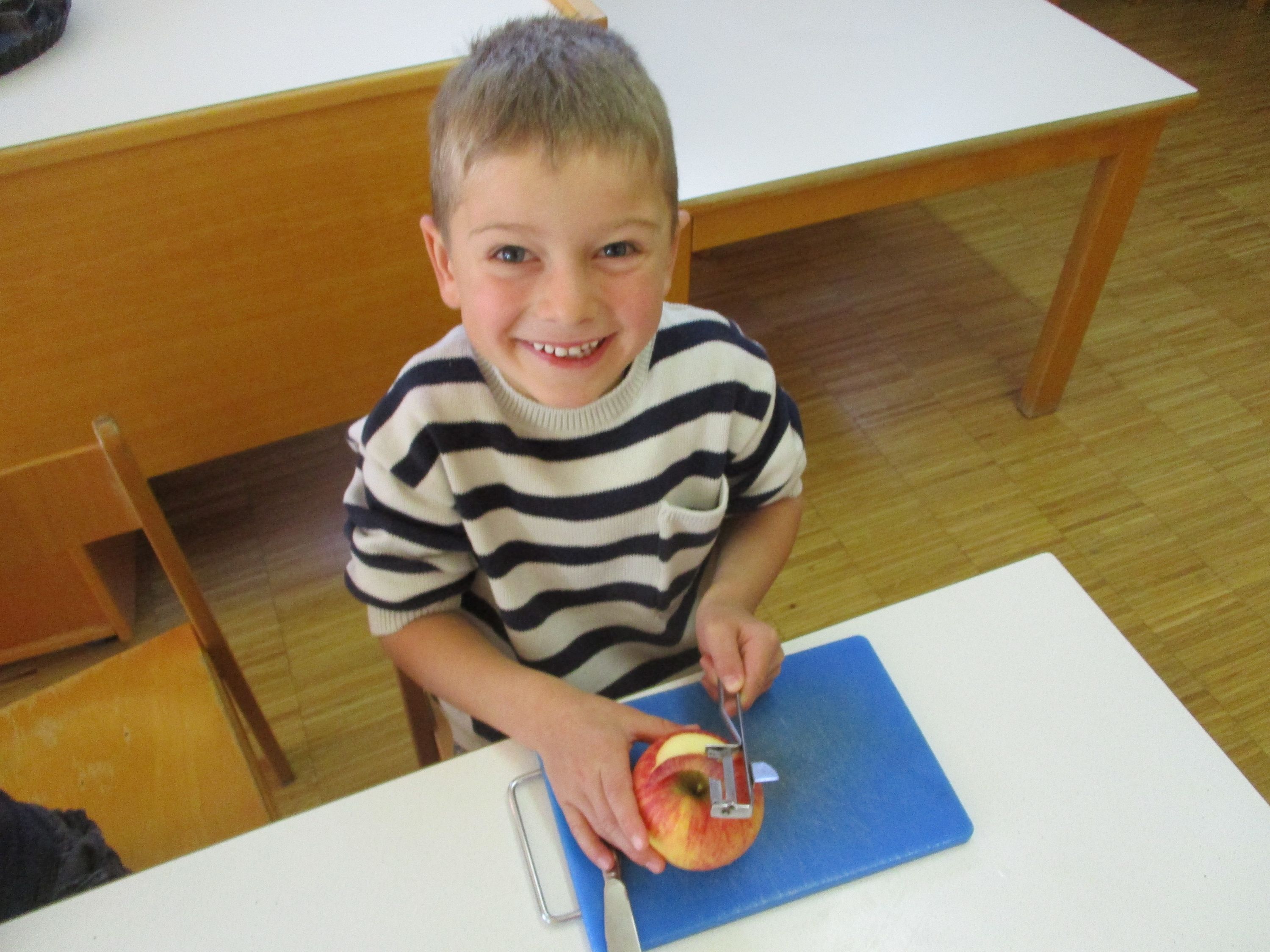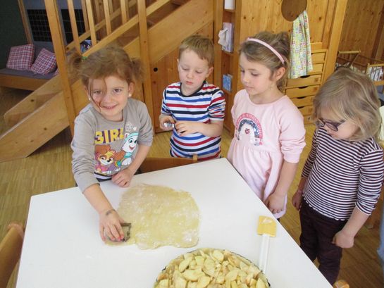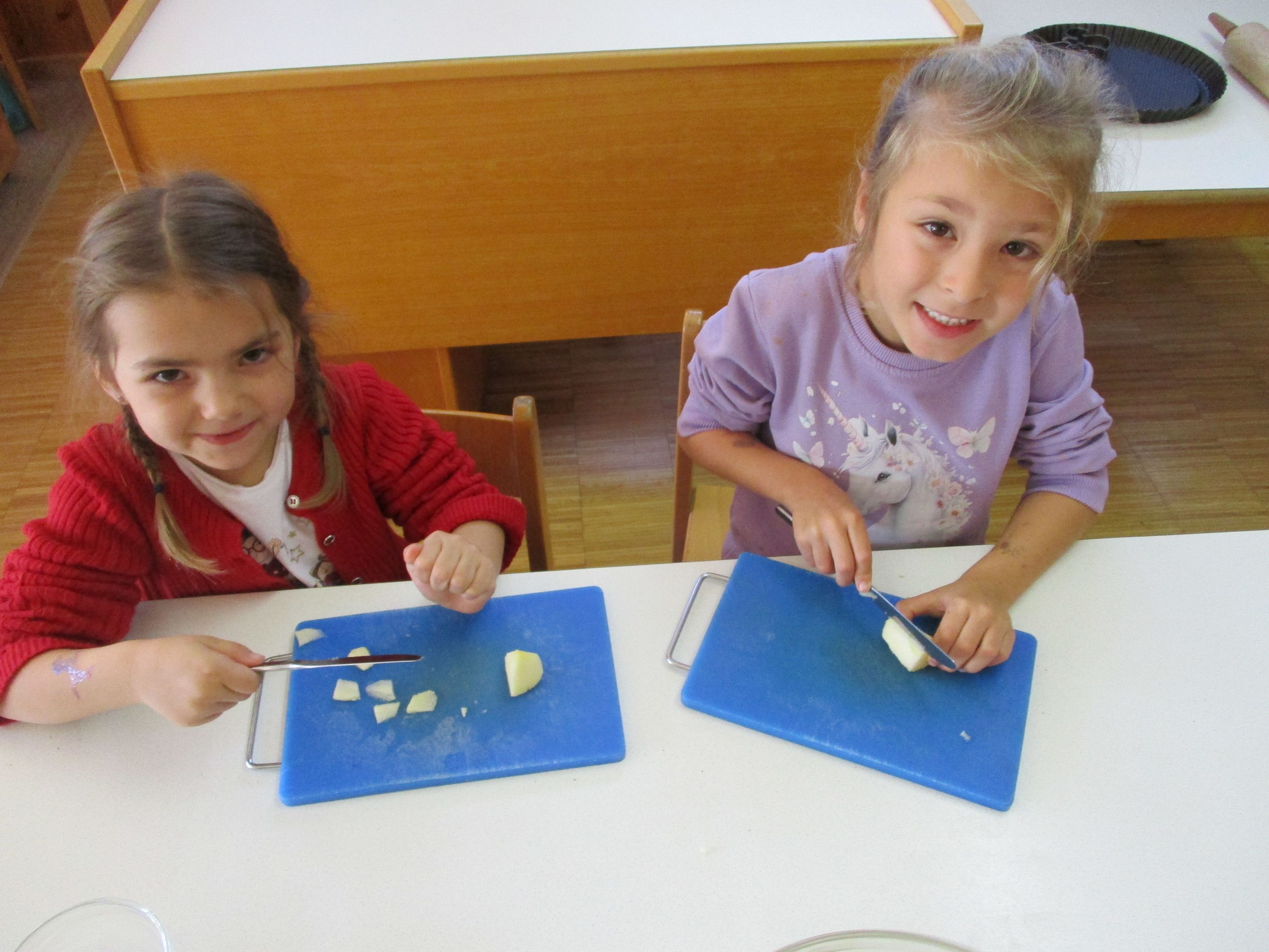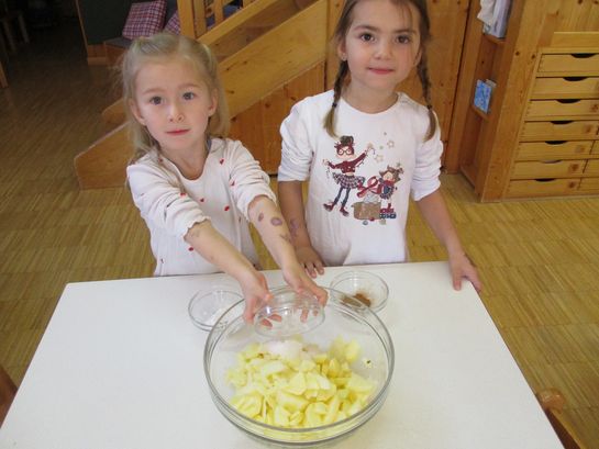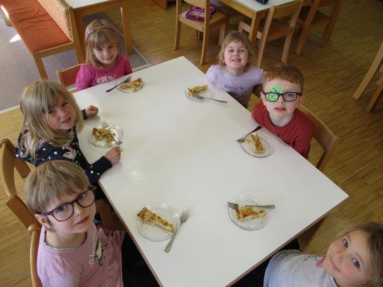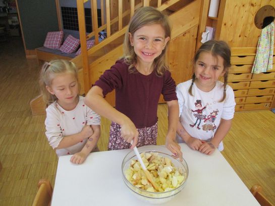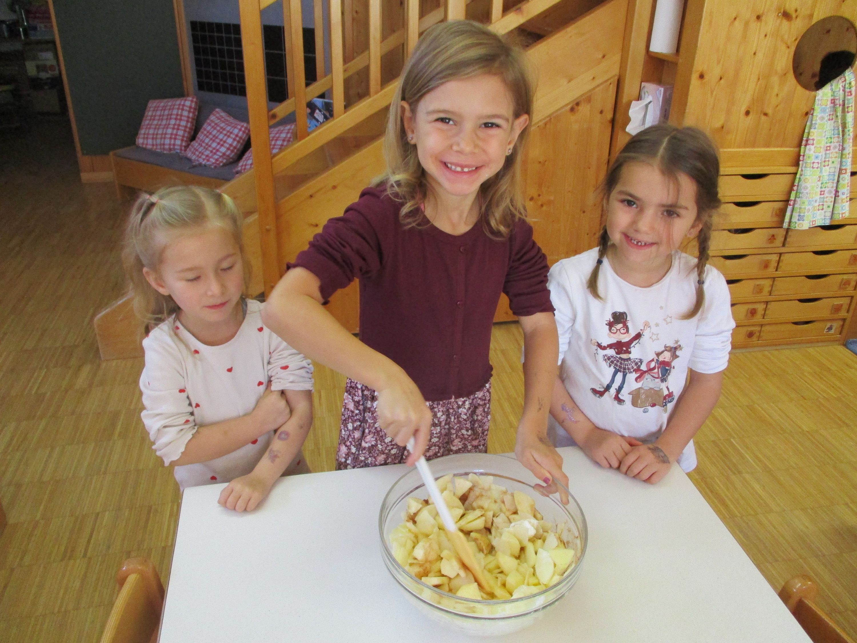 Die Kinder durften die Schritte vom Apfel bis zur Entstehung des Apfelkuchens miterleben.