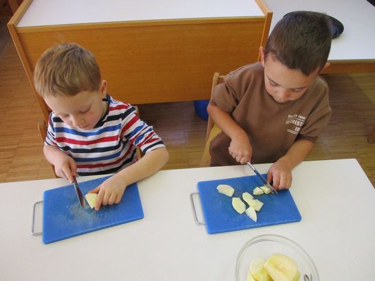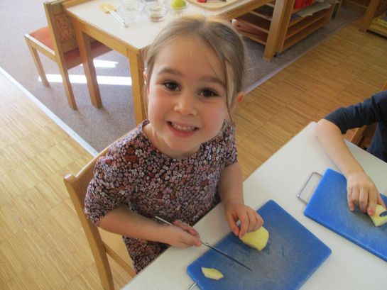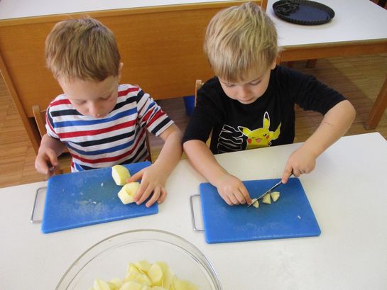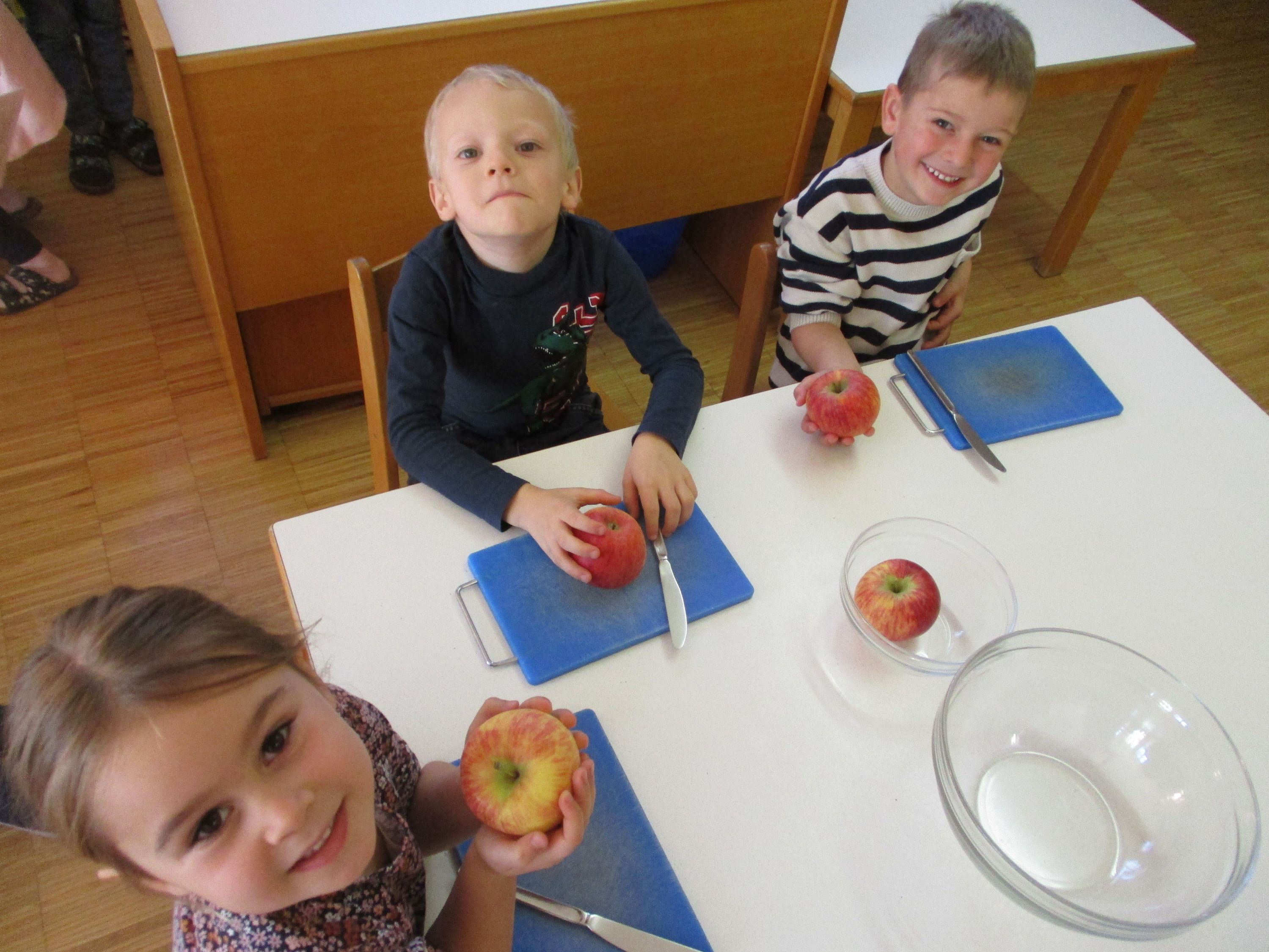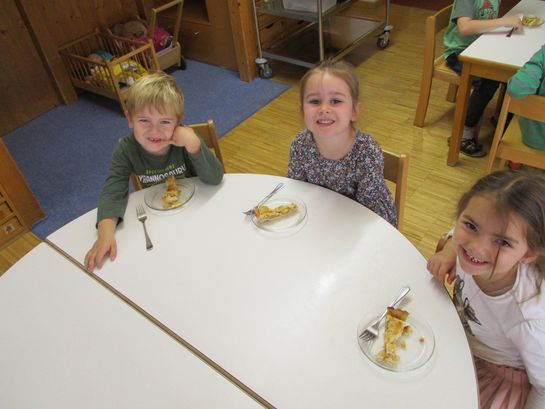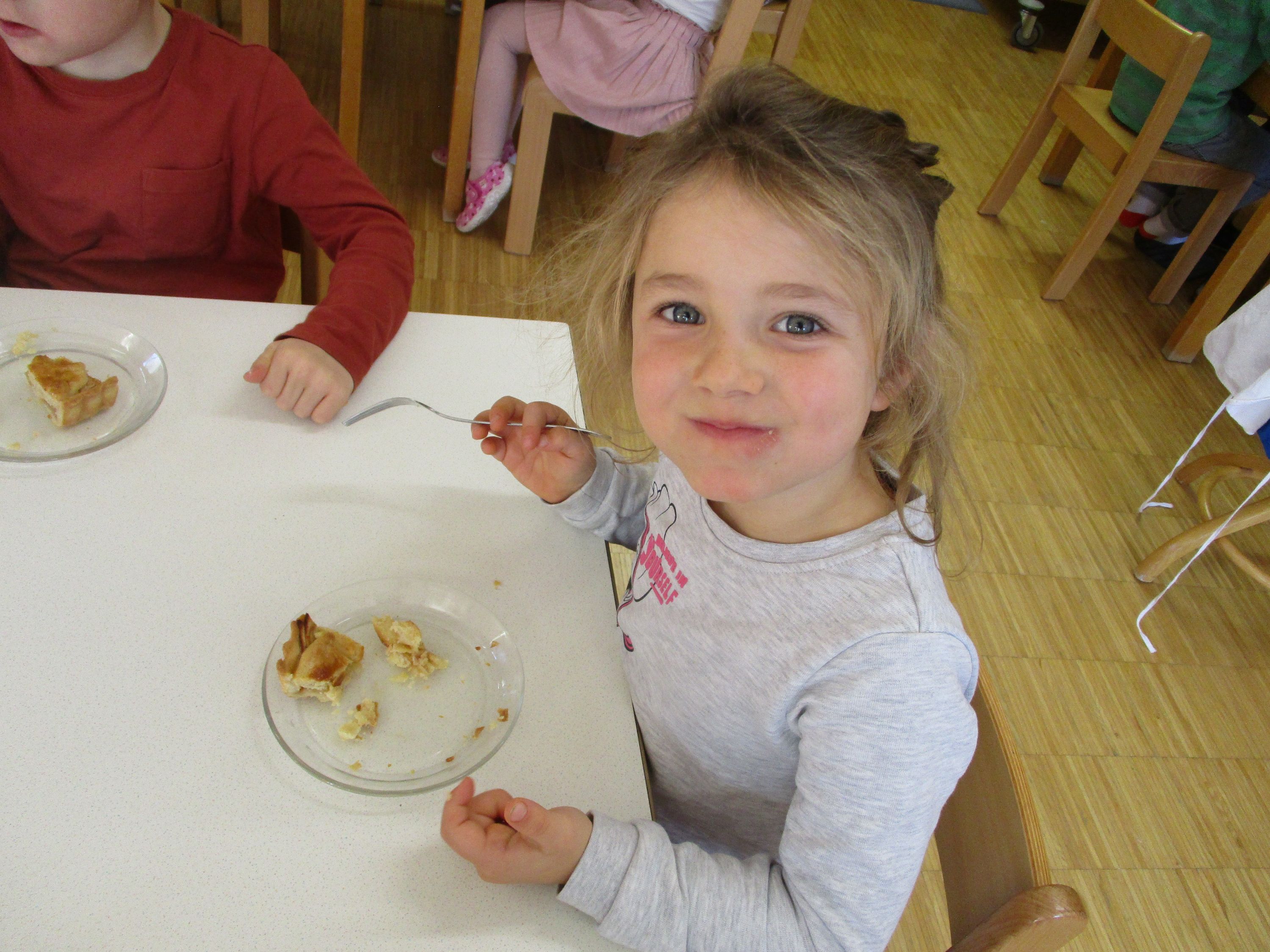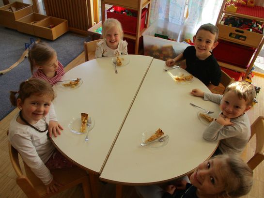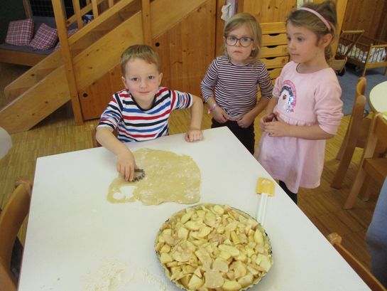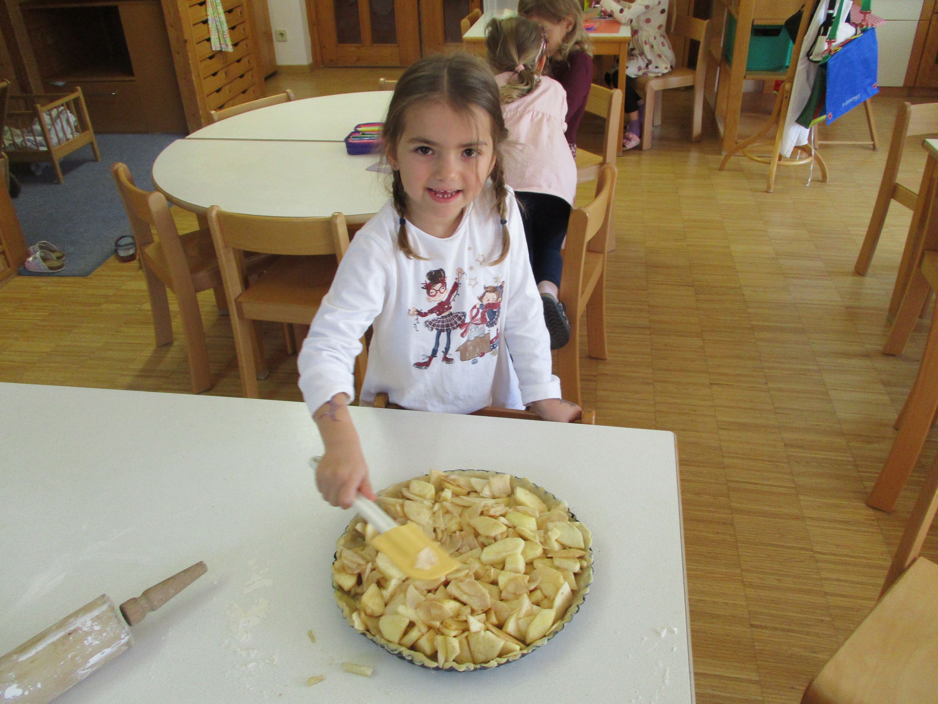 Die Kinder durften die Schritte vom Apfel bis zur Entstehung des Apfelkuchens miterleben.