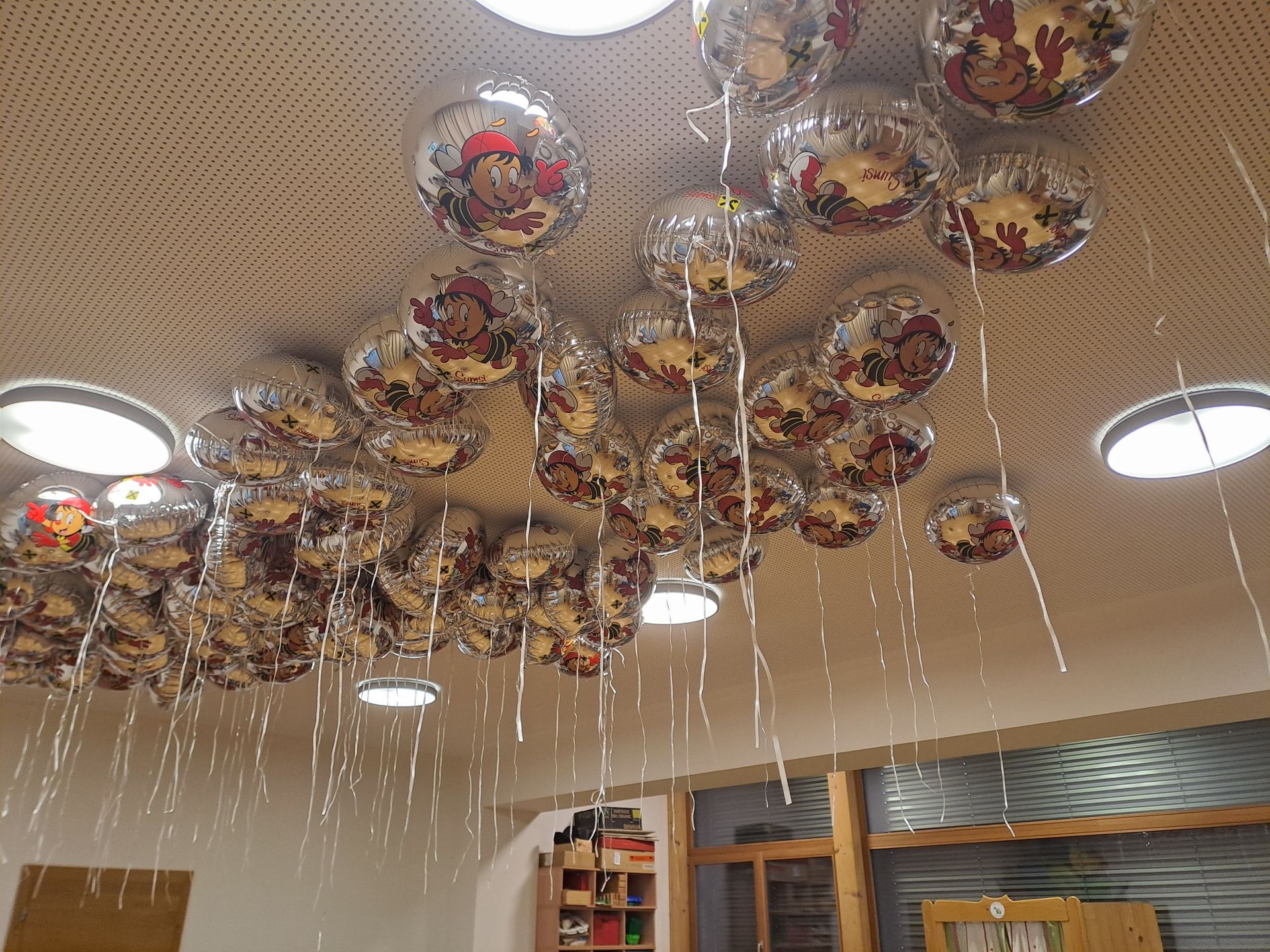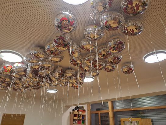 Mit wunderschönen Luftballons besuchten uns heute 3 Mitarbeiter der Raika-Bank Hermagor. Es wurde über Geld und sparen gesprochen und über die Sparkassen.