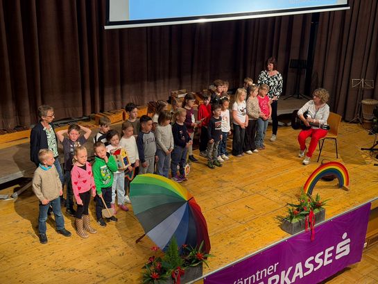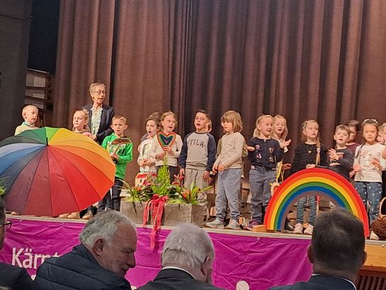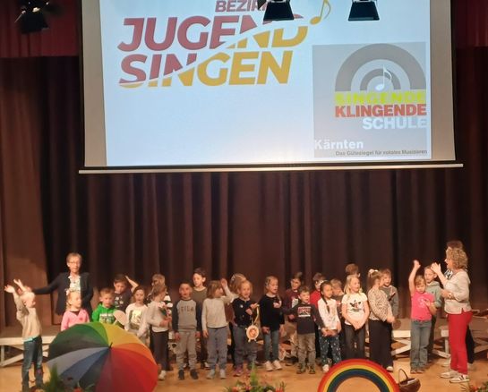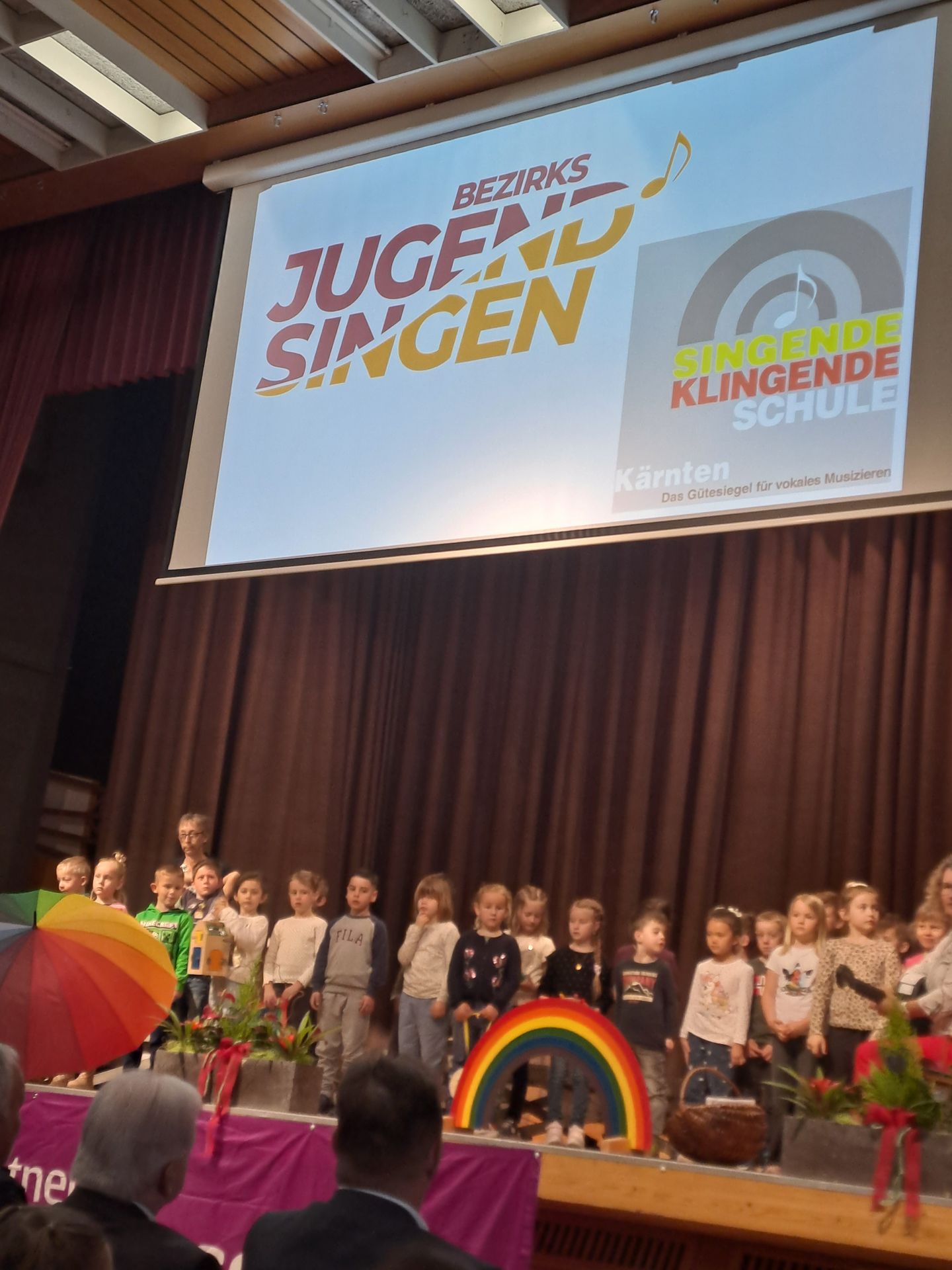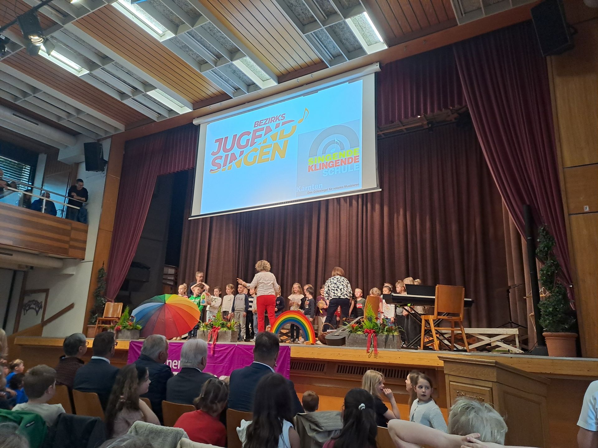 Bei Bezirksjugendsingen präsentierten wir ein Begrüßungslied und unser beliebtes Lied über den Regenbogen.