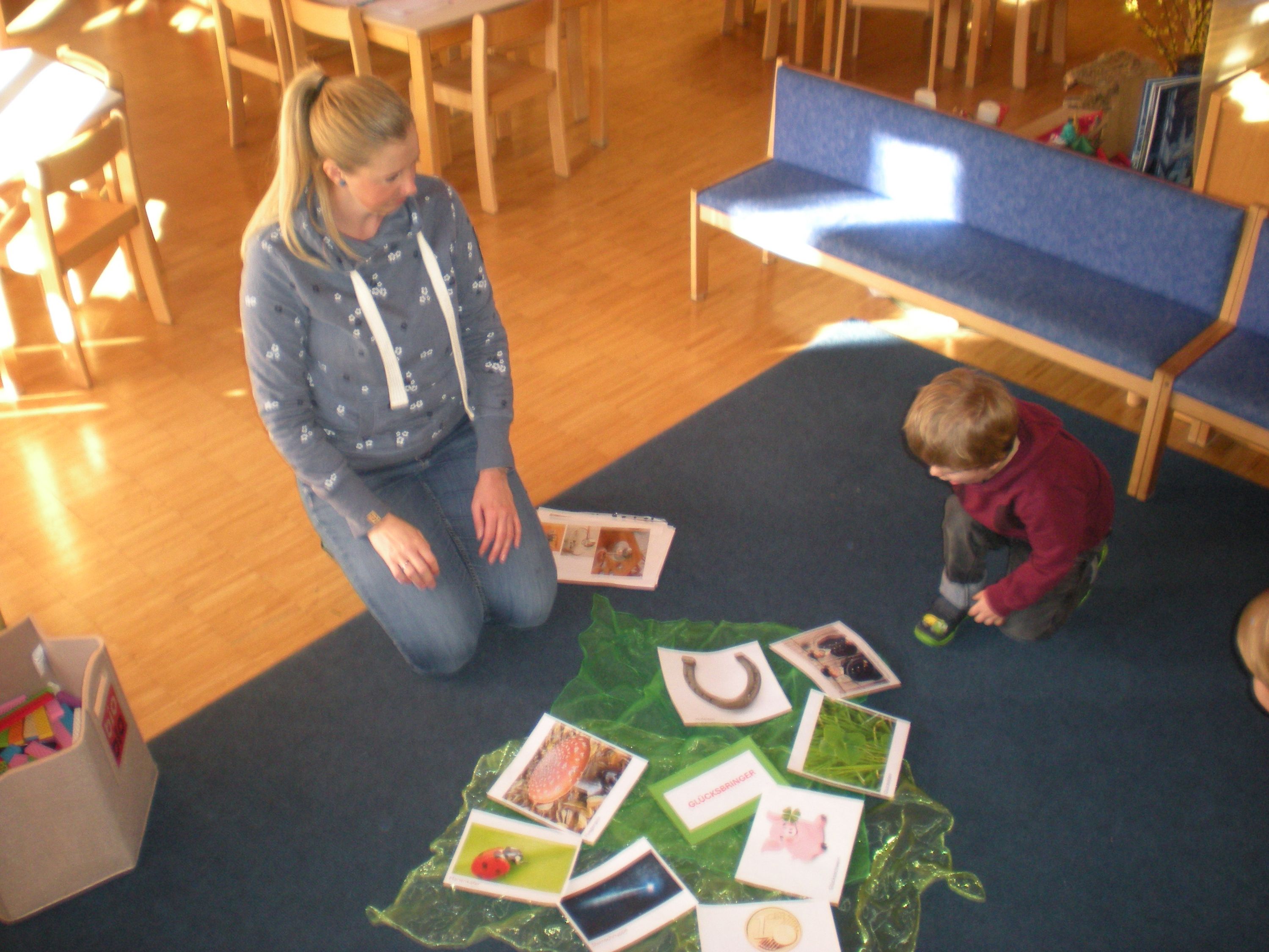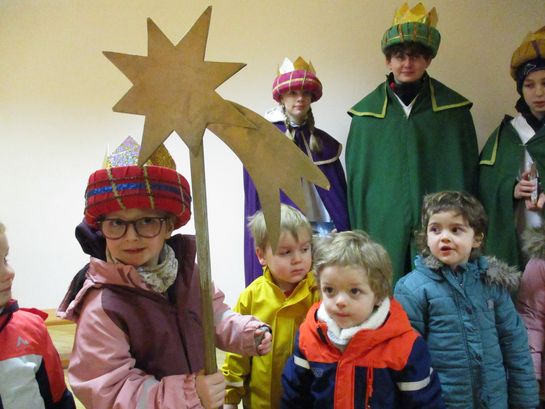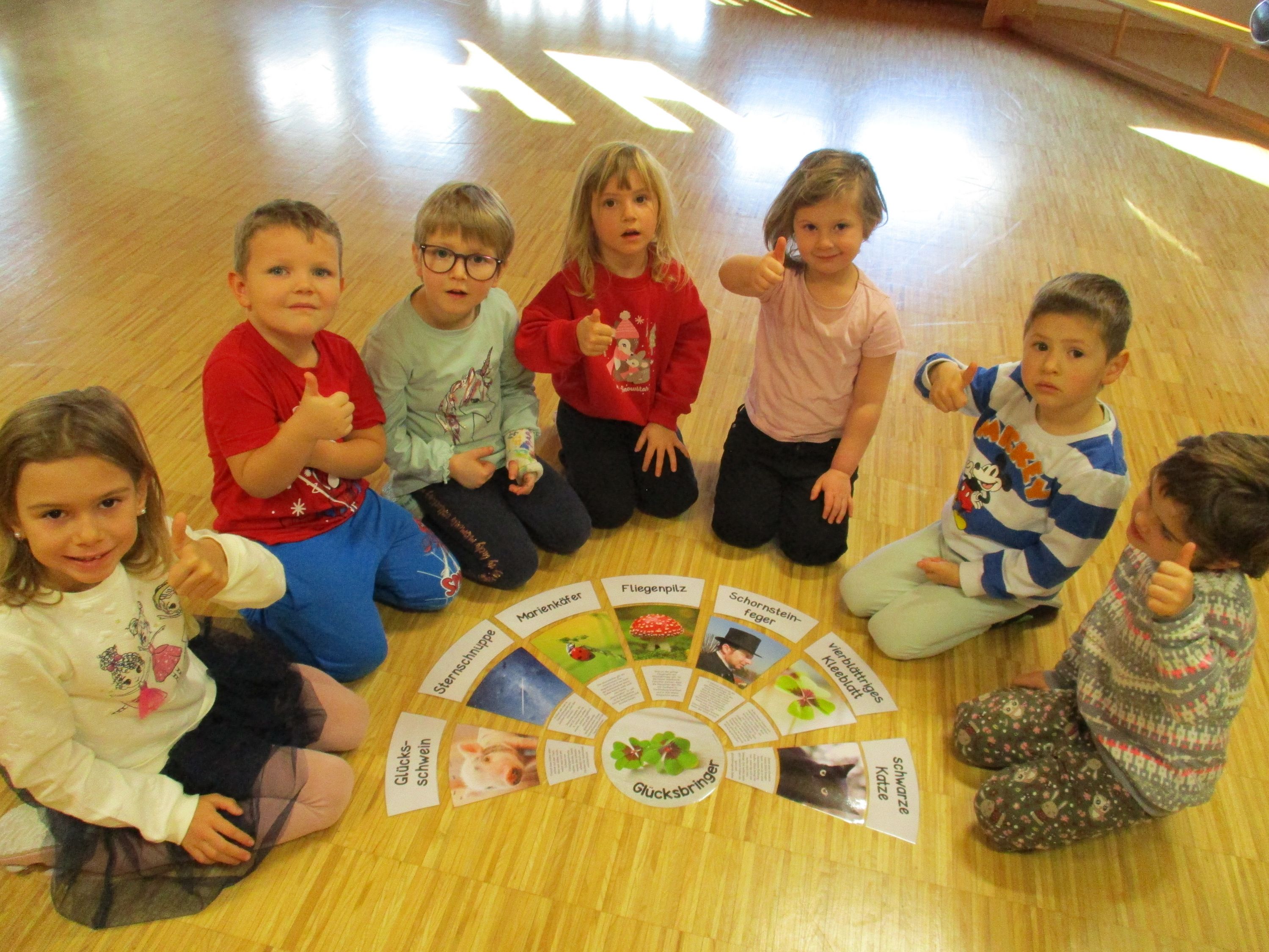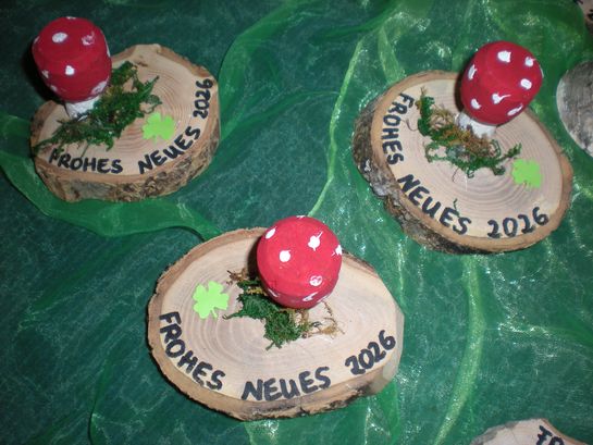 Mit Glücksbringern, guten Wünschen, Bildern, Gesprächen, einem Legekreis und den Sternsingern wird das neue Jahr, als Neuanfang, willkommen geheißen.