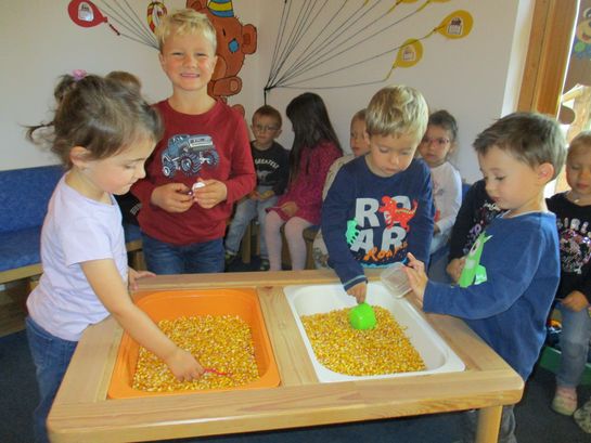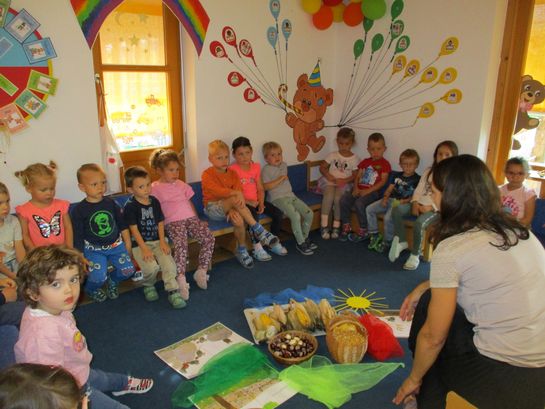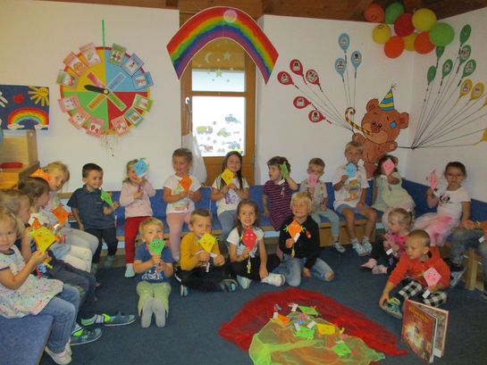 Lustig war die bunte Herbstzeit mit viel Bewegung, sich färbenden Blättern, Drachen, Kastanien und Tieren, die sich auf den Winter vorbereiten.