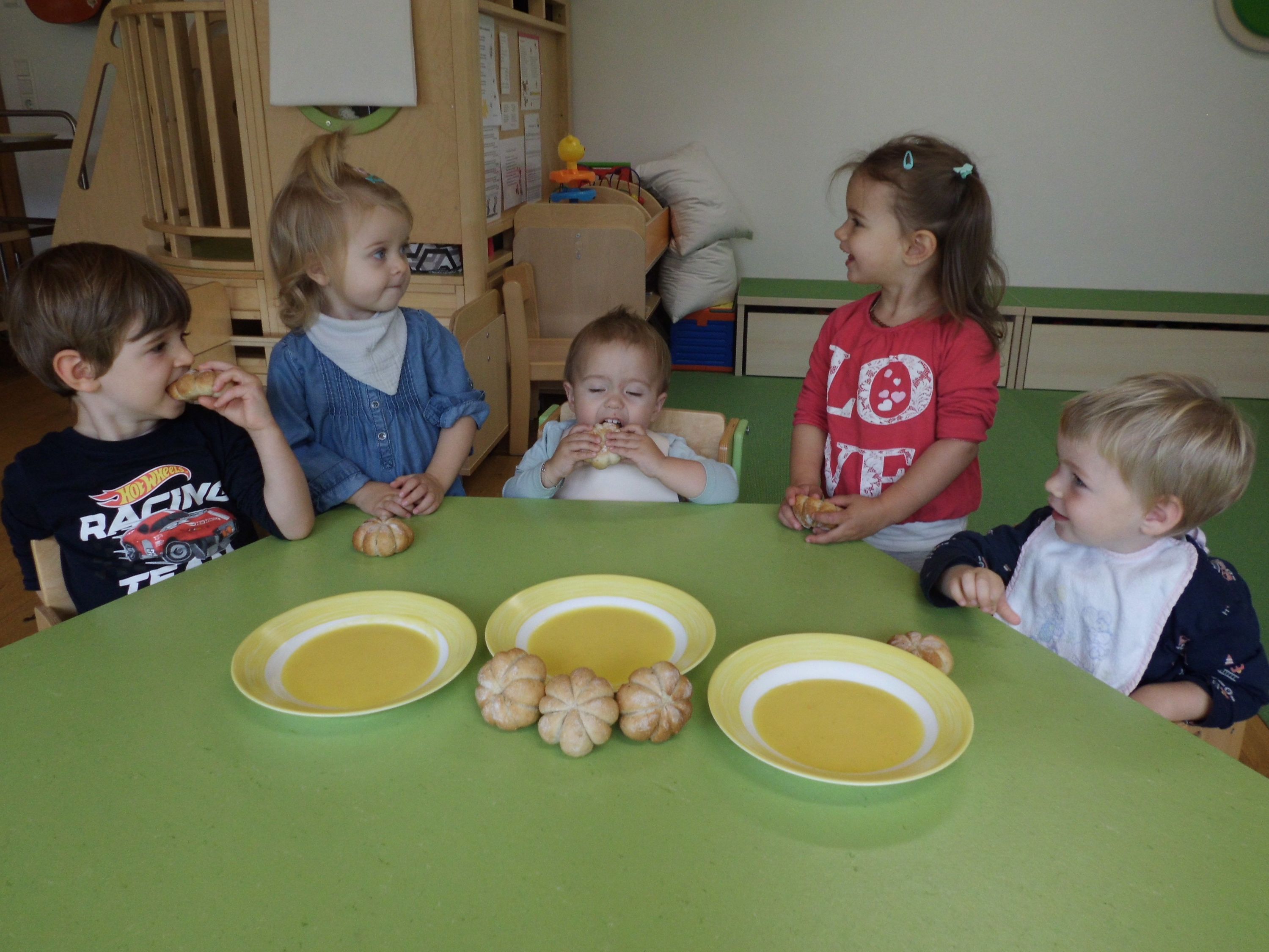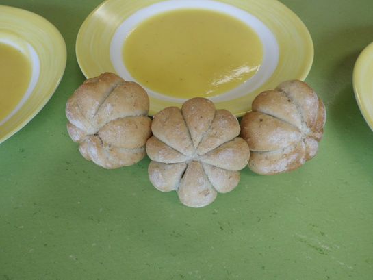 Kürbissuppe und selbst gemachte Kürbisweckerln