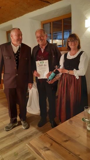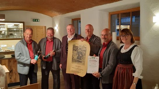 Anschließend gratulierte Herr Armin Schertler zu langjährigen Mitgliedschaften: Herrn Rudolf Dollinger (20 Jahre) und MGV Erika (50 Jahre). Der MGV Erika erhielt noch zusätzlich den „Großen Dank“ für Verdienste um die Heimat. Als Dankeschön stimmte die Abordnung des MGV Erika dann gleich einige Lieder an!