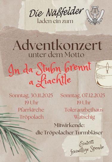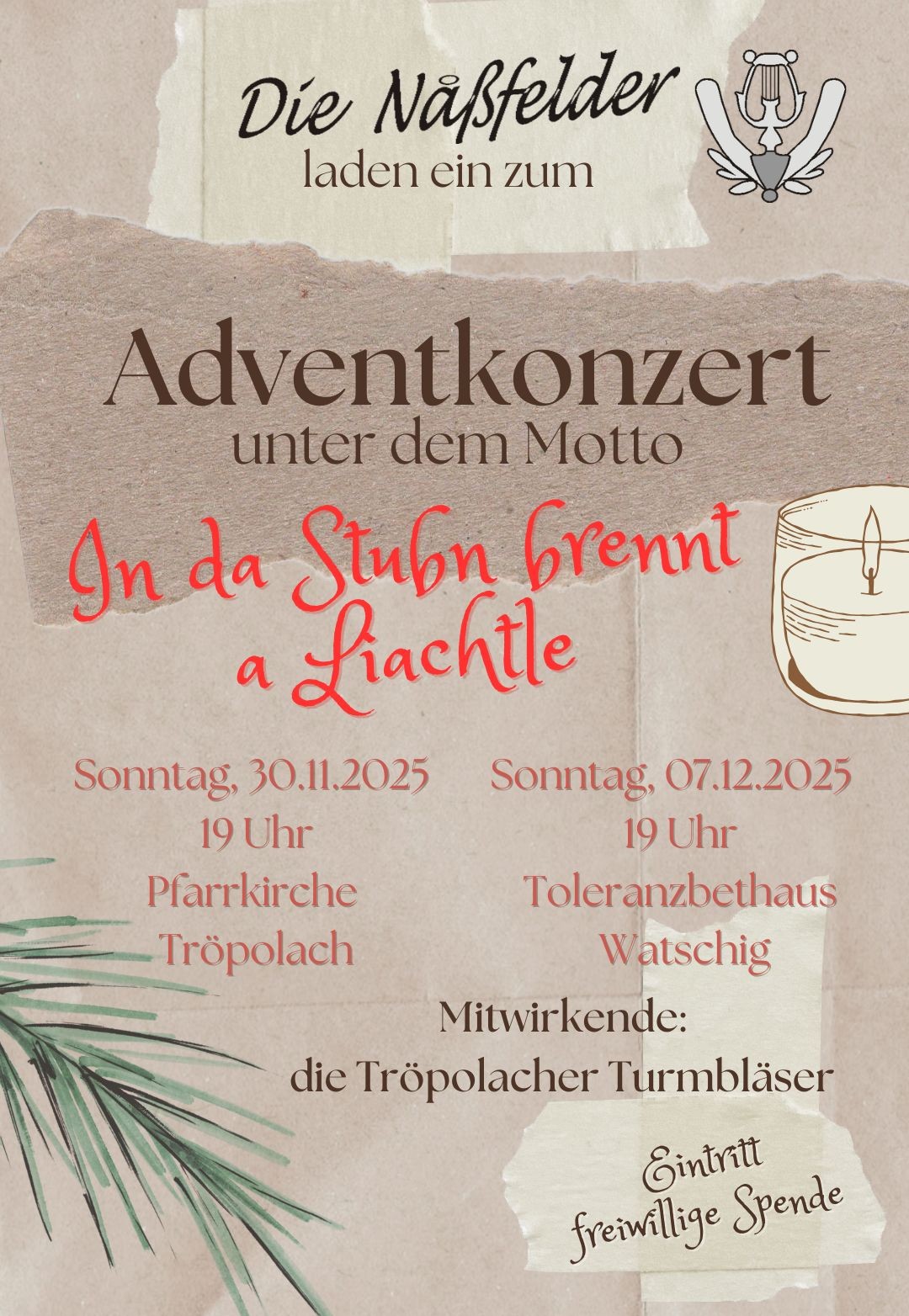 Einladung zum Adventkonzert "In der Stubn brennt a Liachtle" am 30. Nov. 2025 in der Pfarrkirche Tröpolach