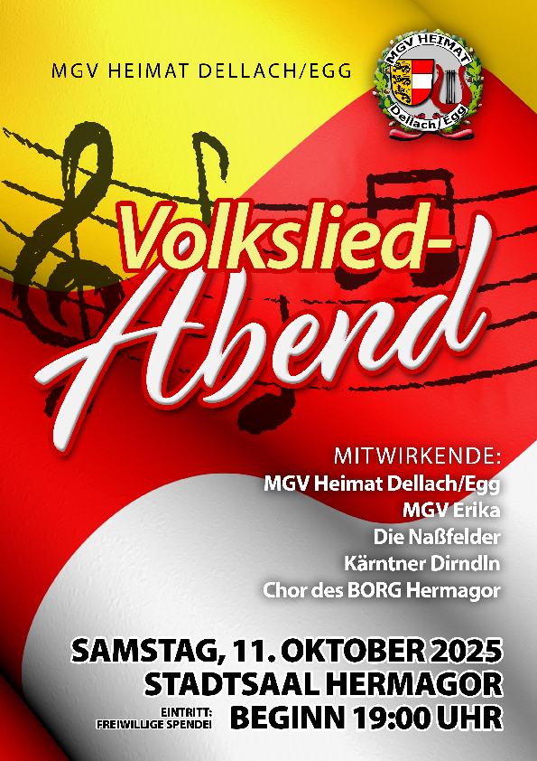 Einladung zum Volksliedabend am 11. Okt. 2025 im Stadtsaal Hermagor