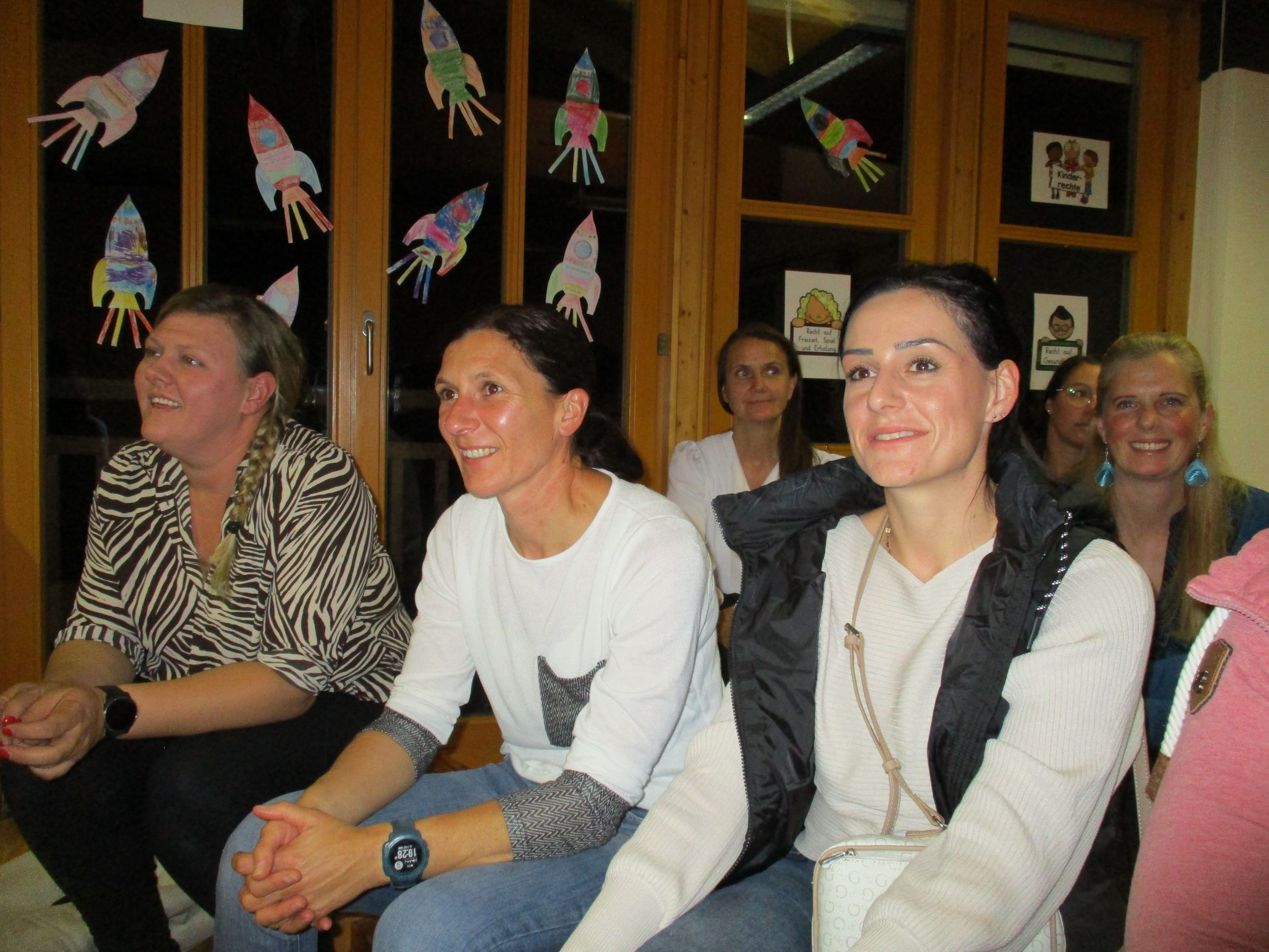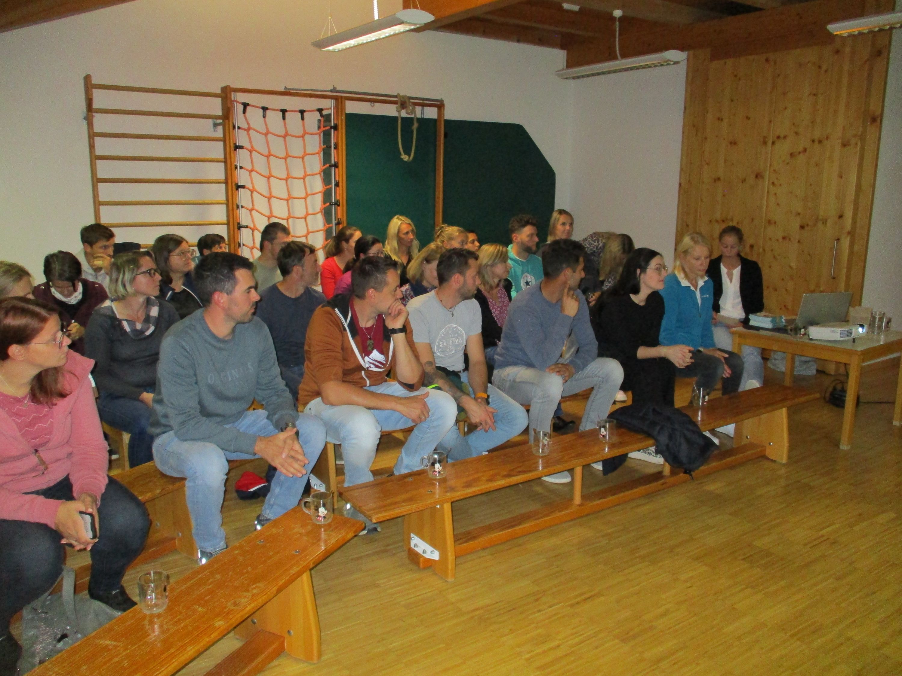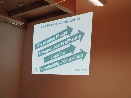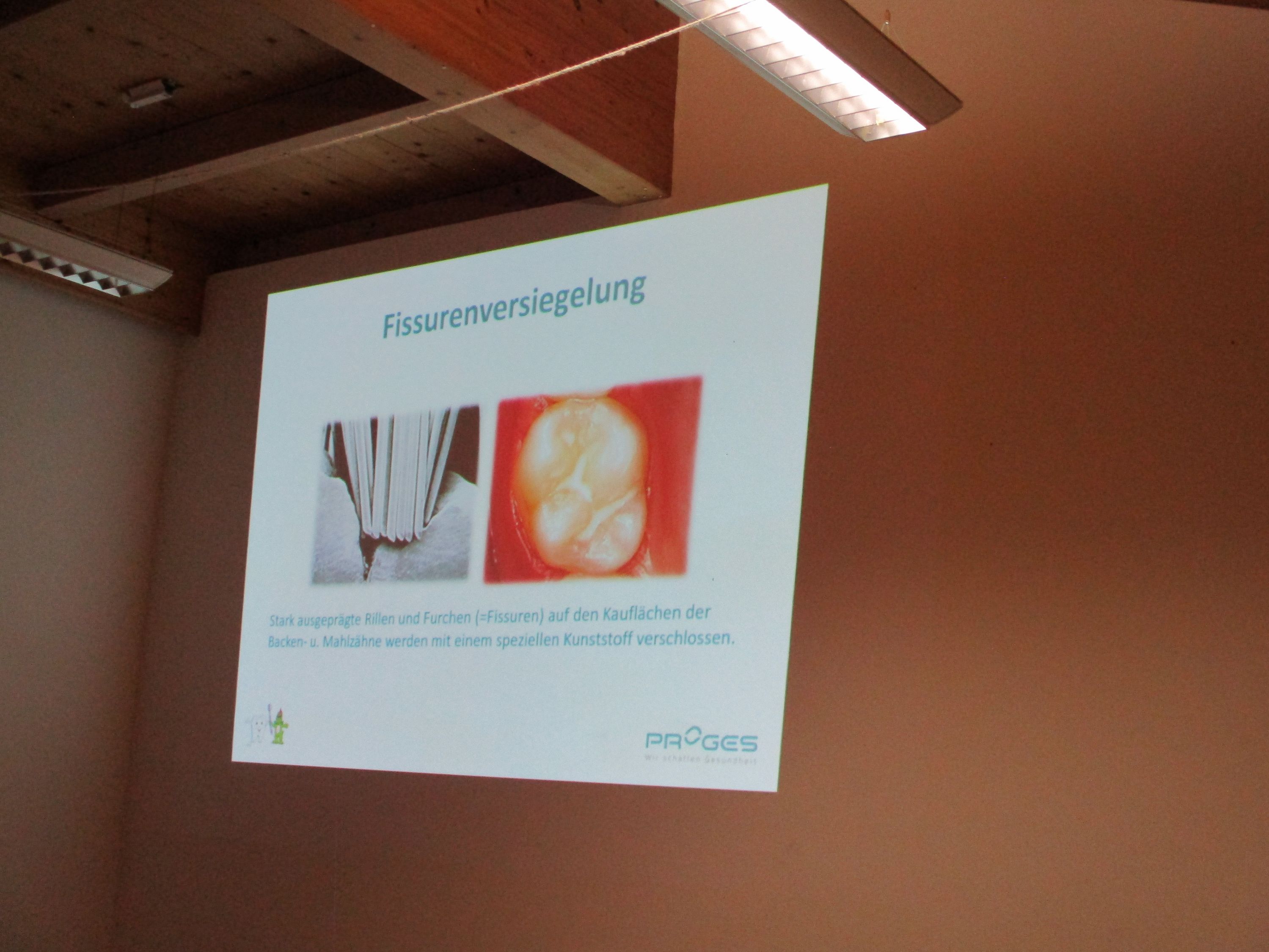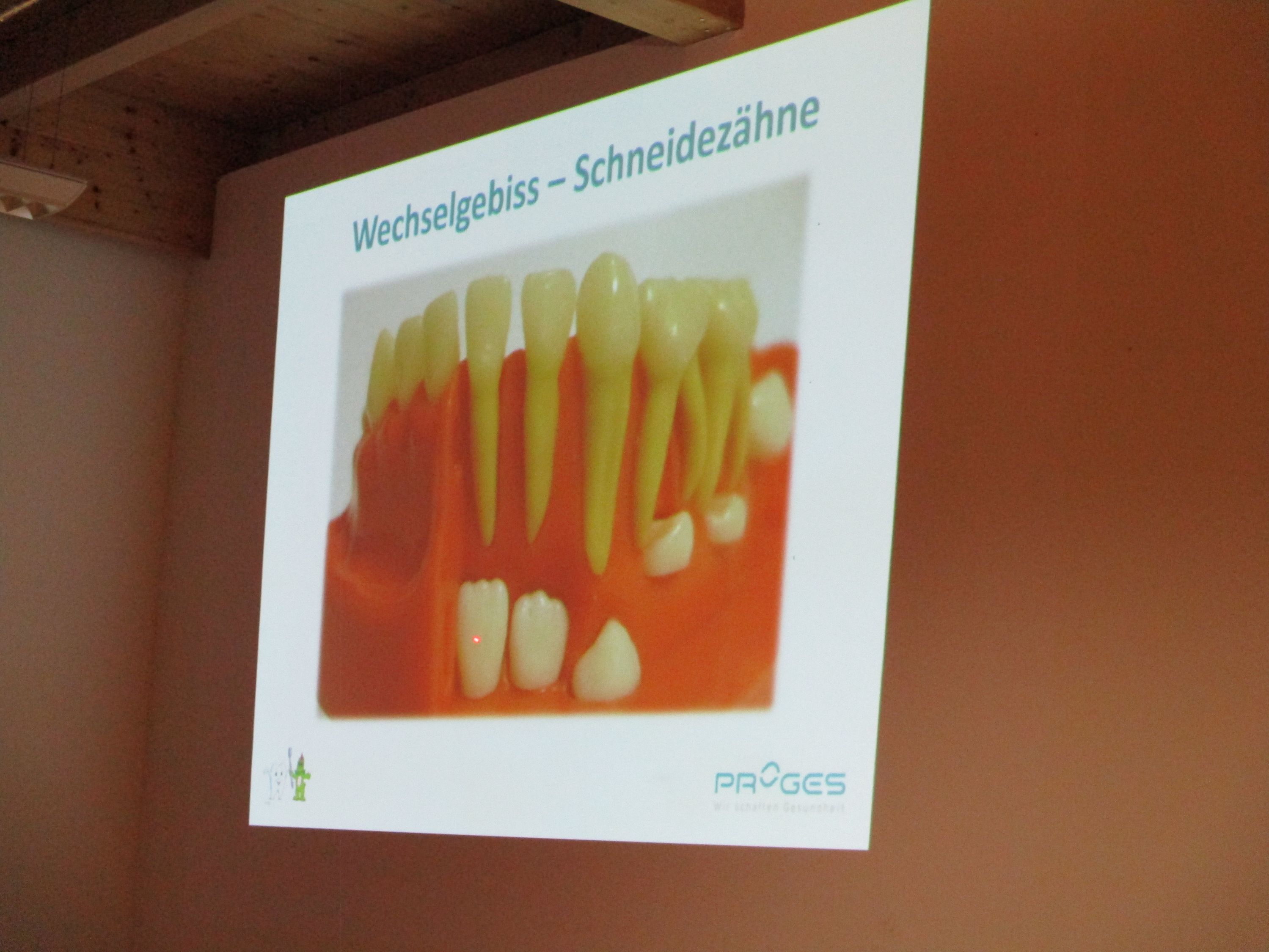Es wurden sehr wichtige Themen zur Zahngesundheit besprochen. Zahnärztin Daniela Pichler und Zahngesundheitserzieherin Monja Ebenwaldner erklärten die Bedeutung der Milchzähne und ihre Pflege. Die Ernährung war ein Schwerpunkt und natürlich das Vorbildverhalten, sowie der Einfluss der Zähne auf die Sprache. Wie bei jedem ersten Elternabend wurde das Jahresthema mit den Aktionen und Daten vorgestellt, damit Eltern frühzeitig planen können.