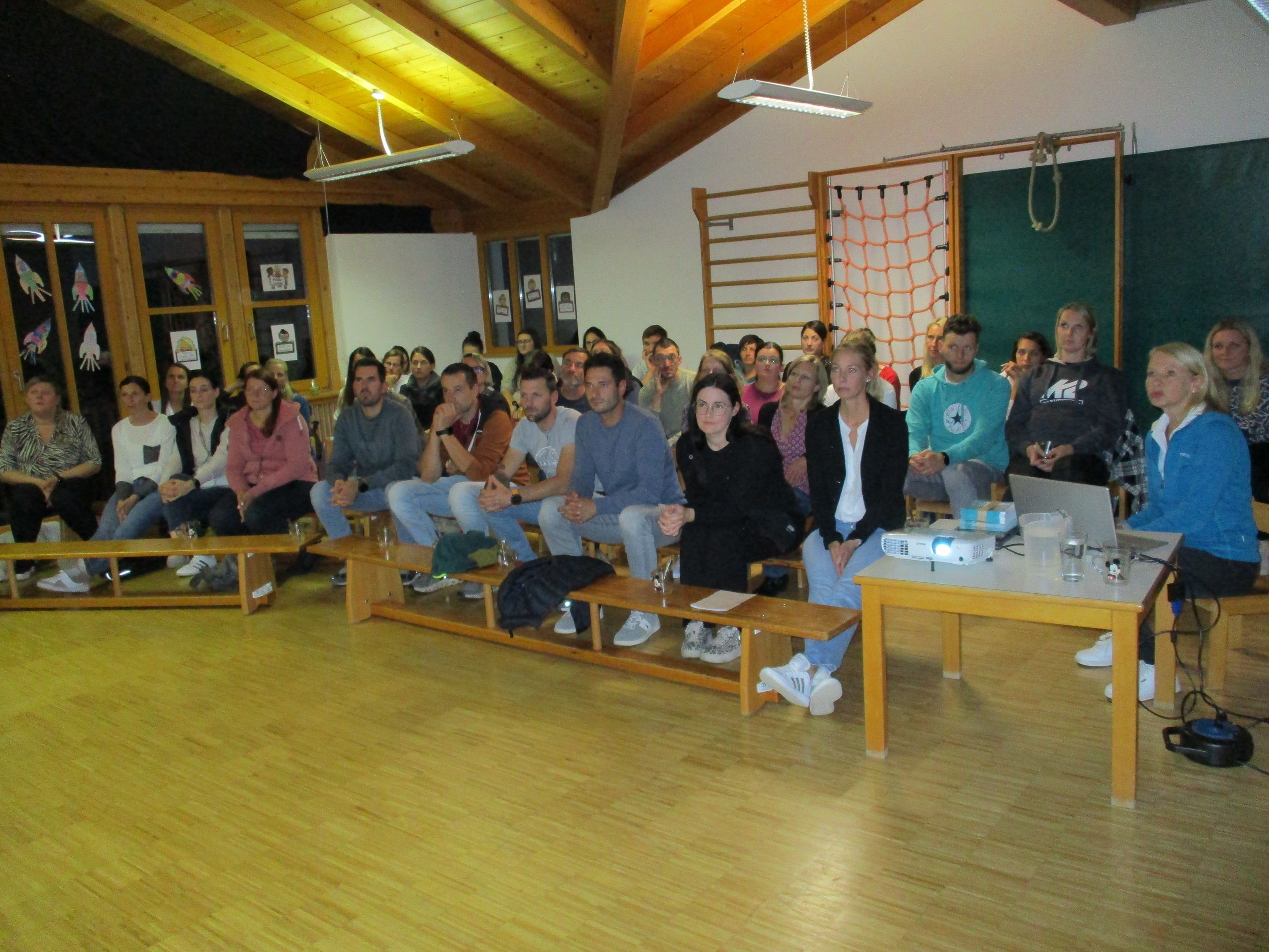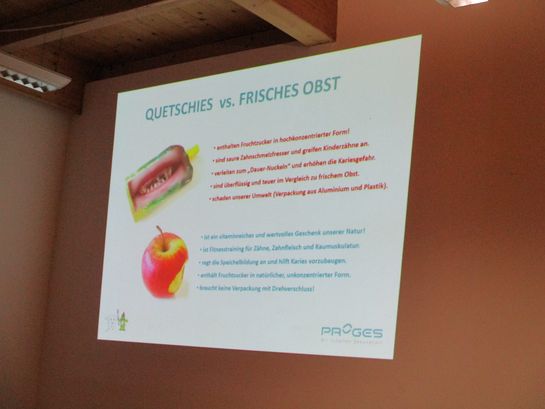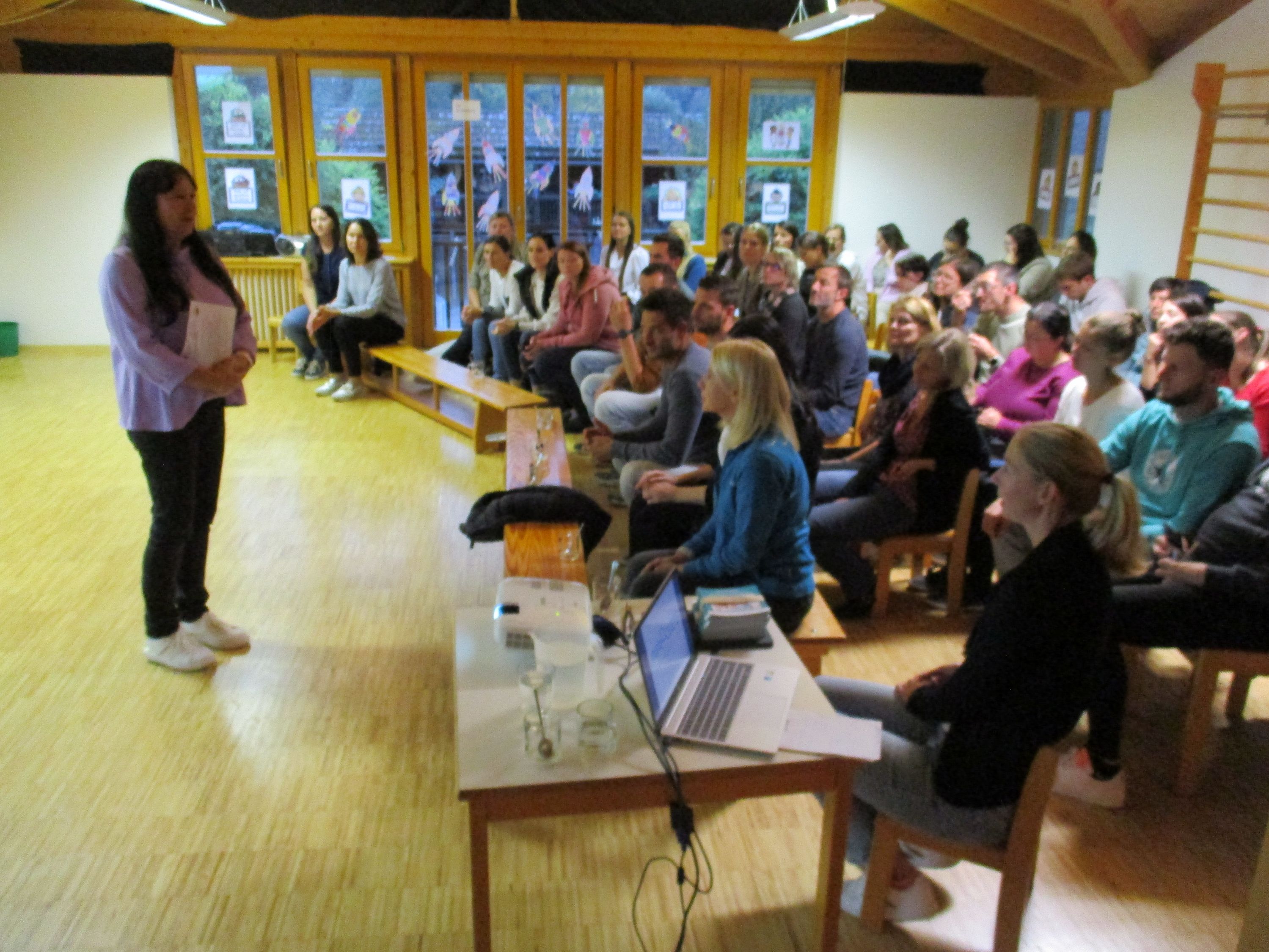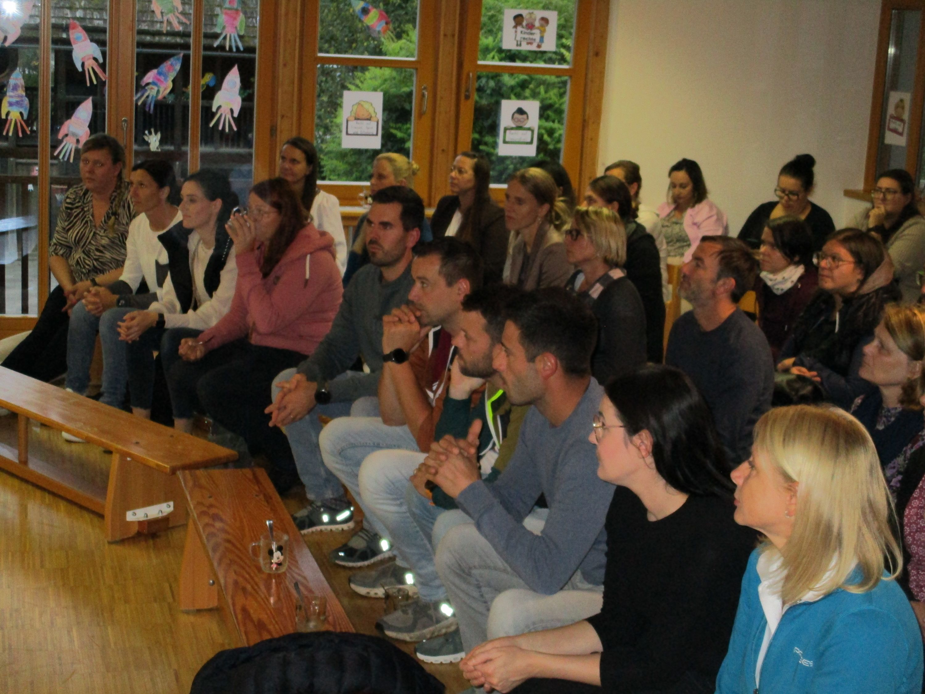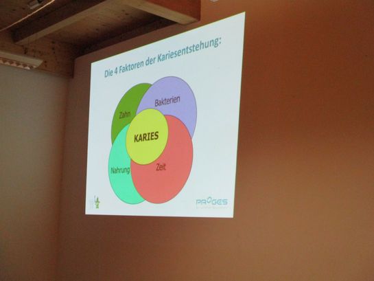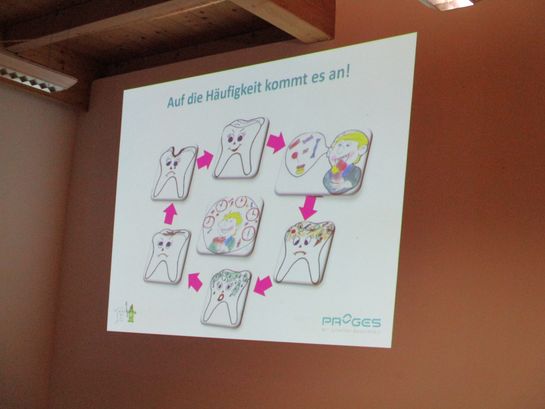 Es wurden sehr wichtige Themen zur Zahngesundheit besprochen. Zahnärztin Daniela Pichler und Zahngesundheitserzieherin Monja Ebenwaldner erklärten die Bedeutung der Milchzähne und ihre Pflege. Die Ernährung war ein Schwerpunkt und natürlich das Vorbildverhalten, sowie der Einfluss der Zähne auf die Sprache. Wie bei jedem ersten Elternabend wurde das Jahresthema mit den Aktionen und Daten vorgestellt, damit Eltern frühzeitig planen können.