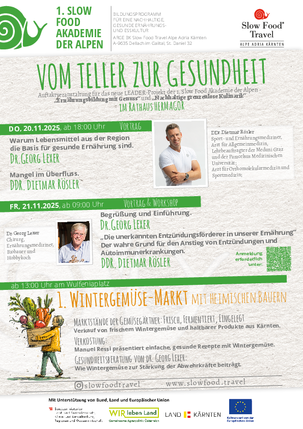 Die Themenschwerpunkte der Gesundheitsveranstaltung der ersten Slow Food Akademie der Alpen in Hermagor sind:
