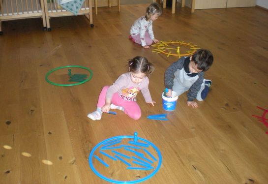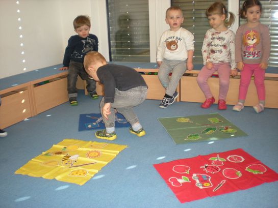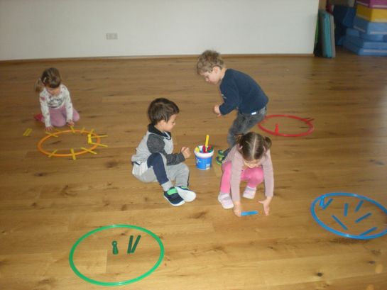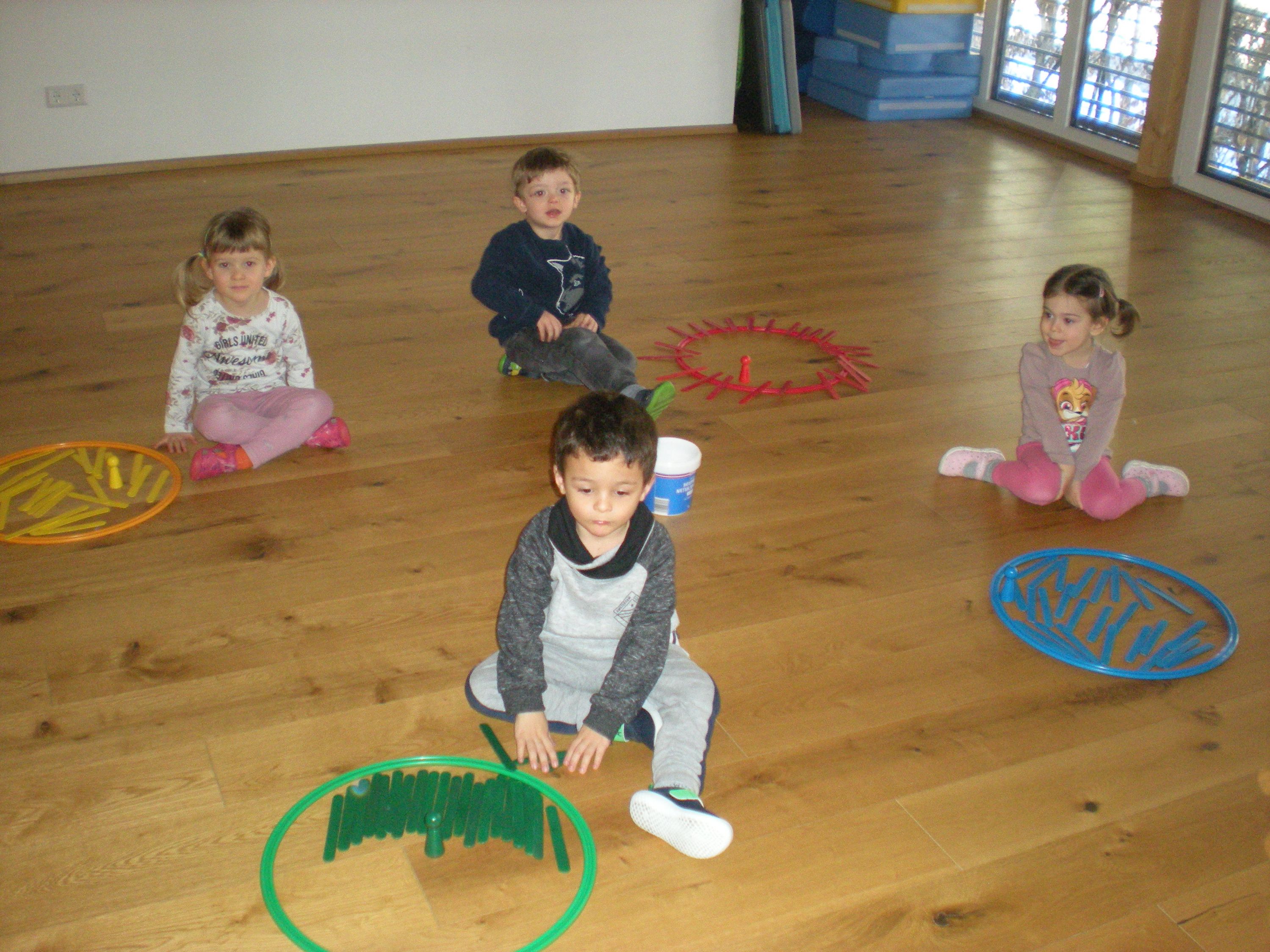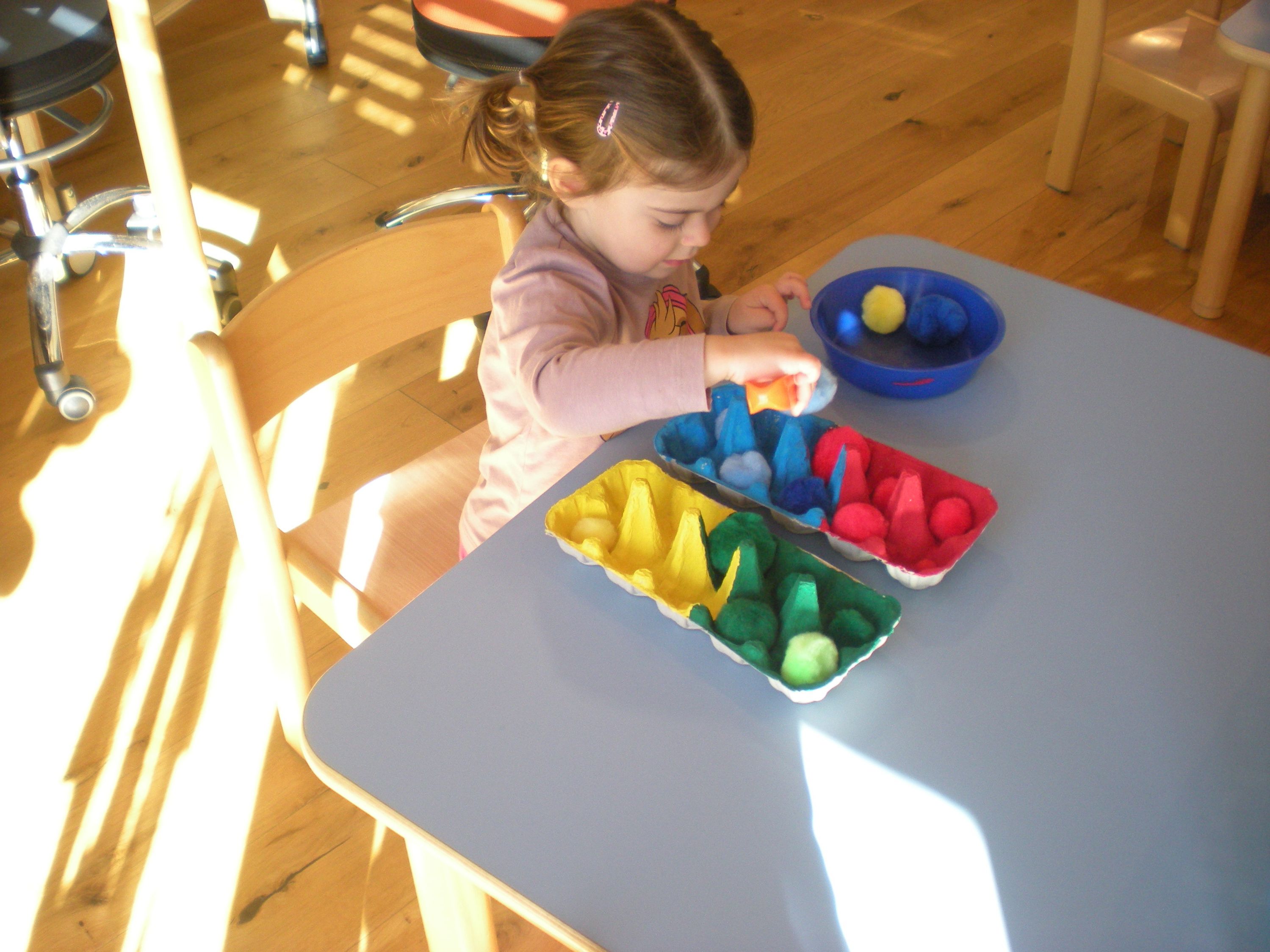 Mit Spiel und Spaß erwerben die KInder die Farbenvielfalt durch Lieder, Bewegungseinheiten, Aktionstabletts, Legearbeiten, Sortier- und Zuordnungsspiele.