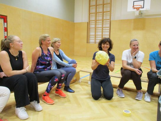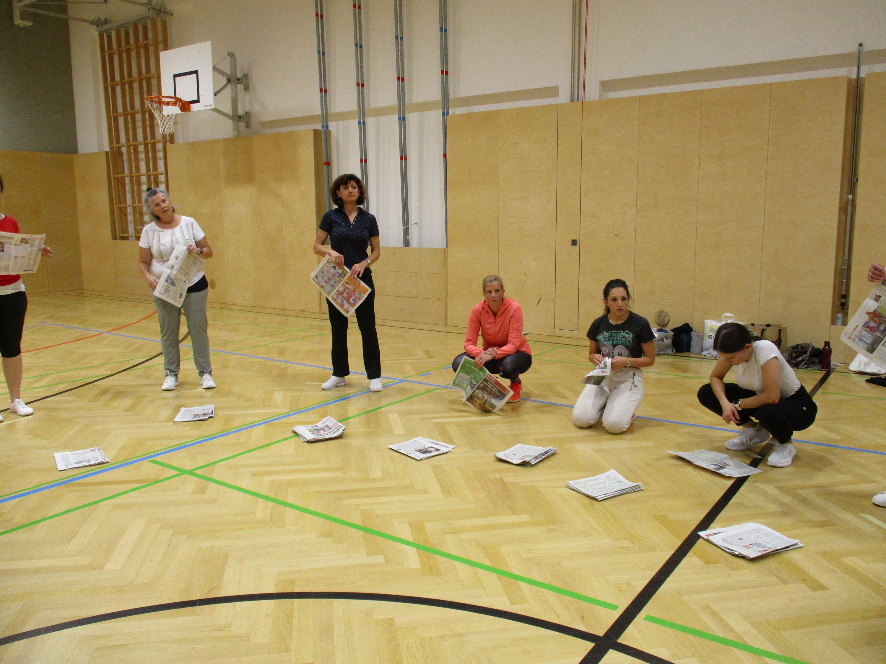 Der 2. Teil der Fortbildung:"Bewegte Spiele für drinnen und draußen", mit Mag.a Helga Thaler brachte viele Inputs für Spiele, bei denen nicht viele Materialien verwendet werden. Sie stärkten die fachliche und persönliche Weiterentwicklung und bieten neue Möglichkeiten, den Bewegungsdrang der Kinder für ihre körperliche und psychische Entwicklung weiter zu forcieren.