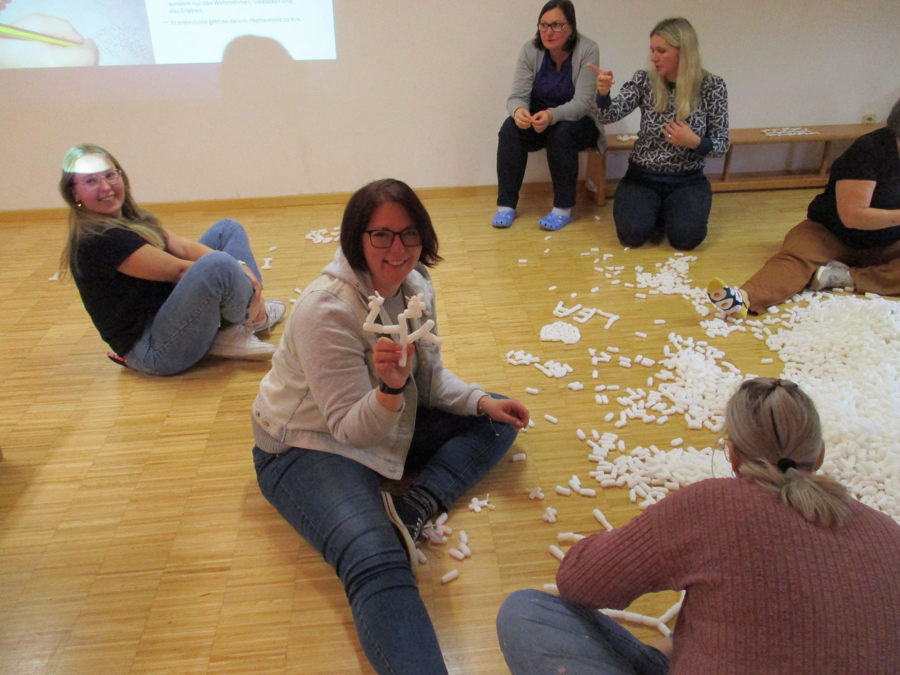 Vermittelt und ausprobiert wurden Inhalte zur mathematischen Frühbildung der Kinder, das Zahlenland, Mathematik - Wissenschaft von Mustern, Rollenspiele und Mathematik entdecken und erfinden.