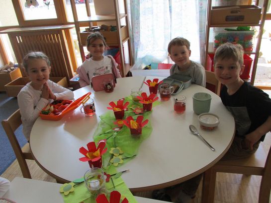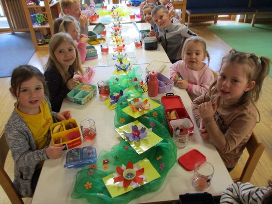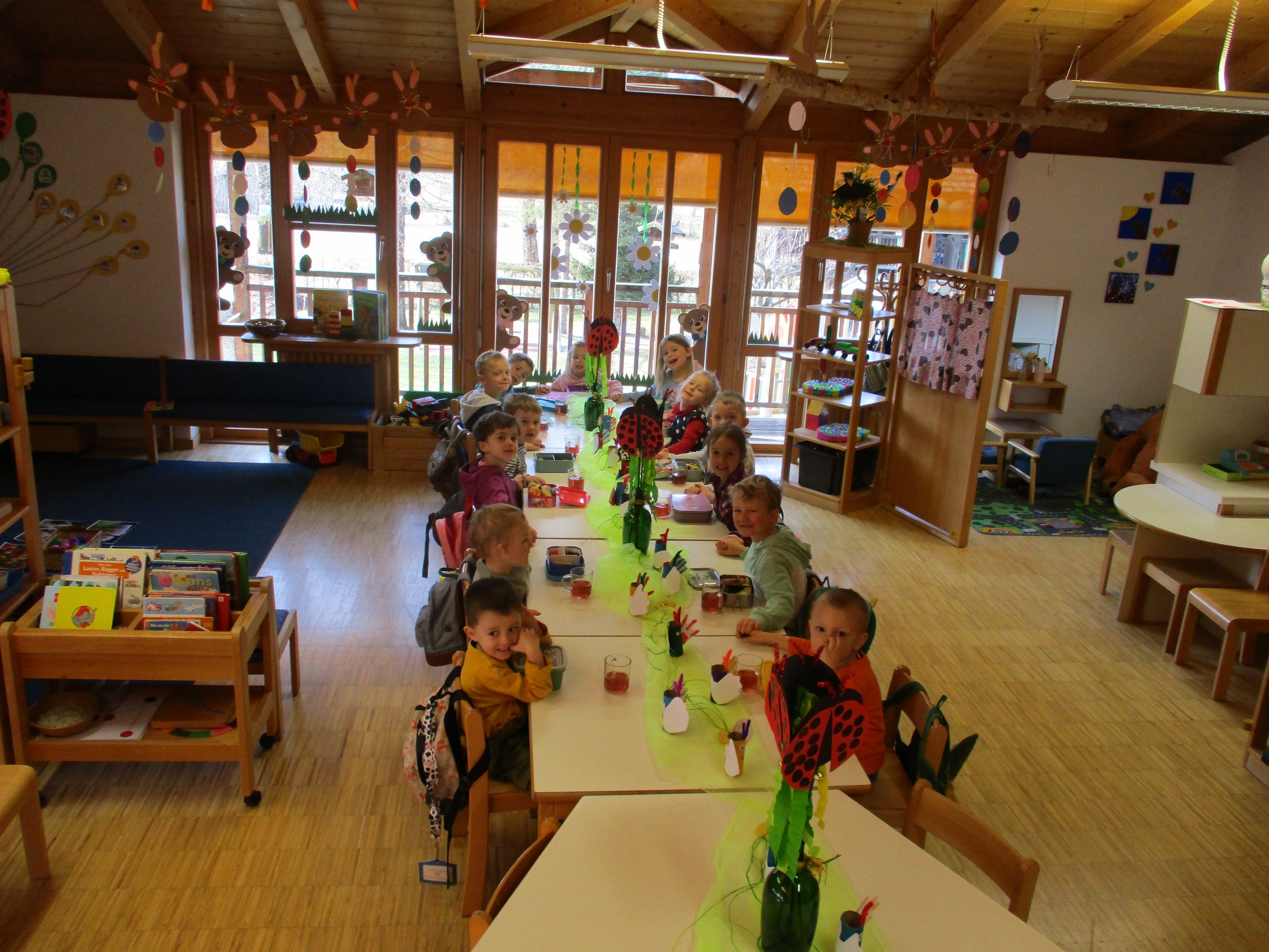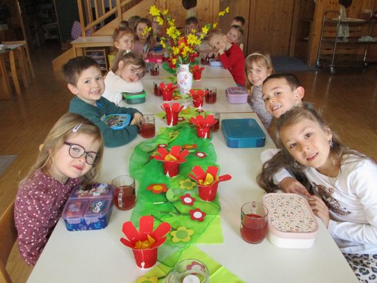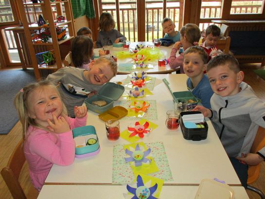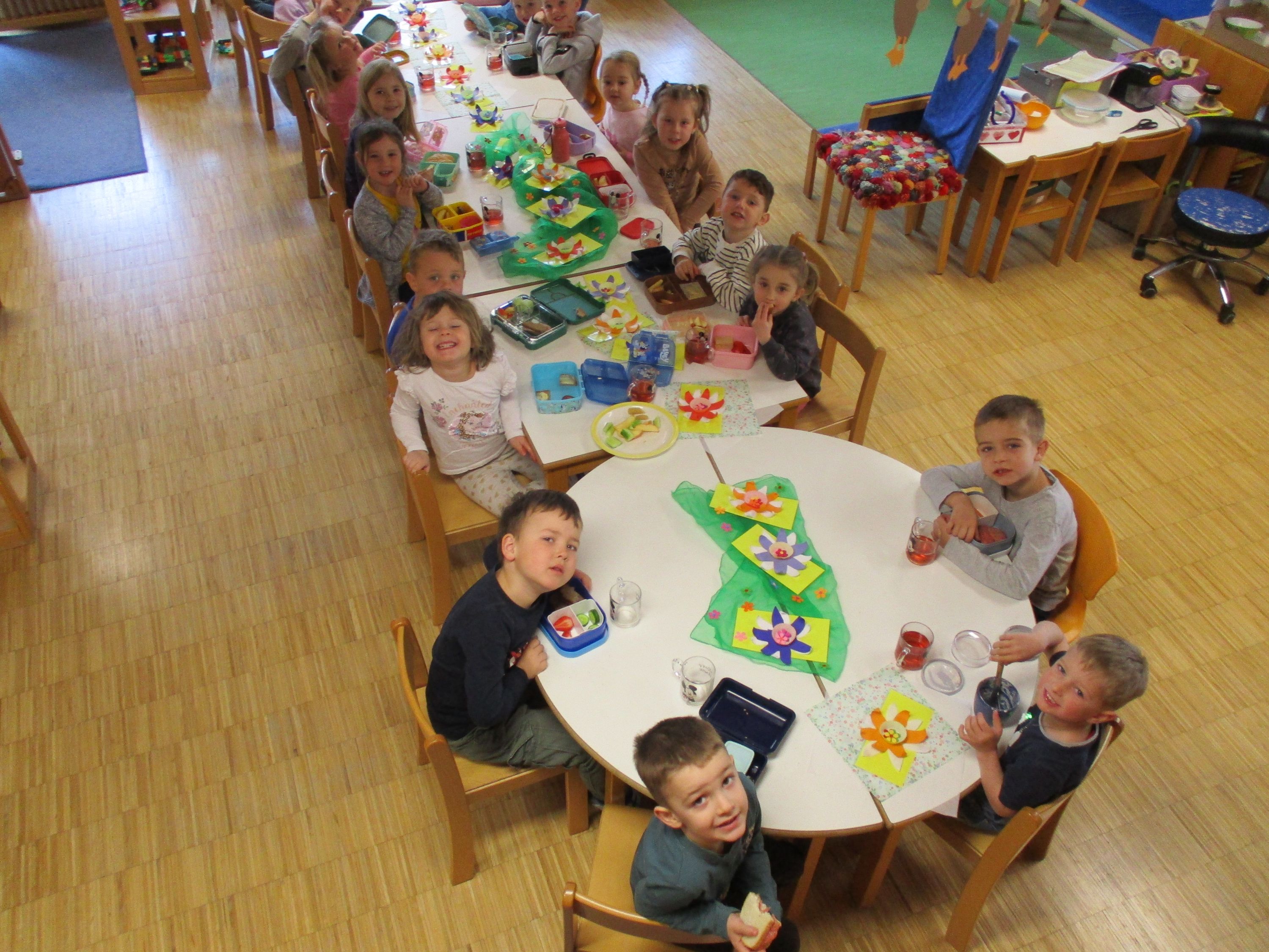 Mit viel Vorfreude wurde der Tisch für eine gemeinsame Frühlingsjause dekoriert und anschließend mit den Kindern die Route, für die Beobachtungen in der Natur, festgelegt.