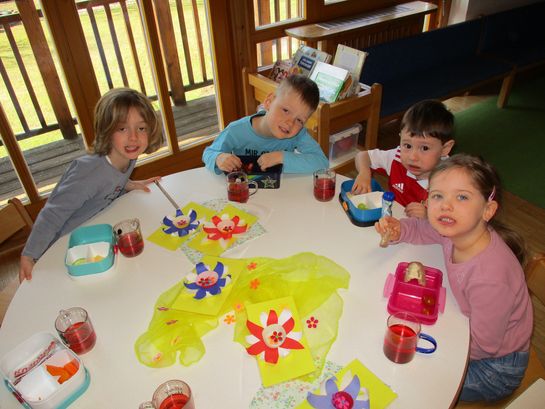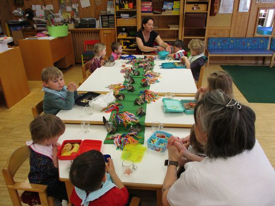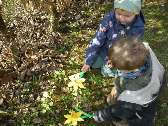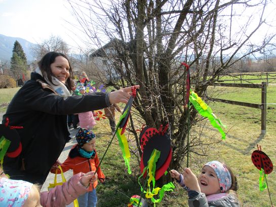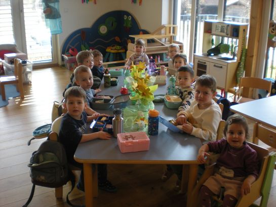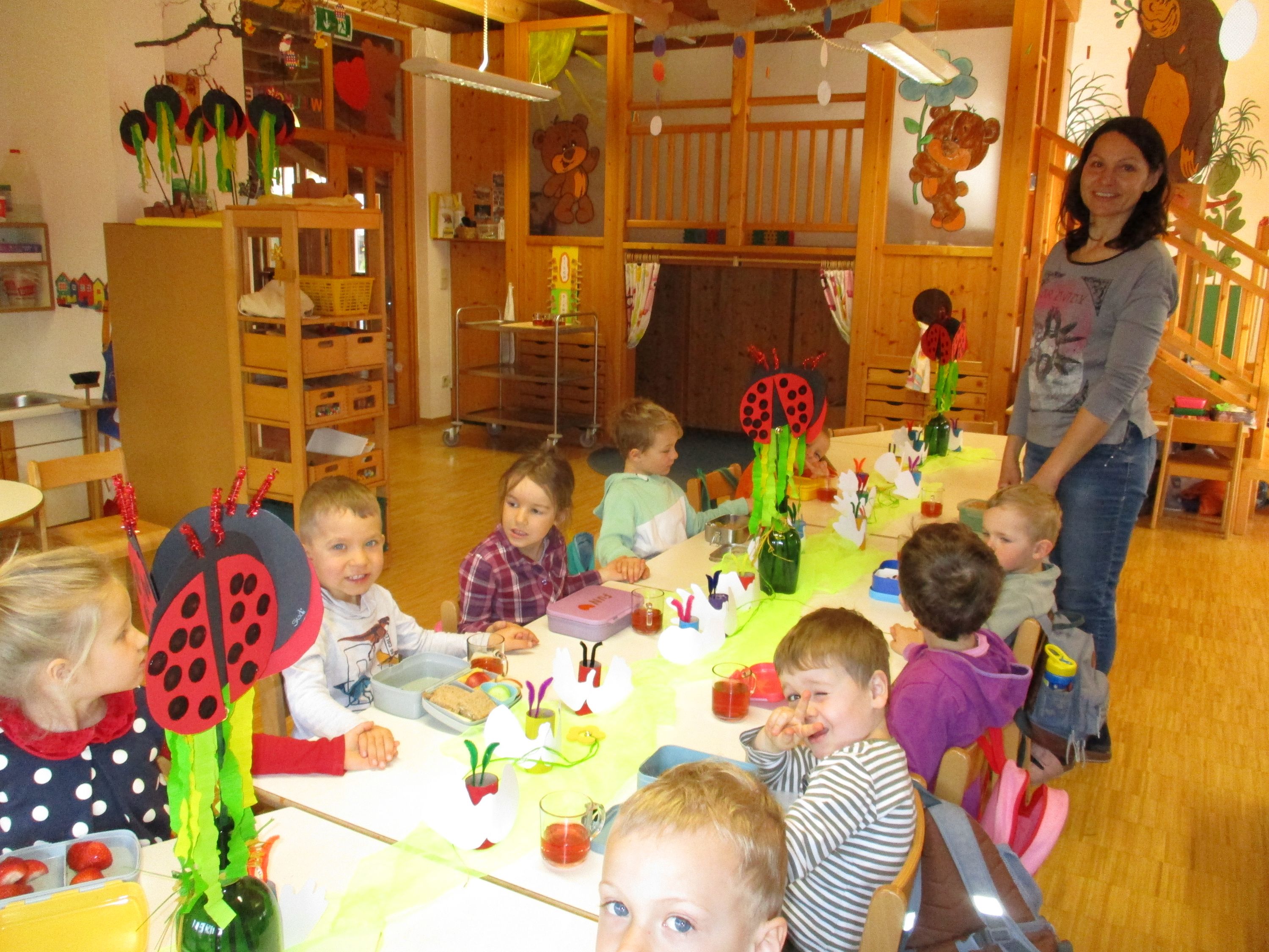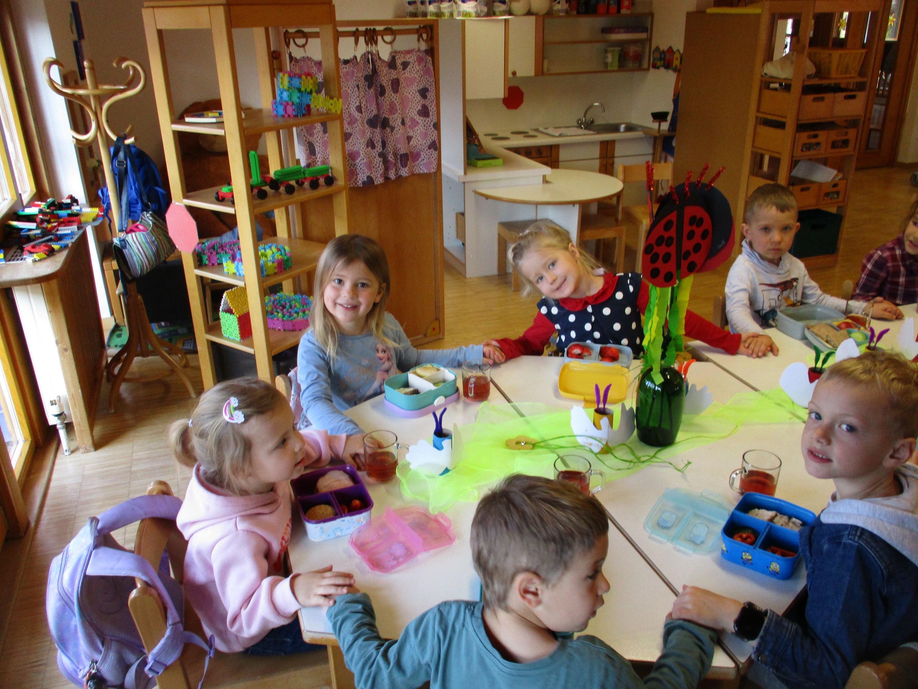 Mit viel Vorfreude wurde der Tisch für eine gemeinsame Frühlingsjause dekoriert und anschließend mit den Kindern die Route, für die Beobachtungen in der Natur, festgelegt.