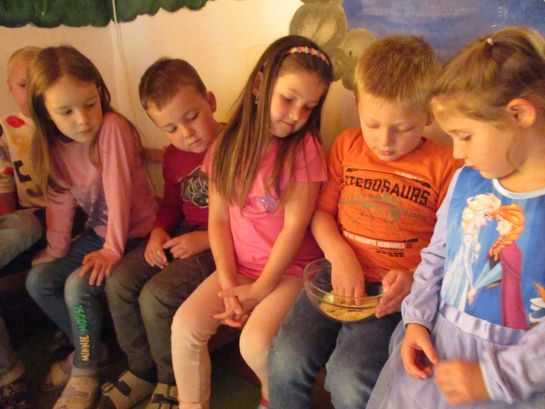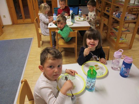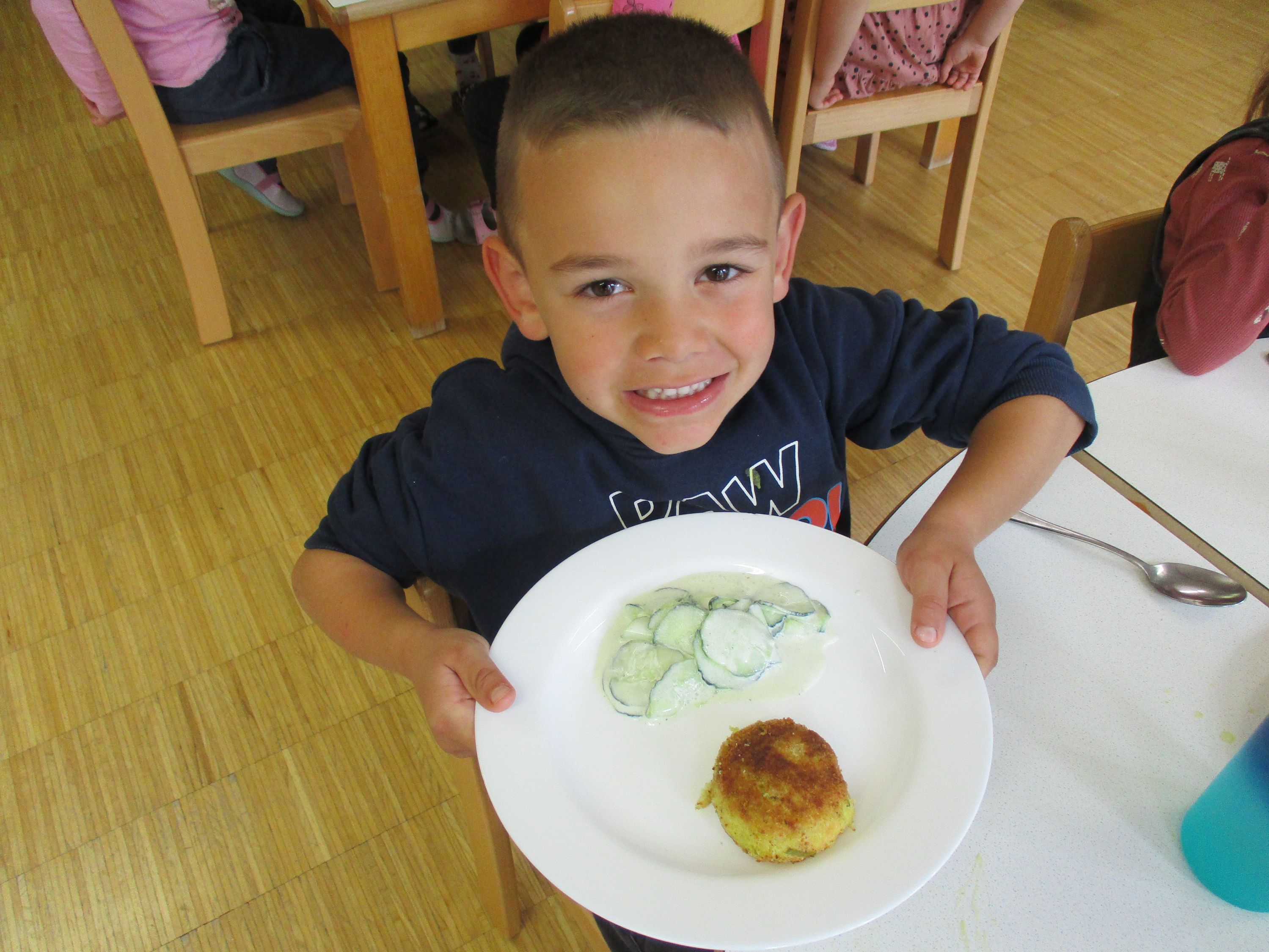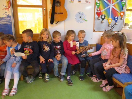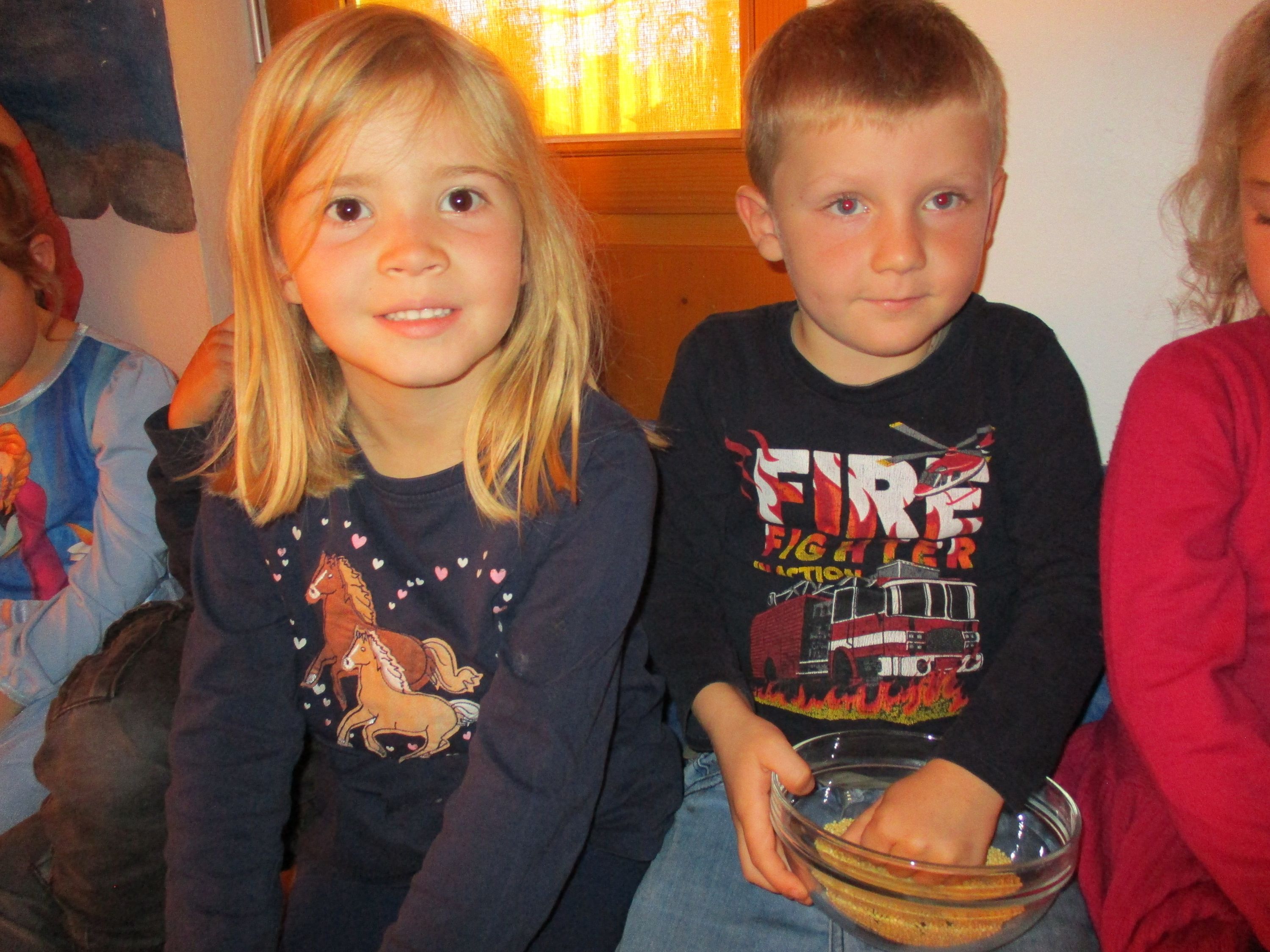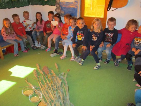 Bei einem Spaziergang trafen die Kinder auf ein Hirsefeld und waren sofort interessiert, da es nur dem Mais ähnelte. Alle Kinder kennen die sehr guten Hirselaibchen aus der Kindergartenküche, wussten jedoch nicht, wie die Hirse wächst, aussieht, die Ernte abläuft, in anderen Kulturen verwendet wird, als Futtermittlel dient und sehr anpassungsfähig bei Trockenheit ist. Diese Neugier und das Interesse galt es zu stillen.