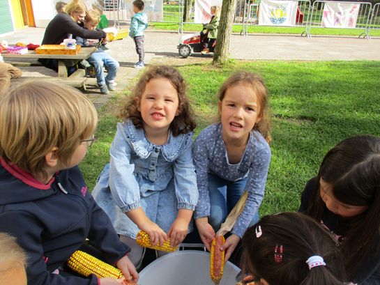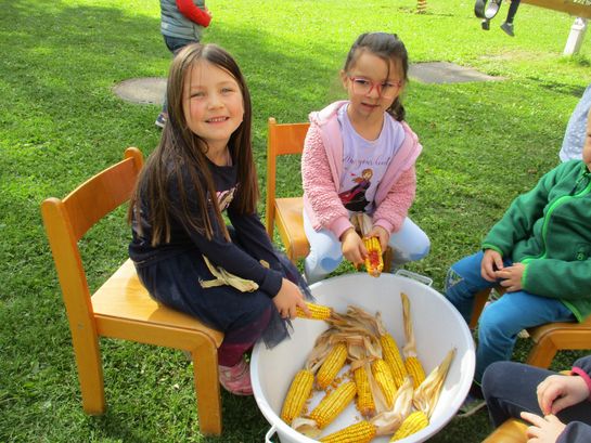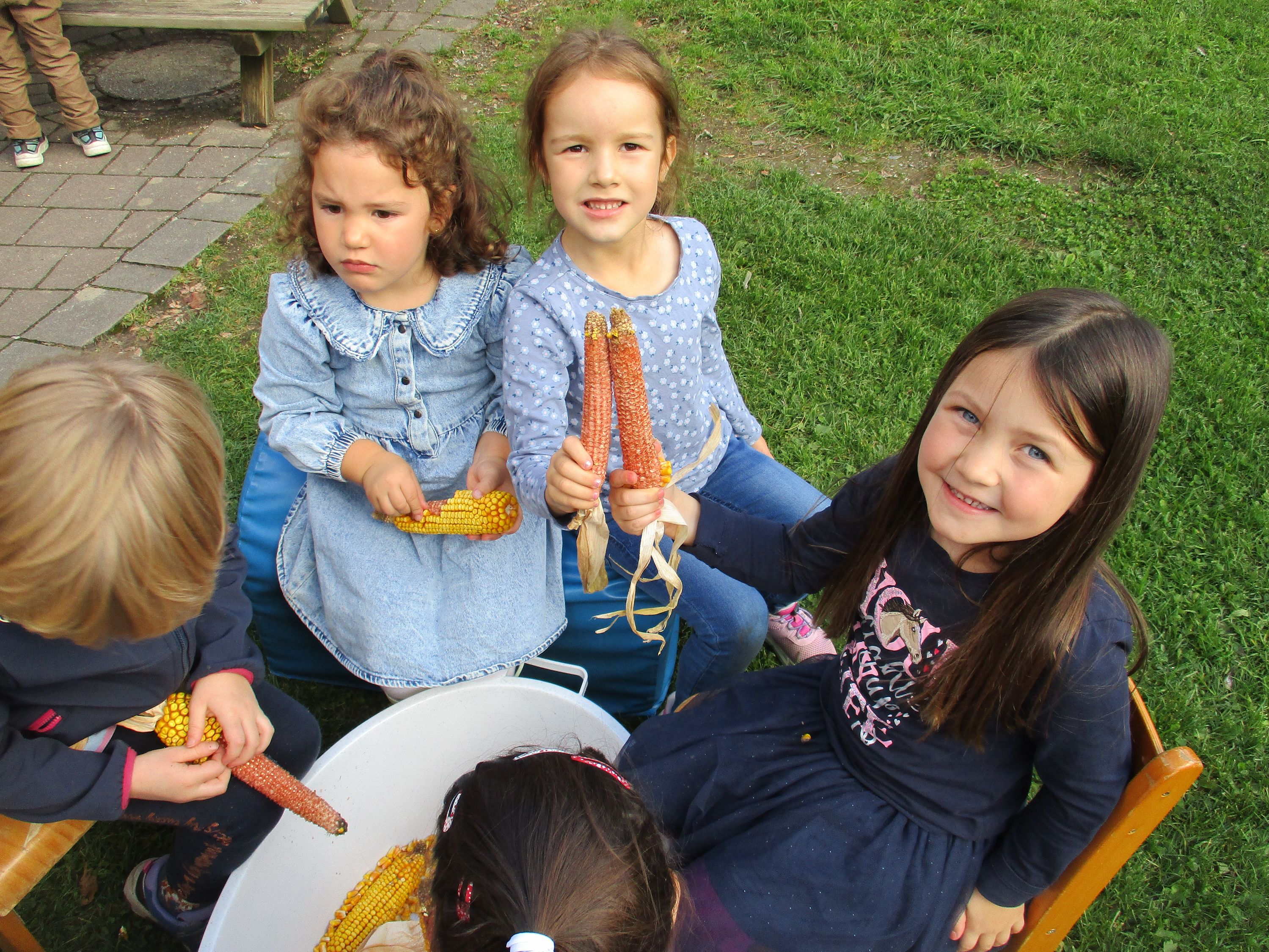 Die Kinder interessierten sich für dieses naturwissenschaftliche Thema, da der Mais allgegenwertig angebaut wird.