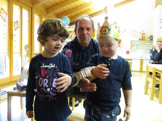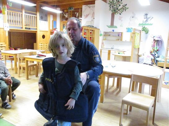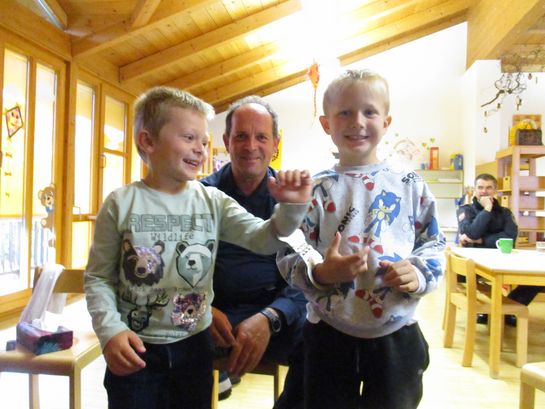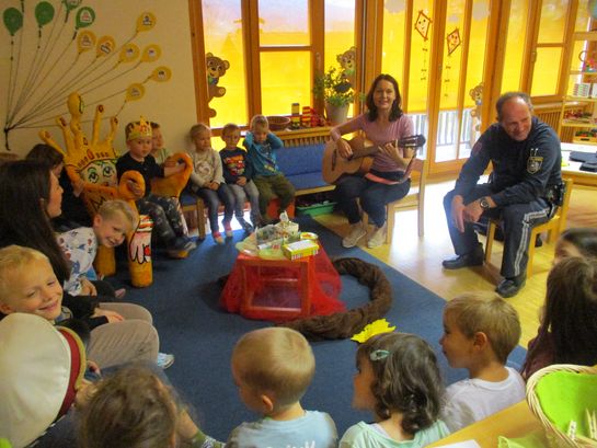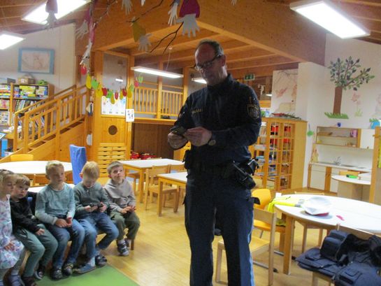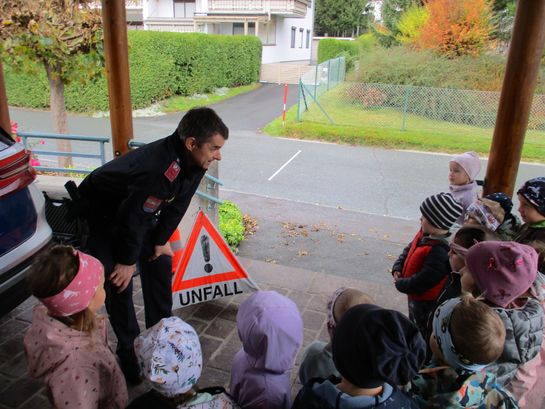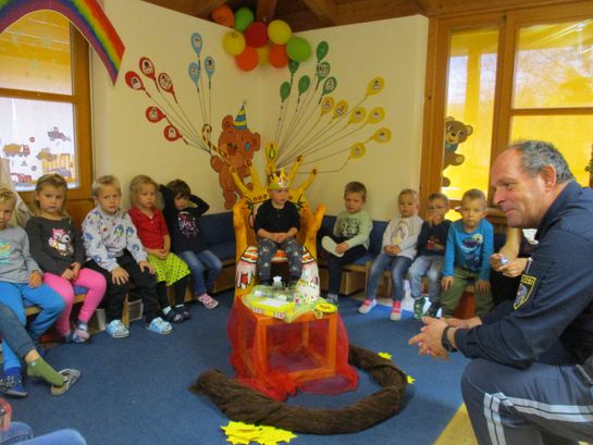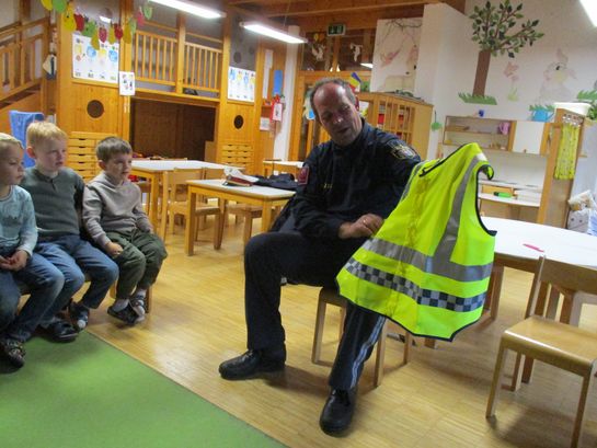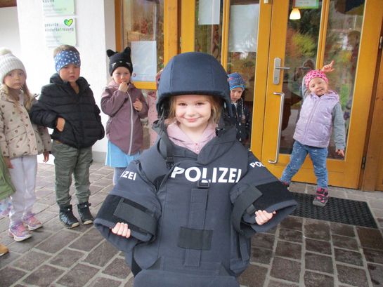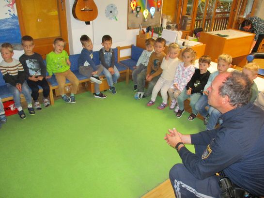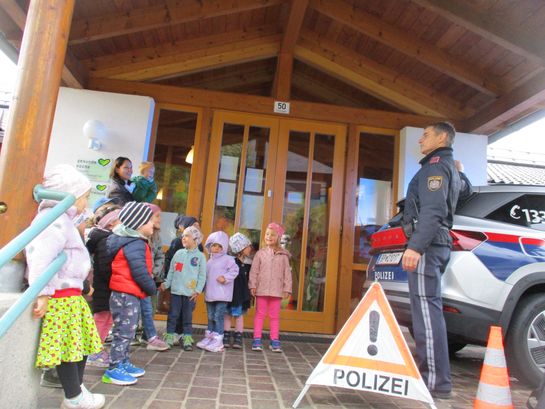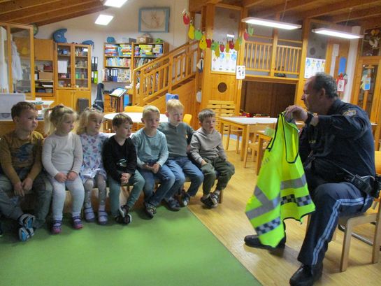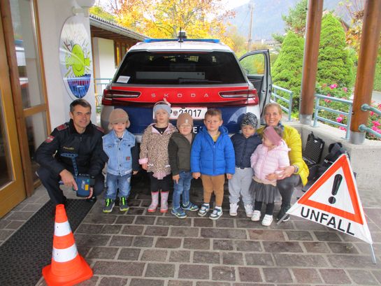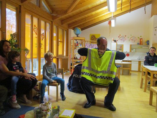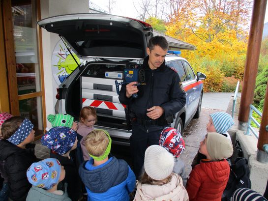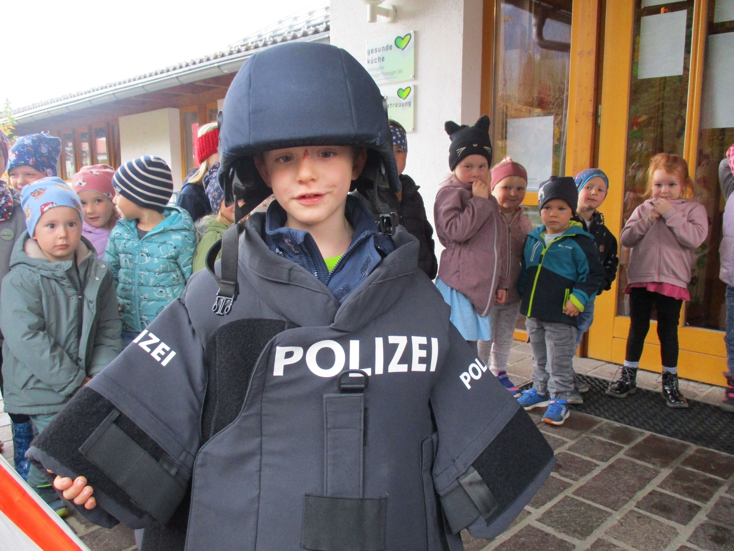 Von der Polizeiinspektion St.Stefan/Gail besuchten die Polizisten Pacher und Lackner die Kinder im Kindergarten. Die wichtigsten Inhalte des spannenden Vormittags waren: Vertrauensbildung, Gefahrenbewusstsein, Prävention, Uniform mit Ausrüstung und die Erklärung des Einsatzwagens.