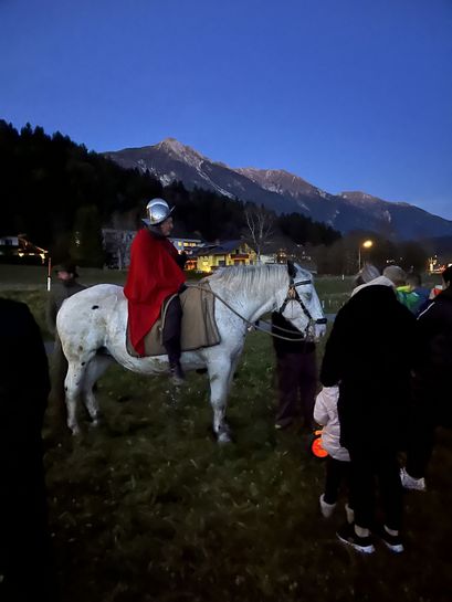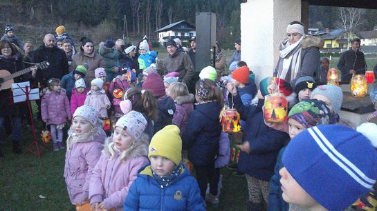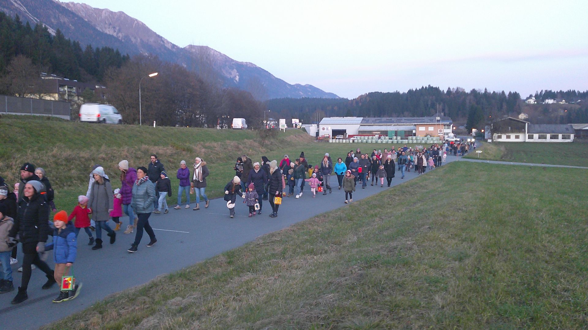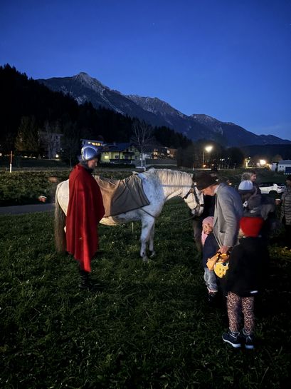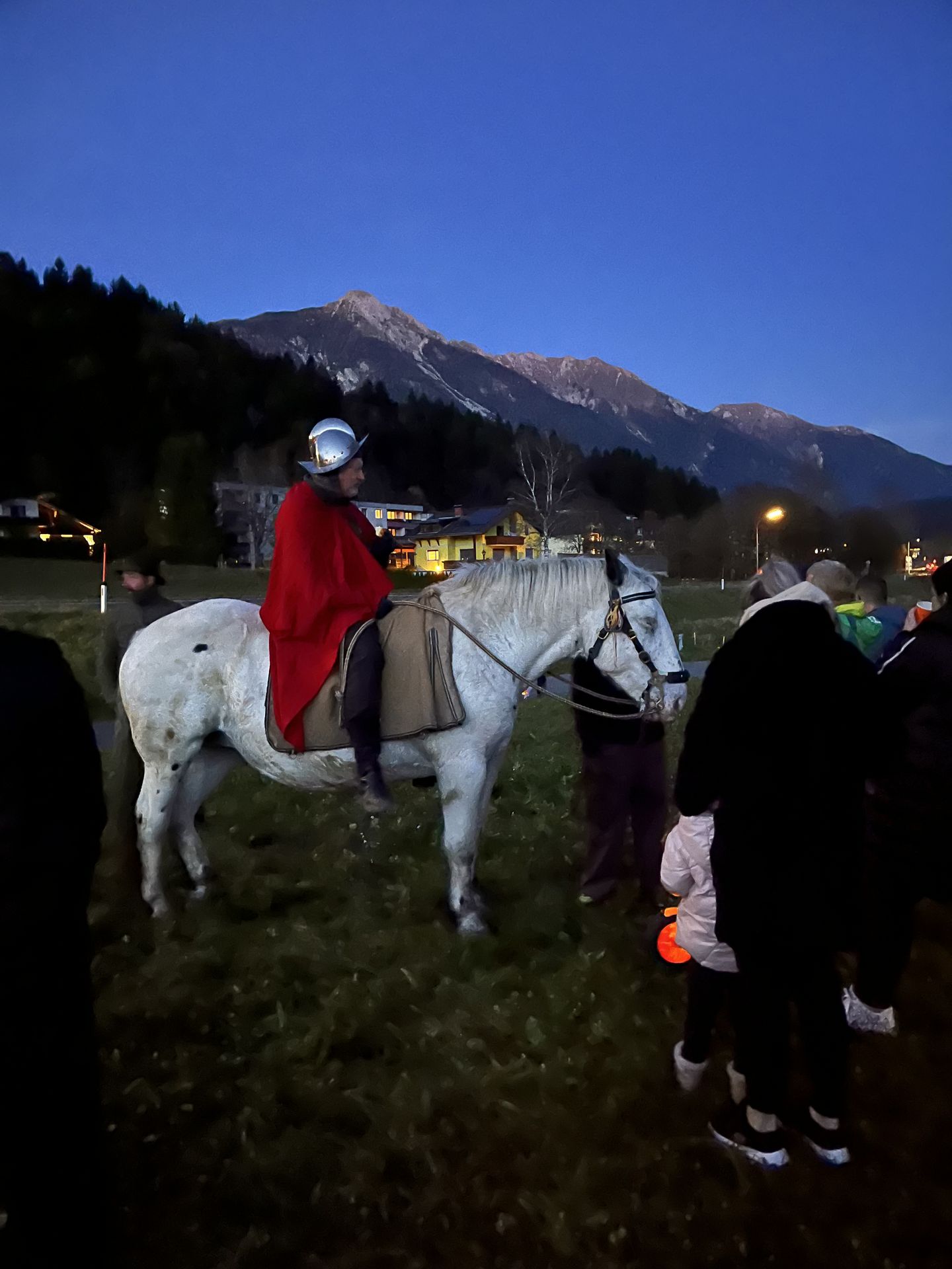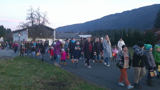 Ab dem Parkplatz des Friedhofes begleitete uns der HL. Martin auf seinem Pferd. Mit einem langen Laternenumzug ging es dann zur Kühweger Kirche. Dort trugen die Kindergartenkinder ihre Lieder und Gedichte dem HL. Martin vor. Ein wärmender Punsch und Brot zum teilen war dann für das Laternenfest vorbereitet.