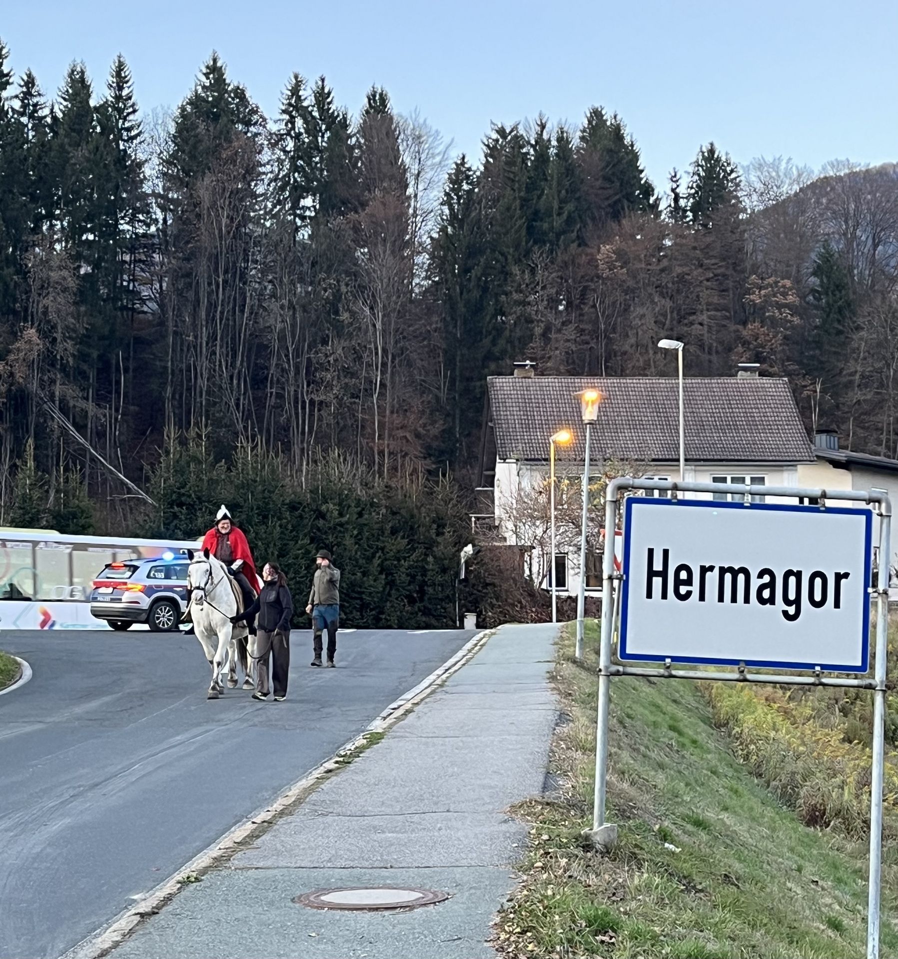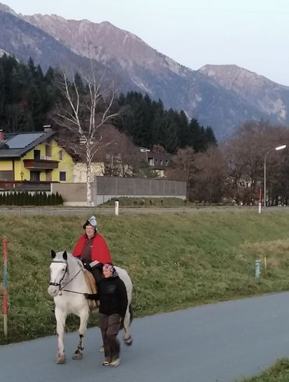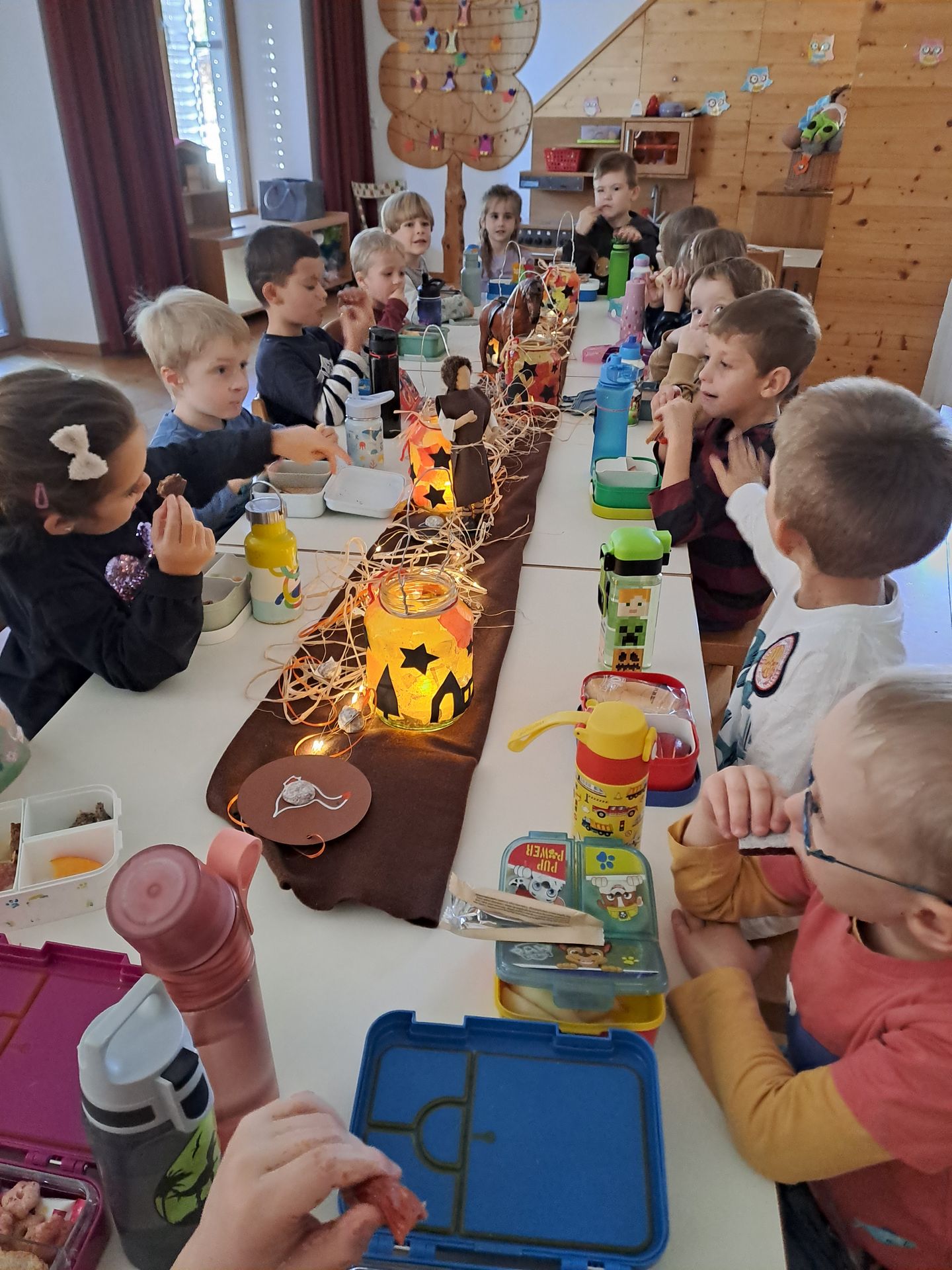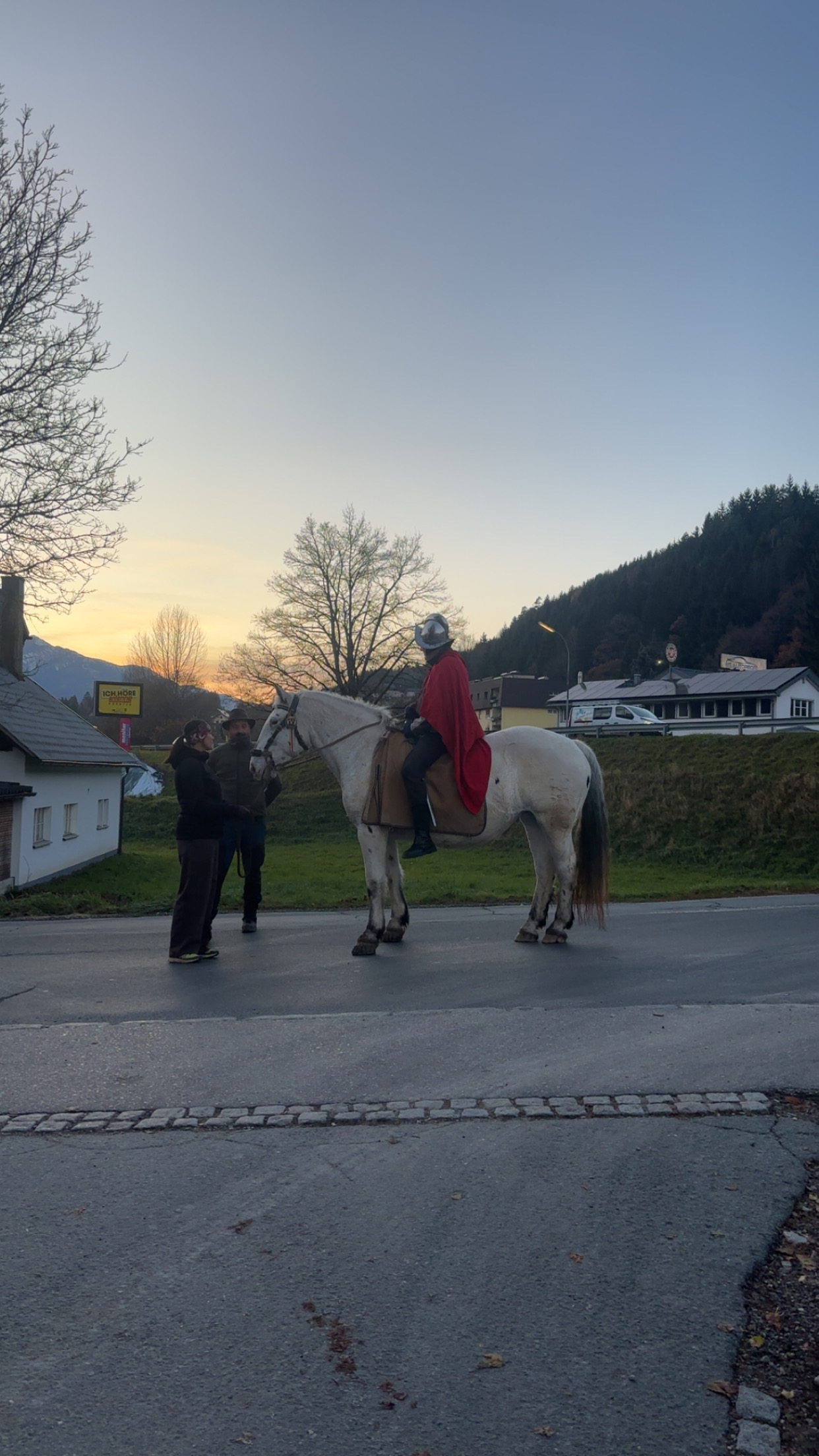 Ab dem Parkplatz des Friedhofes begleitete uns der HL. Martin auf seinem Pferd. Mit einem langen Laternenumzug ging es dann zur Kühweger Kirche. Dort trugen die Kindergartenkinder ihre Lieder und Gedichte dem HL. Martin vor. Ein wärmender Punsch und Brot zum teilen war dann für das Laternenfest vorbereitet.
