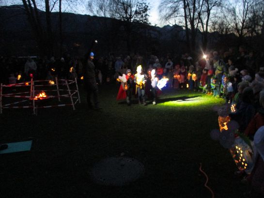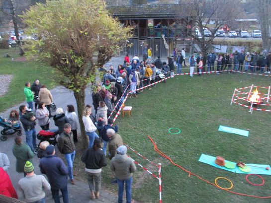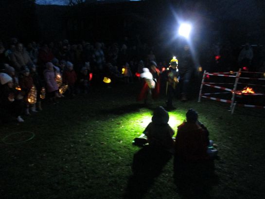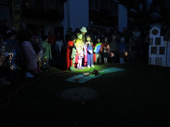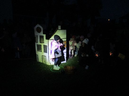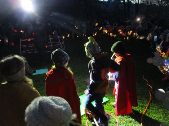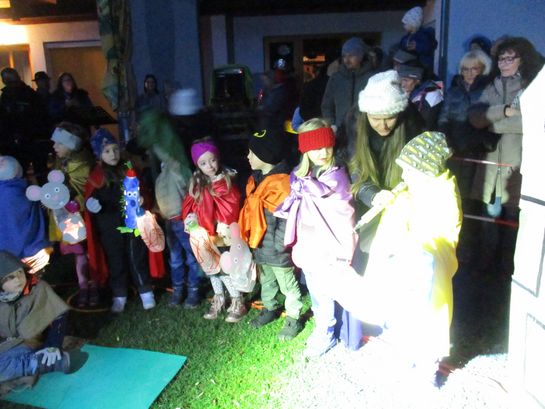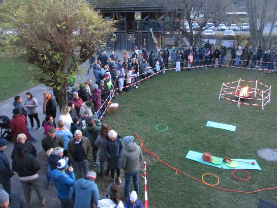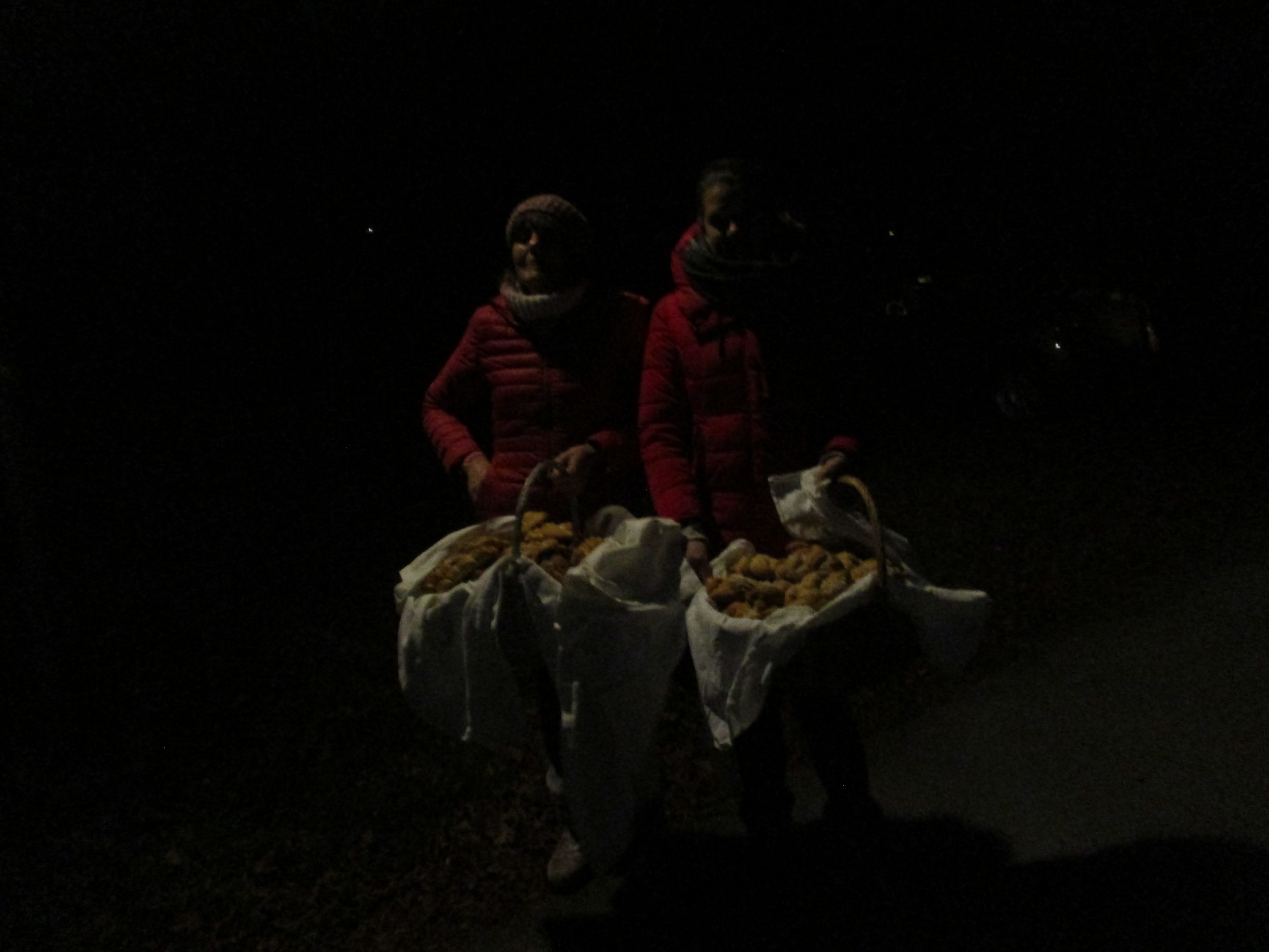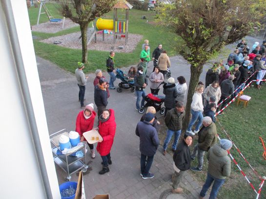 Martinszöpfe werden bei der Kirche ausgeteilt