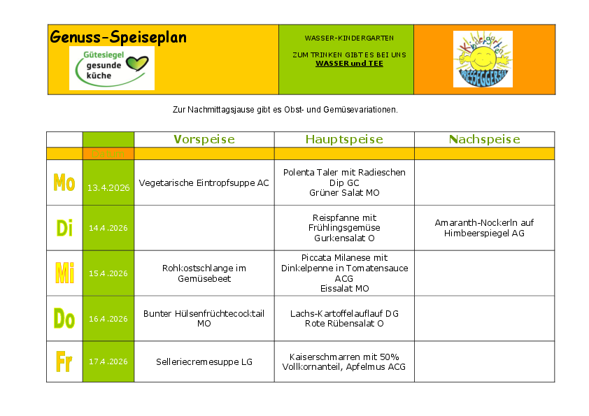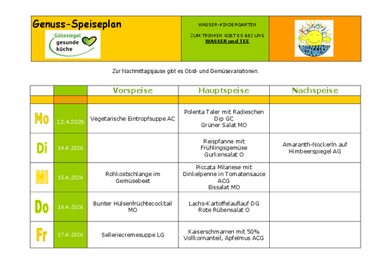Die Speisenfolge vom 13.4. - 17.4.2026!