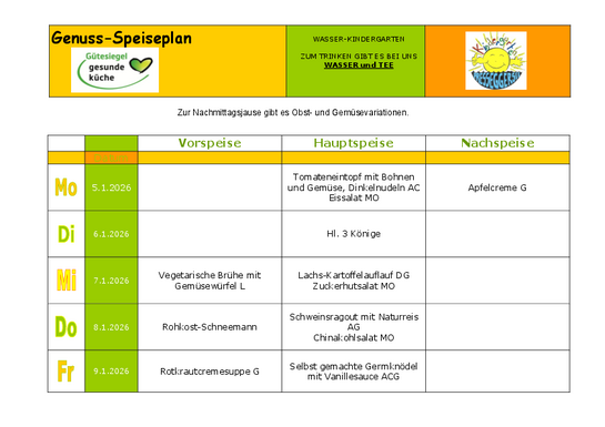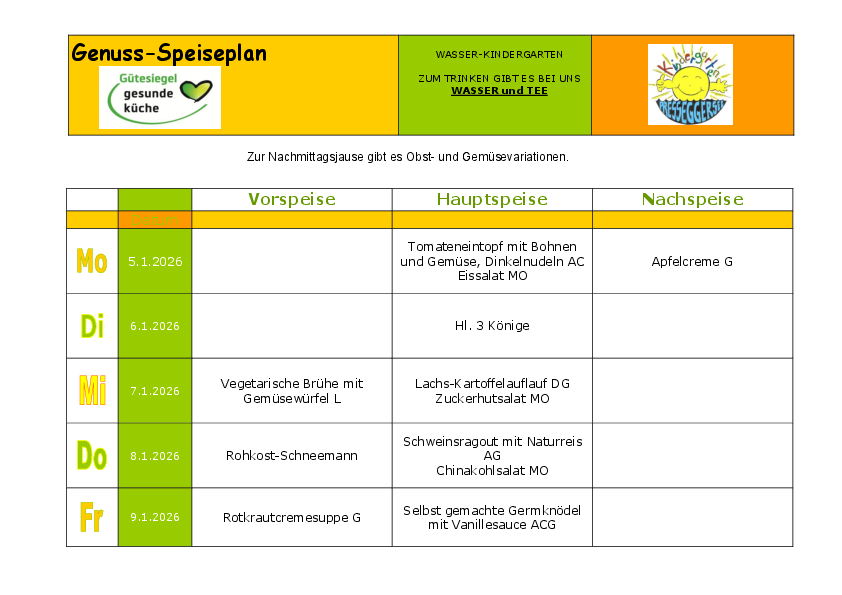 Die Speisenfolge vom 5.1. - 9.1.2026!