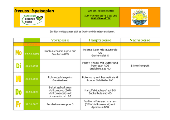 Die Speisenfolge vom 27.10. - 31.10.2025!