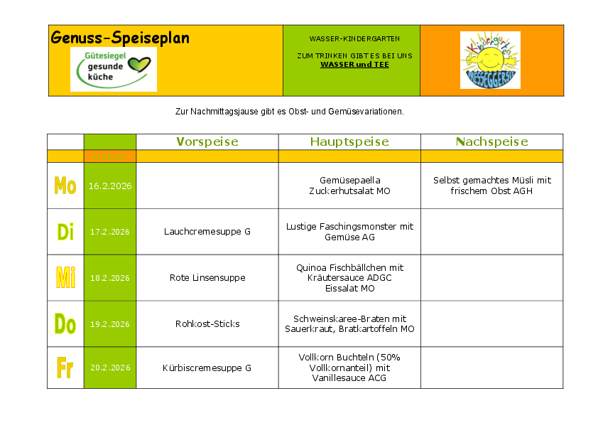 Die Speisenfolge vom 16.2. - 20.2.2026!