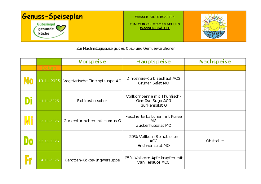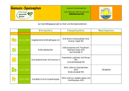 Die Speisenfolge vom 10.11. - 14.11.2025!