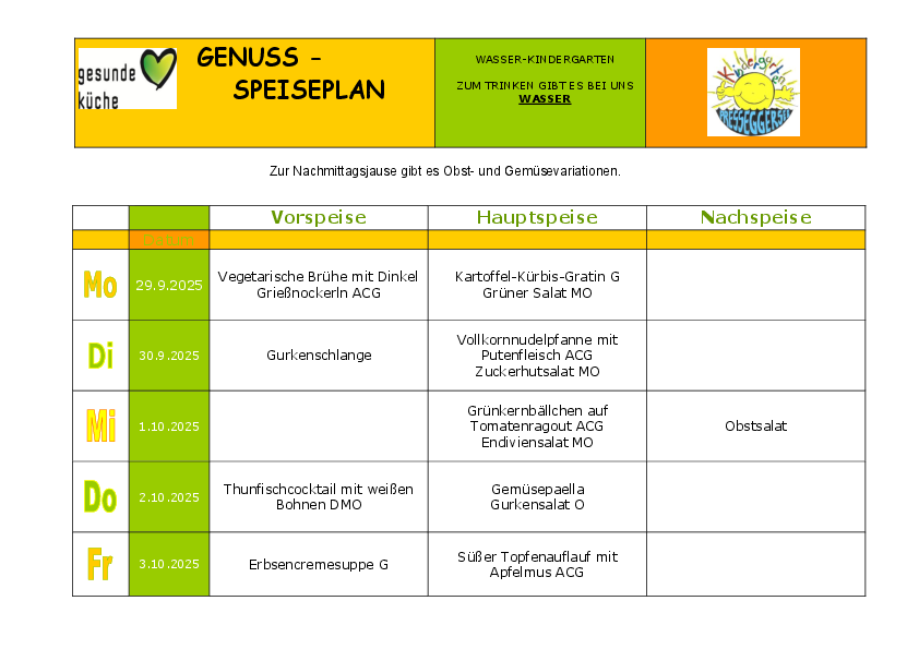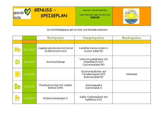 Die Speiseinfolge vom 29.9. - 3.10.2025!