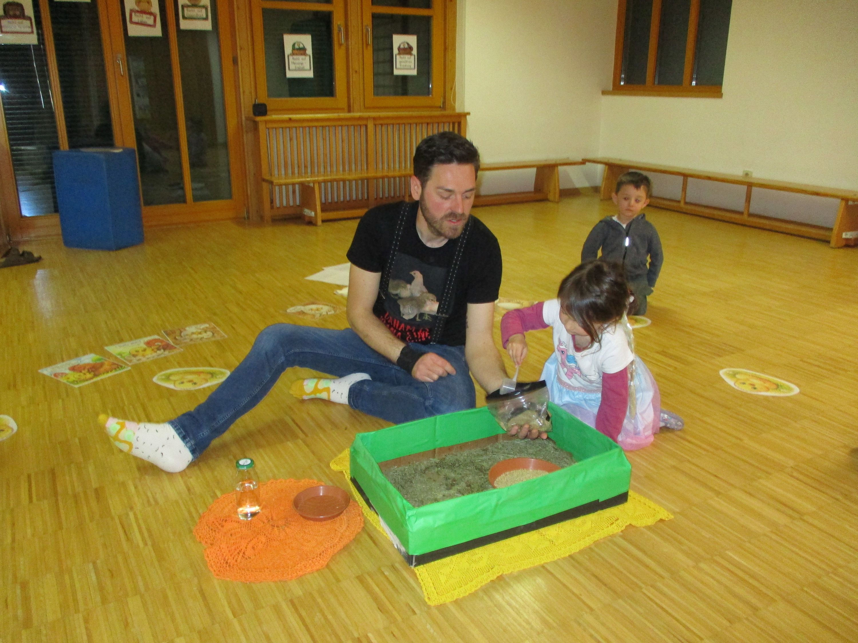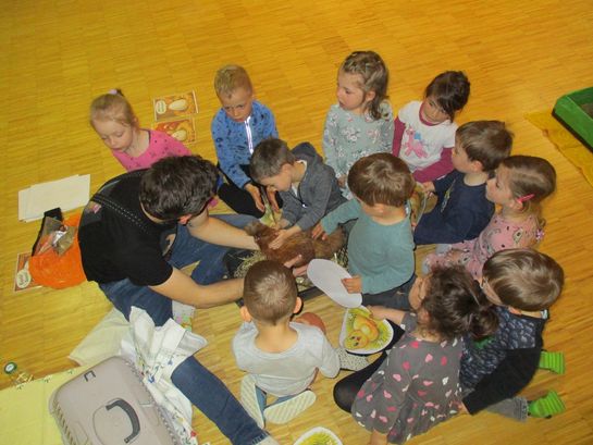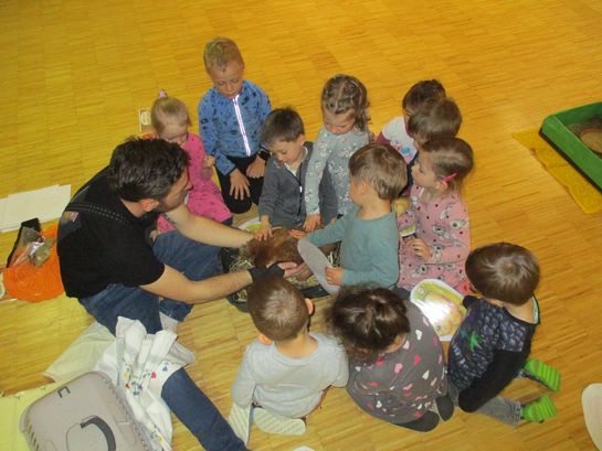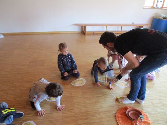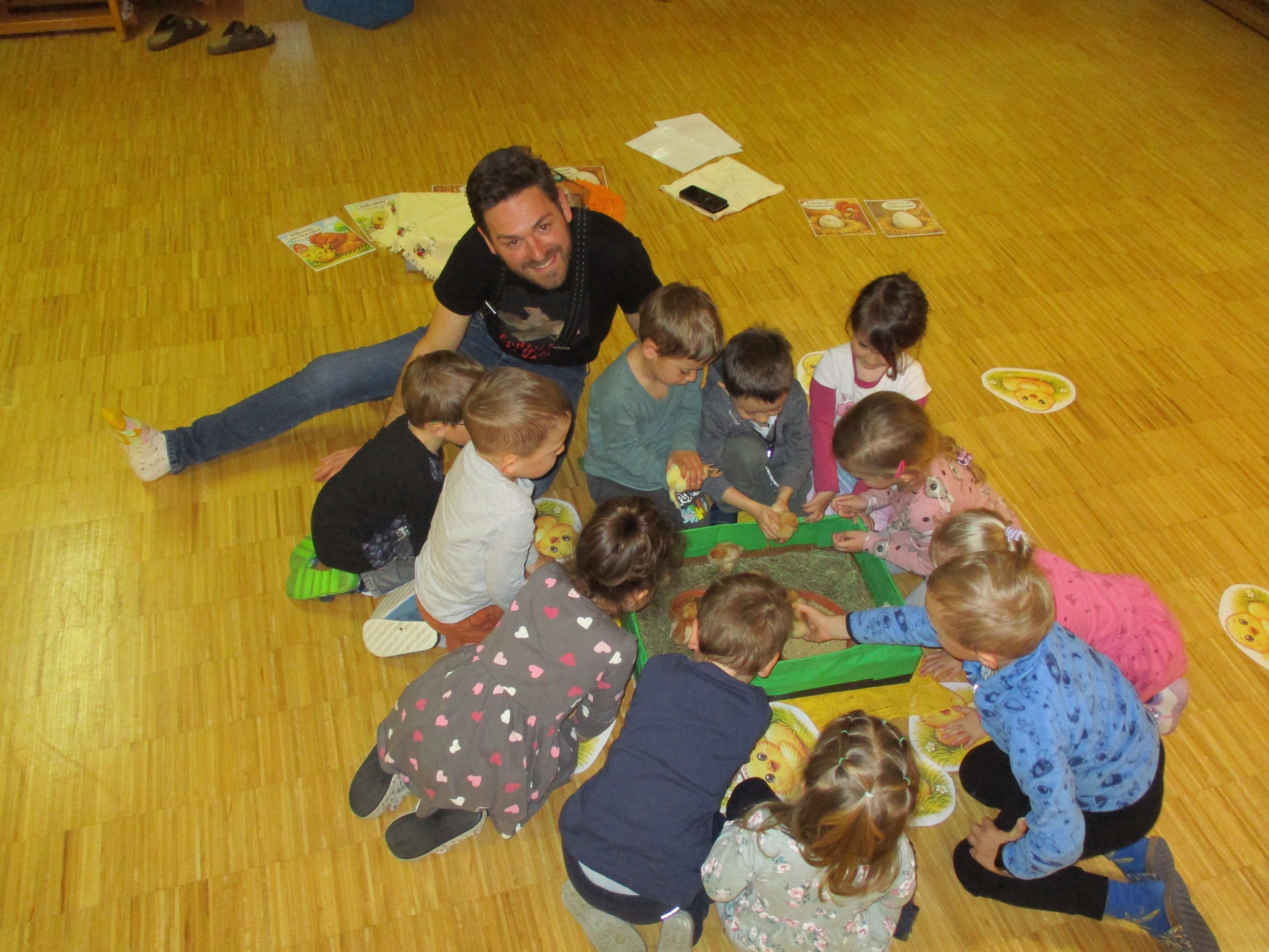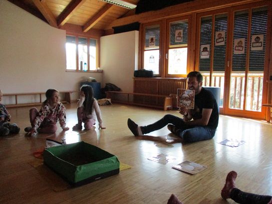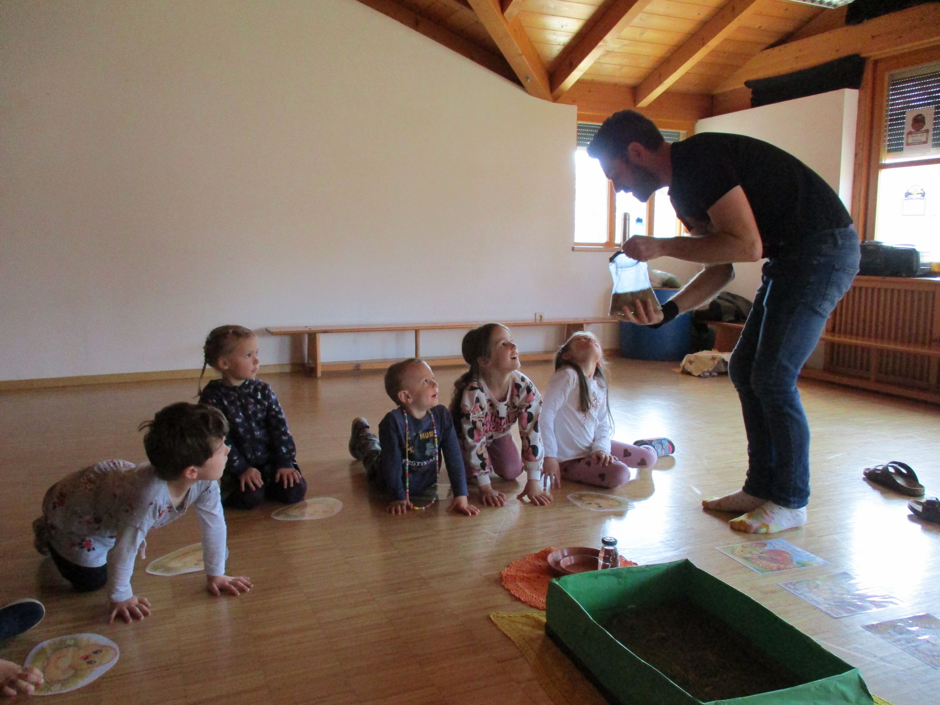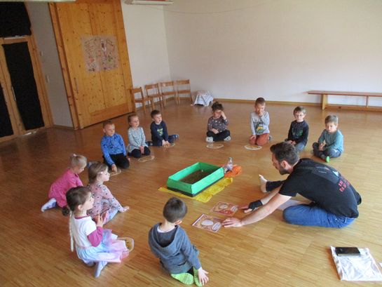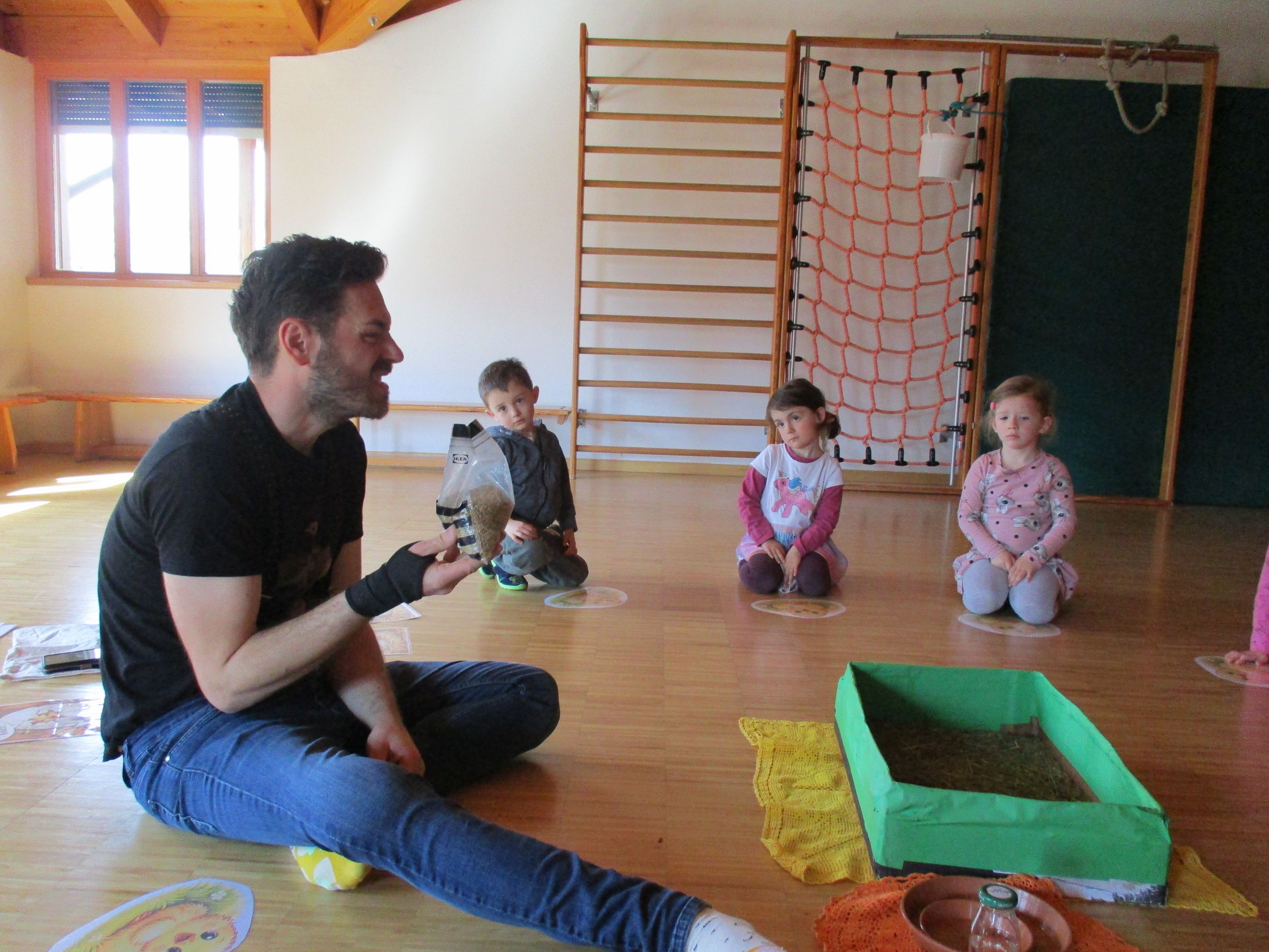 Für die Aufarbeitung des thematischen Schwerpunktes "Vom Ei zur Henne", besuchte Elementarpädagoge i.A. Bernd Stattmann die Bärengruppe. 15 Küken und eine Seidenhenne durften die Kinder streicheln, aufheben, betrachten, füttern und beobachten.
