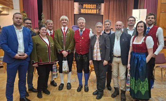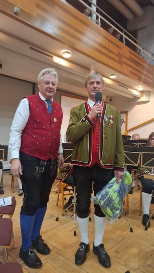 Die Neujahrgrüße der Stadtgemeinde Hermagor überbrachte Hausherr Bürgermeister DI Leopold Astner, der angesichts der aktuellen Weltlage auch seine Sehnsucht nach mehr Frieden und Einigkeit aussprach. Für den bevorstehenden (Un)ruhestand wünschte Bgm. Astner dem Musikschullehrer und Kapellmeister Johann Grolitsch alles Gute und überreichte ihm symbolisch für die zukünftige arbeitsfreie Zeit einen Wanderrucksack. Diesen Wünschen schloss sich auch Kulturreferent DI Wolfgang Wallner in seinen Grußworten an.