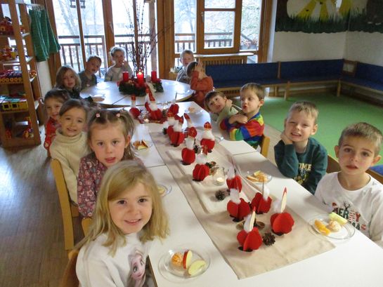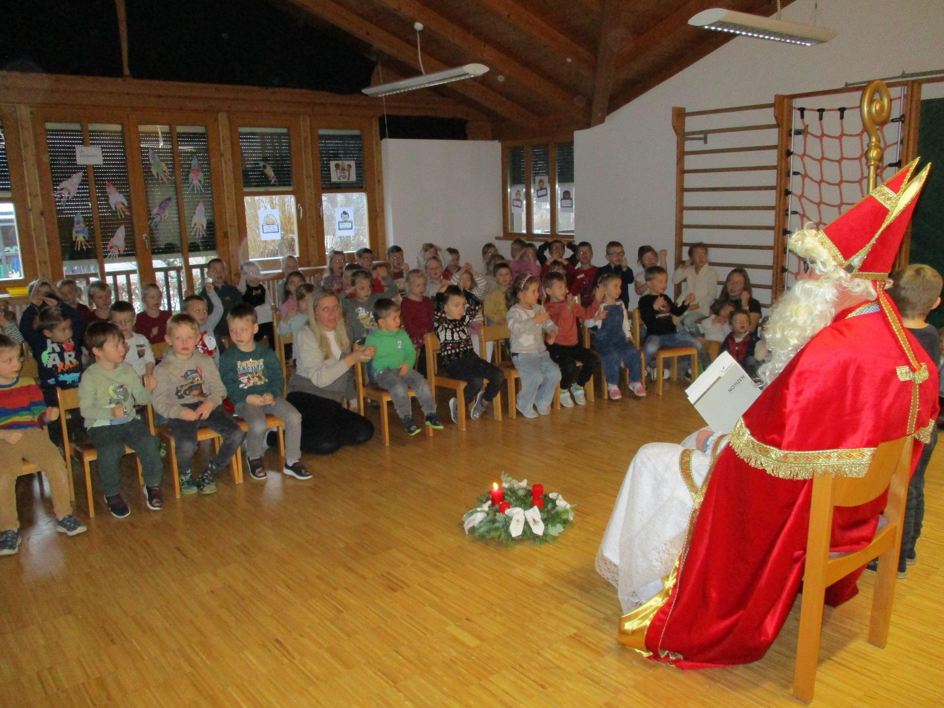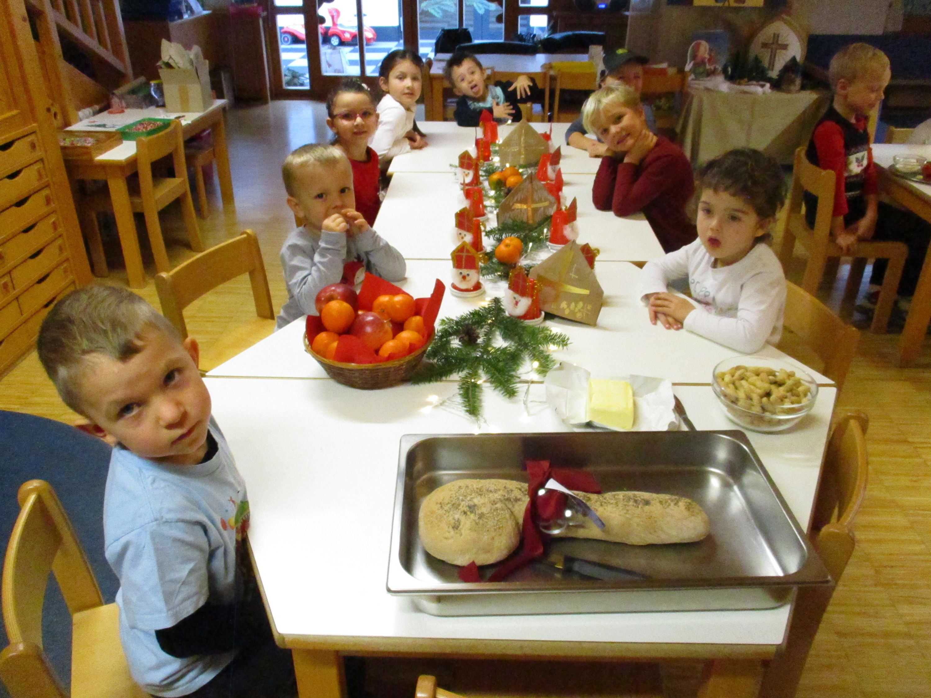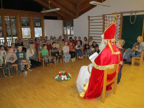 Basierend auf der Überlieferung des hl. Nikolauses von Myra, besuchte der Nikolaus der Personalvertretung die Kinder und übergab ihnen eine schmackhafte Nikolausjause und den Mitarbeiterinnen einen Semmelkrampus. Herzlichen Dank für die Krampusse. Er überbrachte auch die Botschaft, dass Werte , wie Teilen, Großzügigkeit und Nächstenliebe wichtige soziale Komptenzen sind.