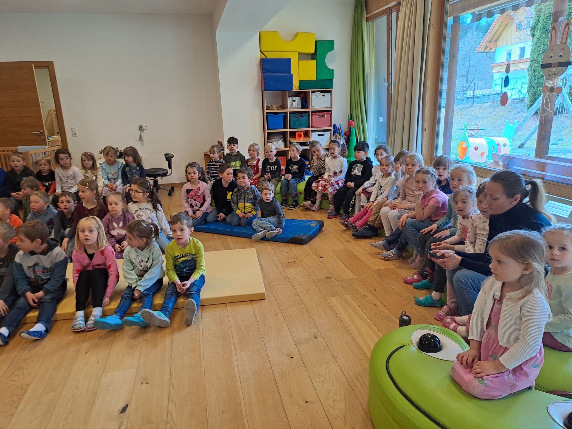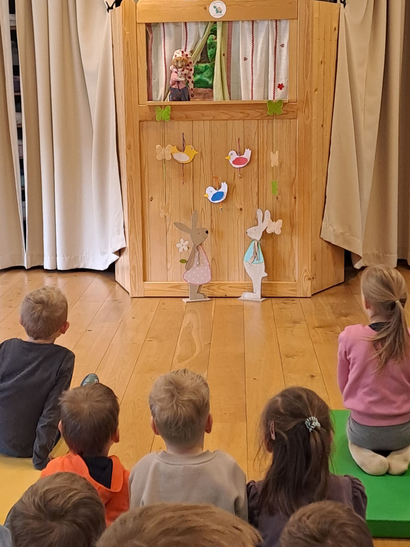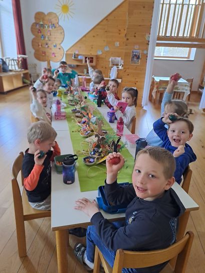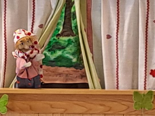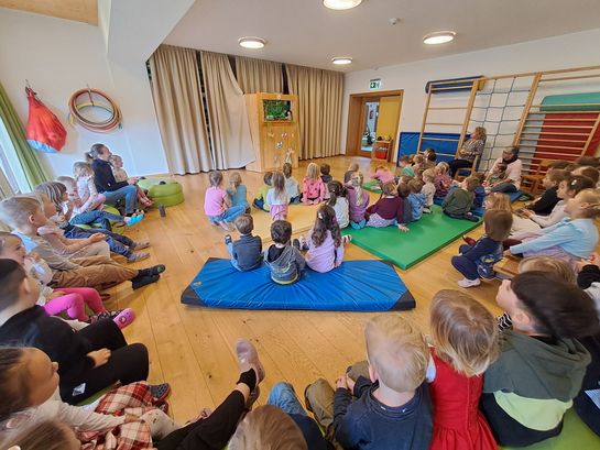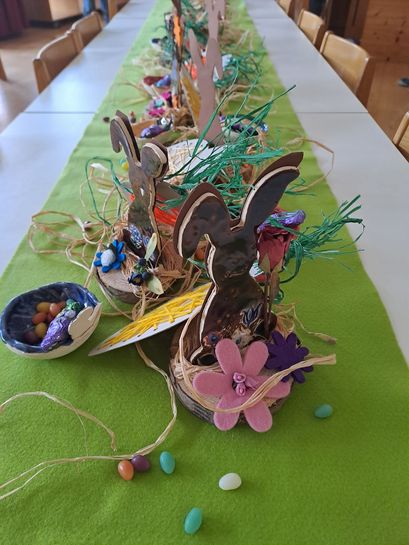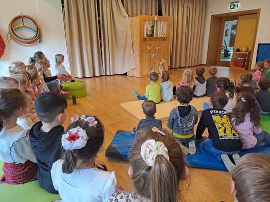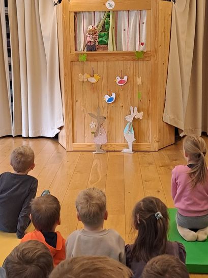 Nach einer gemütlichen Jause besuchte heuer der Kasperl die Kinder. Diesmal war nicht nur die Hexe mit dem Kasperl mit sondern auch der Osterhase.