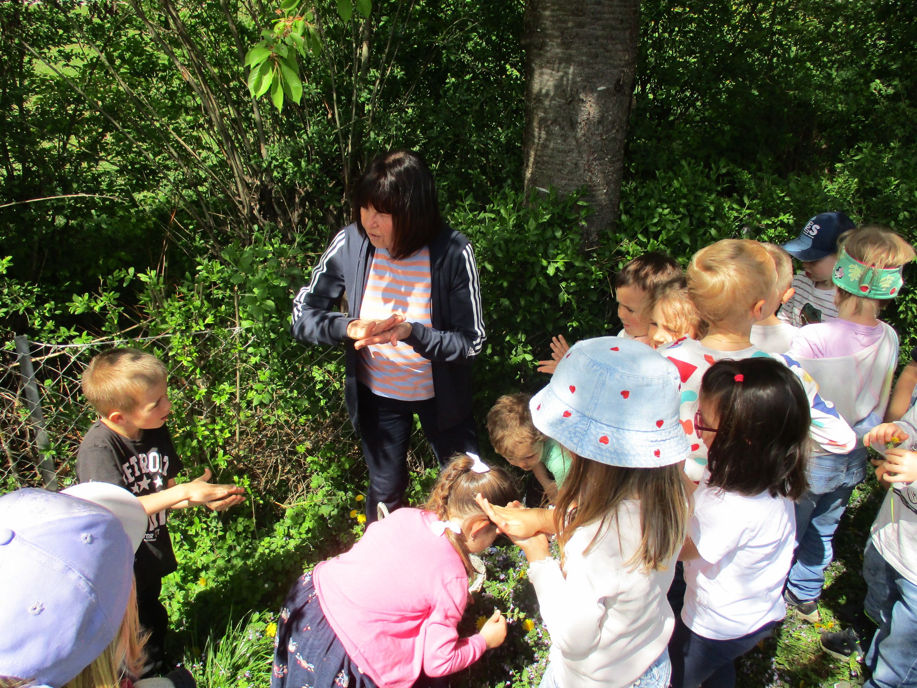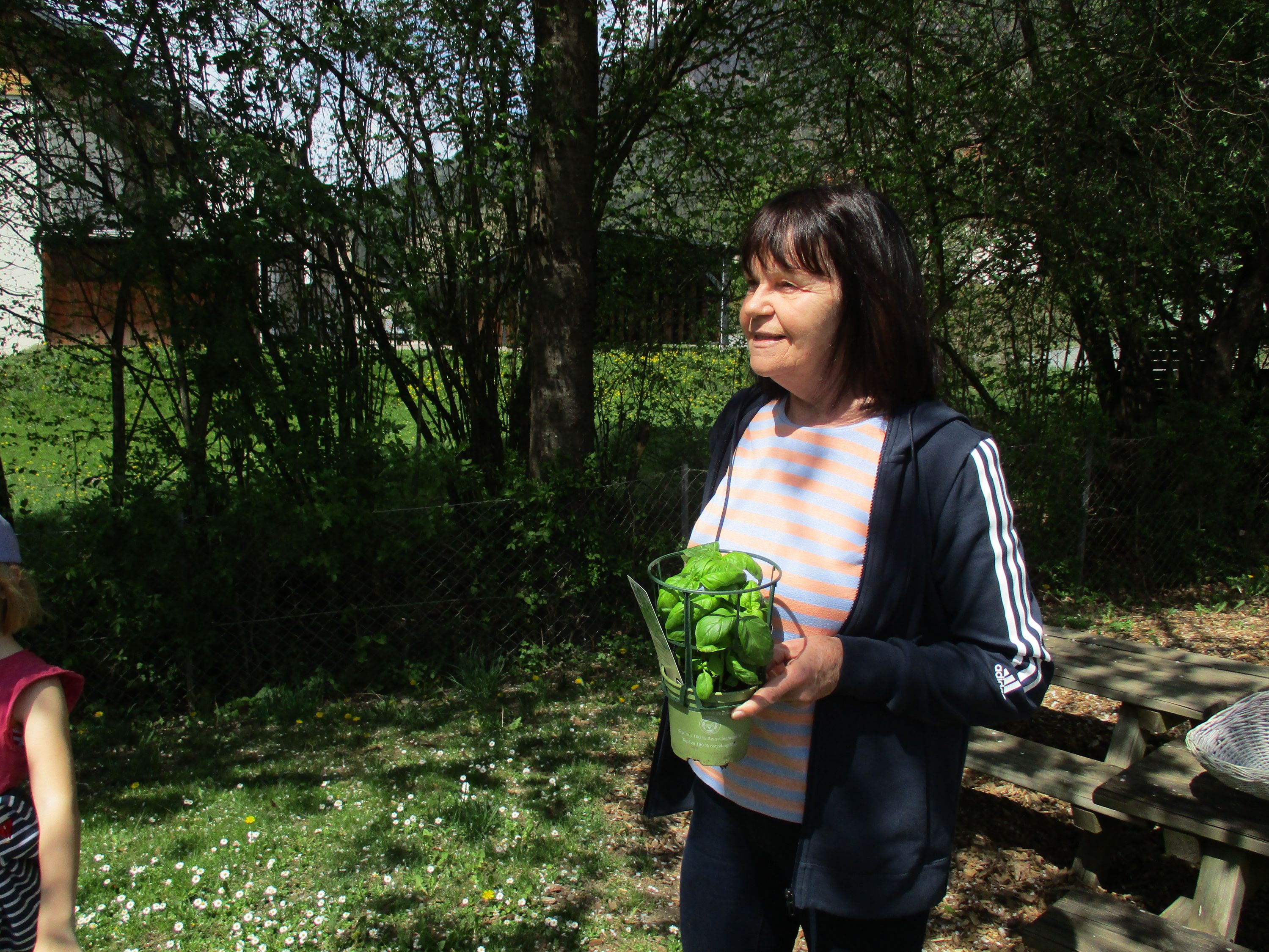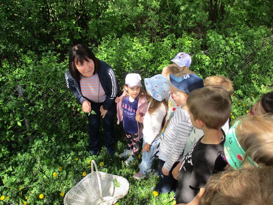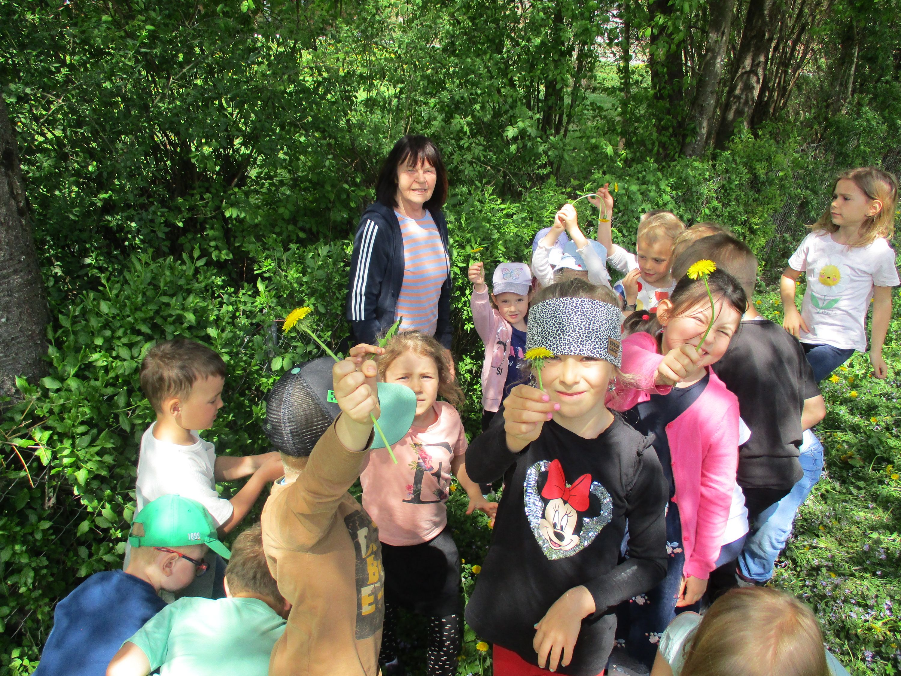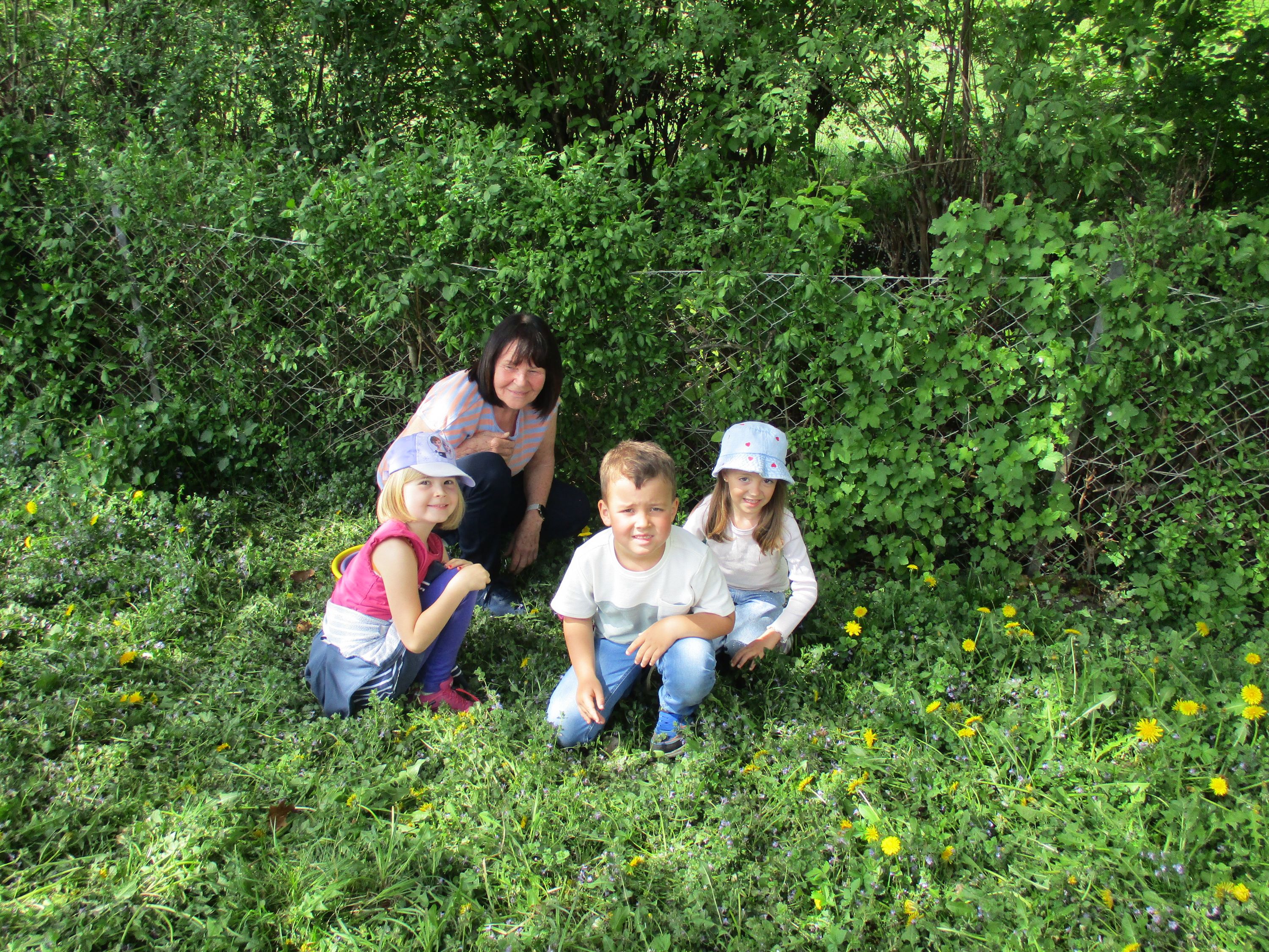 Mit Köchin und Kräuterexpertin Irene Primschitz wurden Wildkräuter, wie Löwenzahn, Gänseblümchen, Vogelmiere und Brennnessel gesucht und bestimmt. Die Sinne wurden beim Riechen der Kräuter geschult und schmeckten zur Nachmittagsjause auf das Butterbrot und als Frühlingskräutersuppe hervorragend.