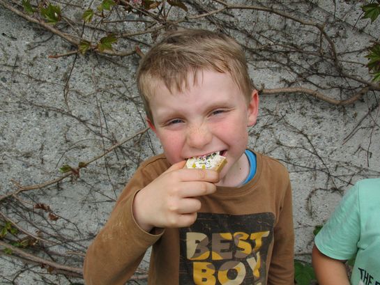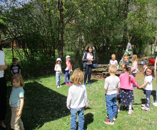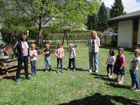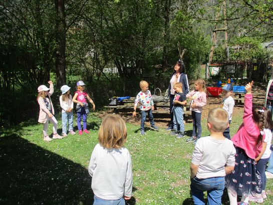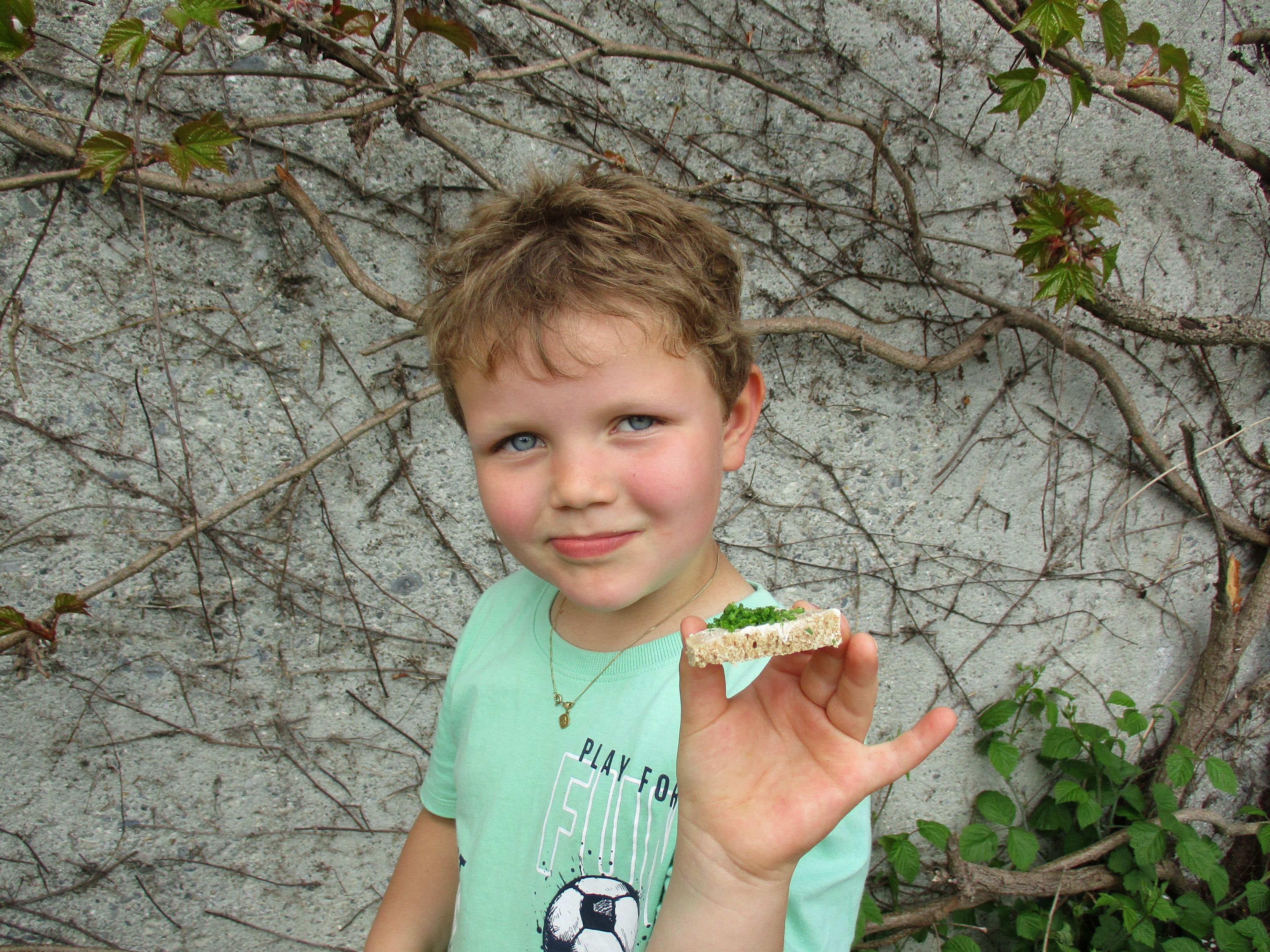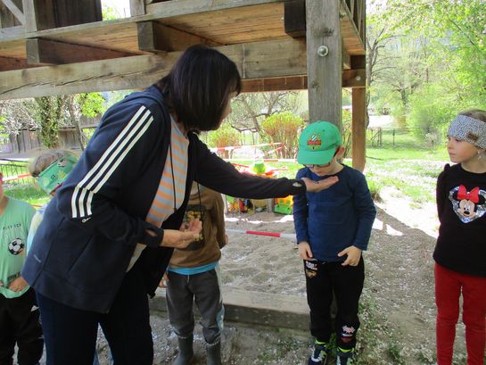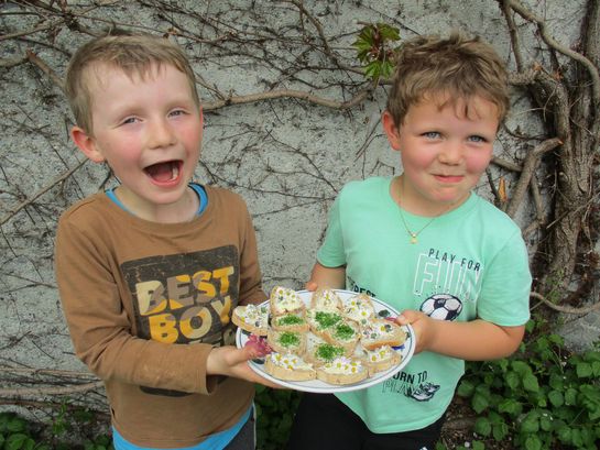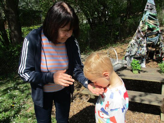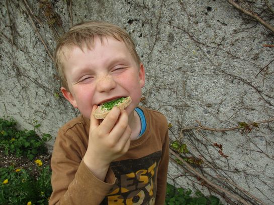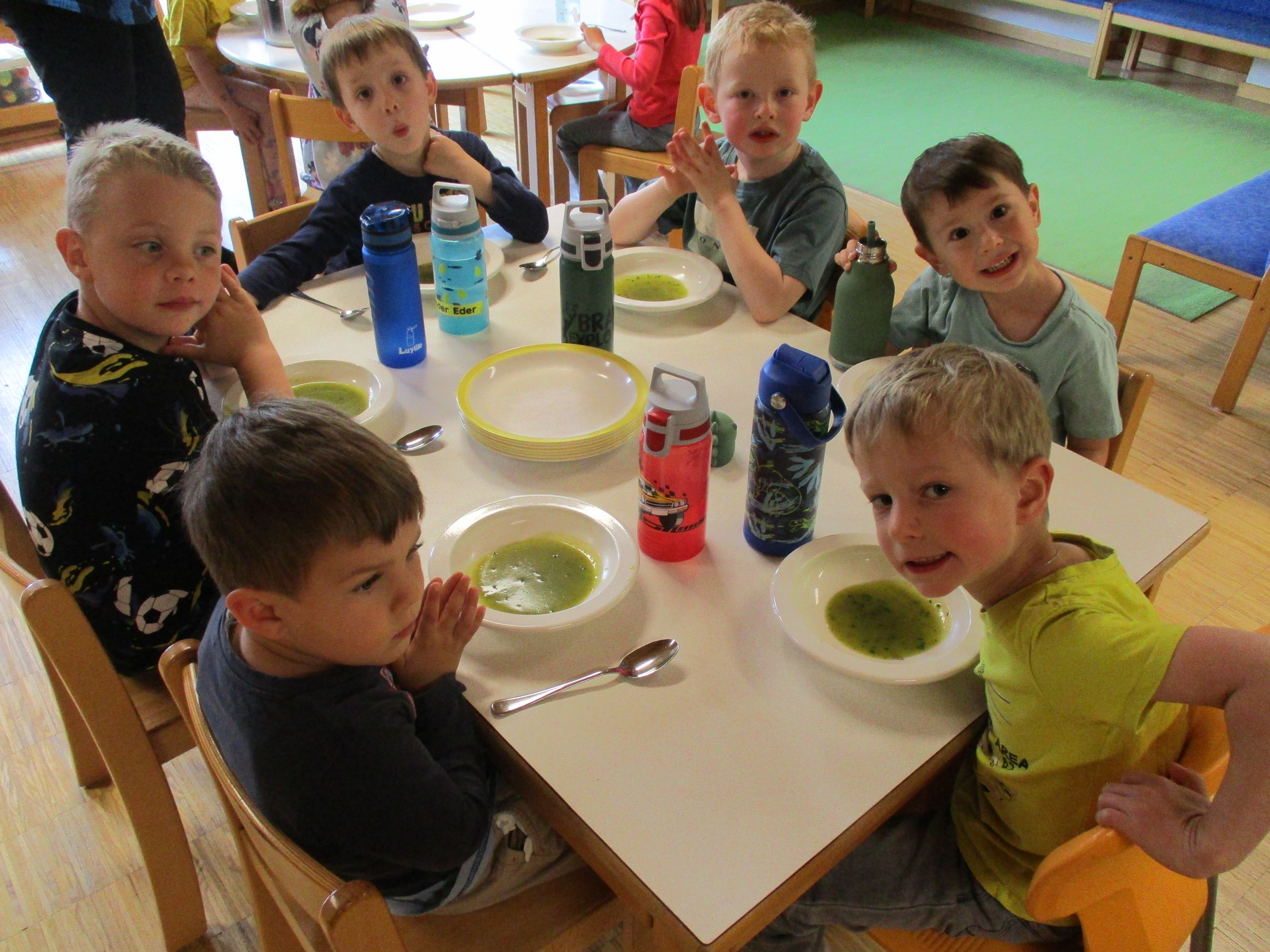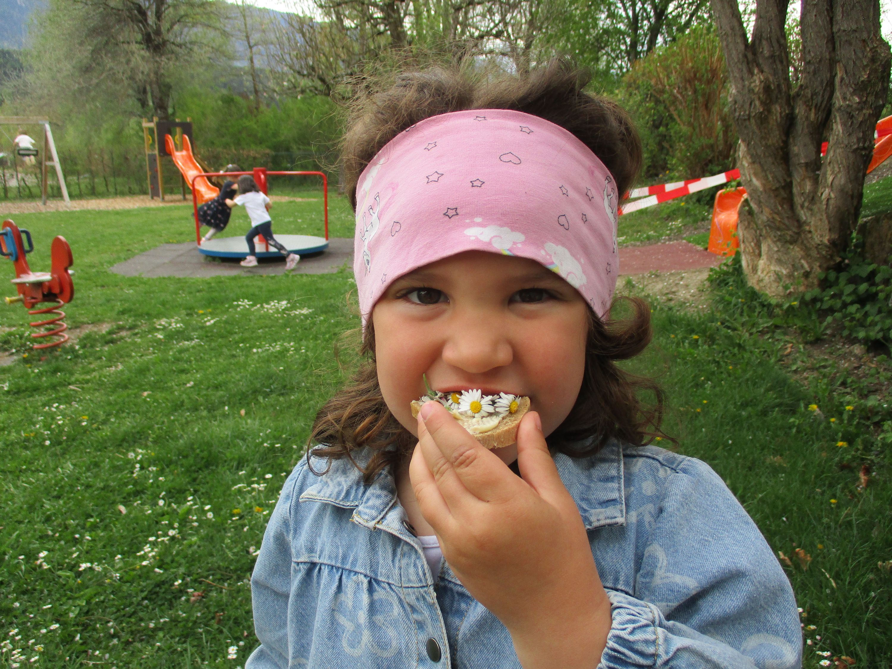 Mit Köchin und Kräuterexpertin Irene Primschitz wurden Wildkräuter, wie Löwenzahn, Gänseblümchen, Vogelmiere und Brennnessel gesucht und bestimmt. Die Sinne wurden beim Riechen der Kräuter geschult und schmeckten zur Nachmittagsjause auf das Butterbrot und als Frühlingskräutersuppe hervorragend.