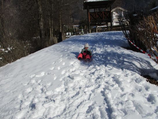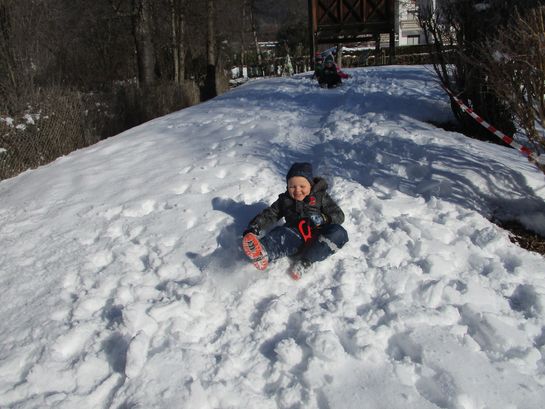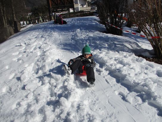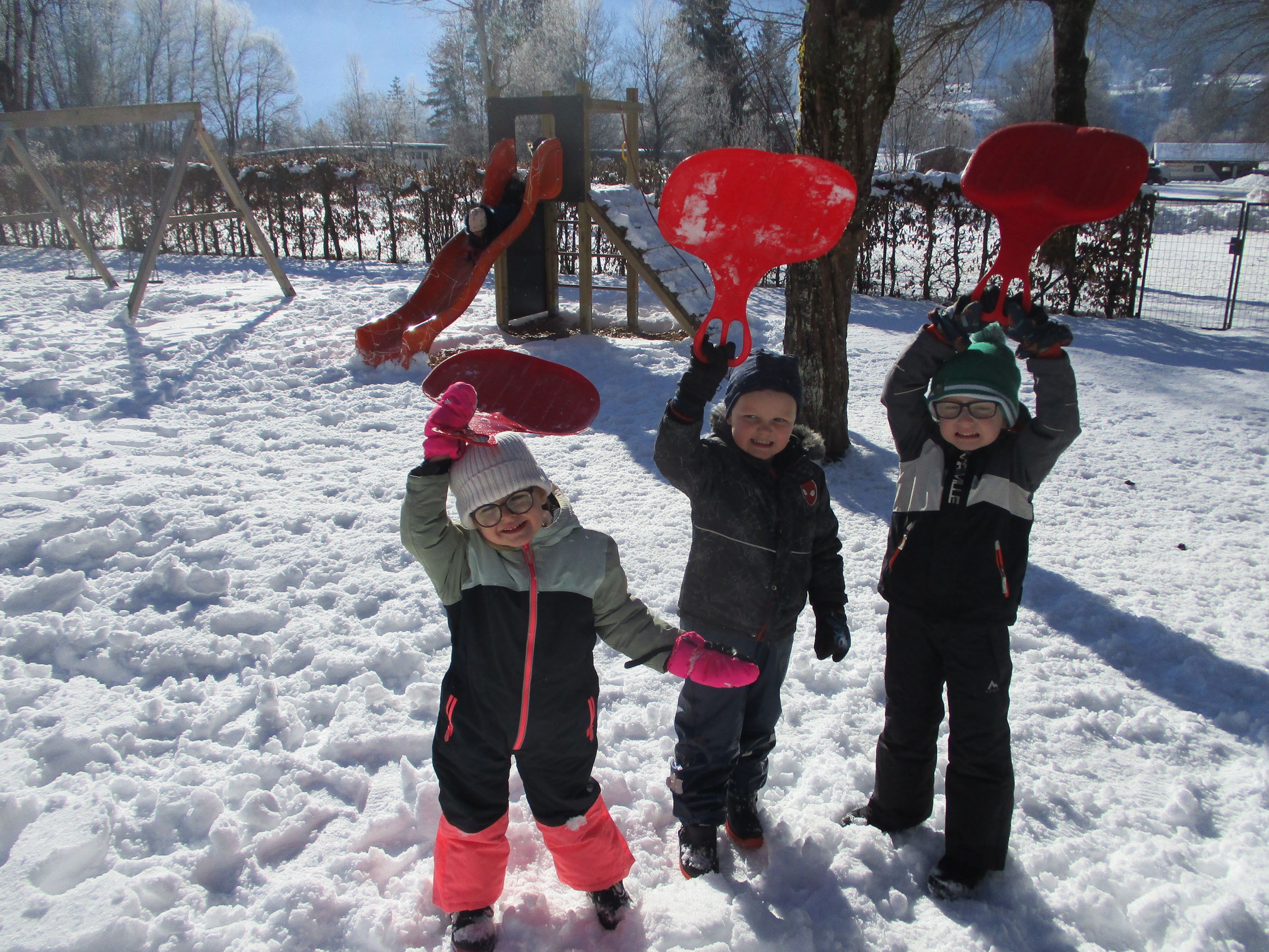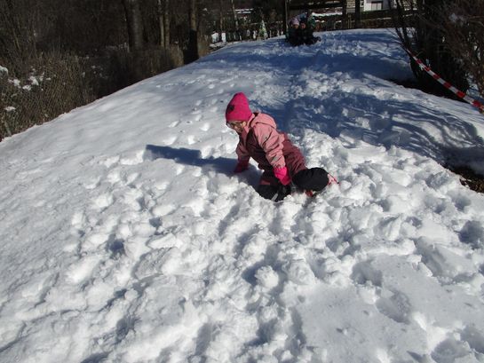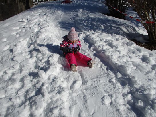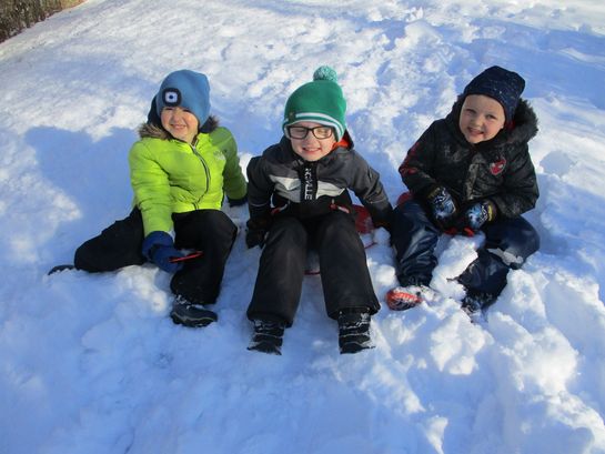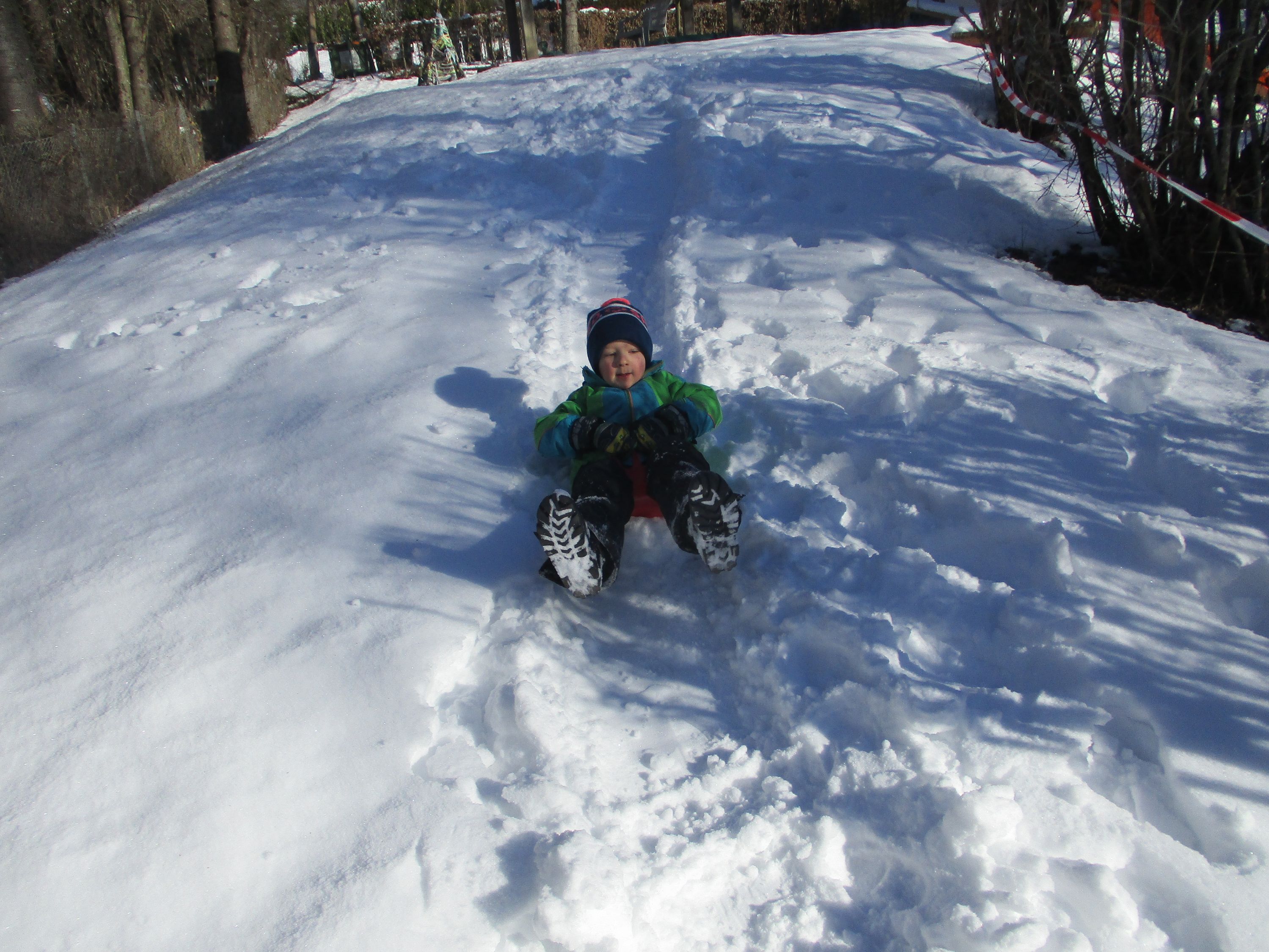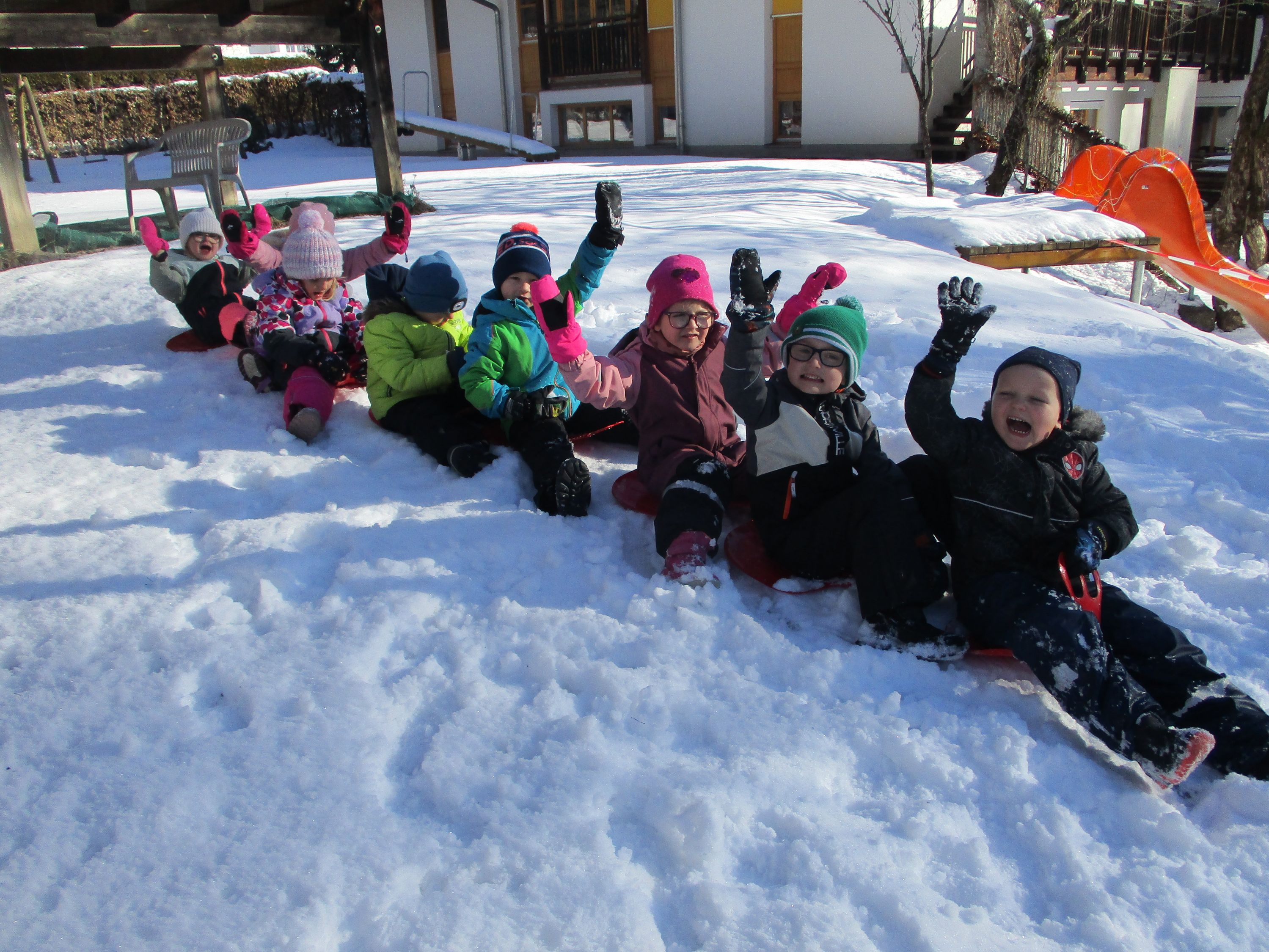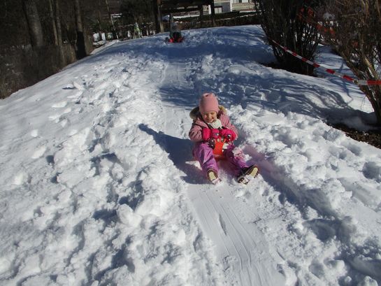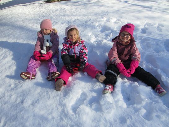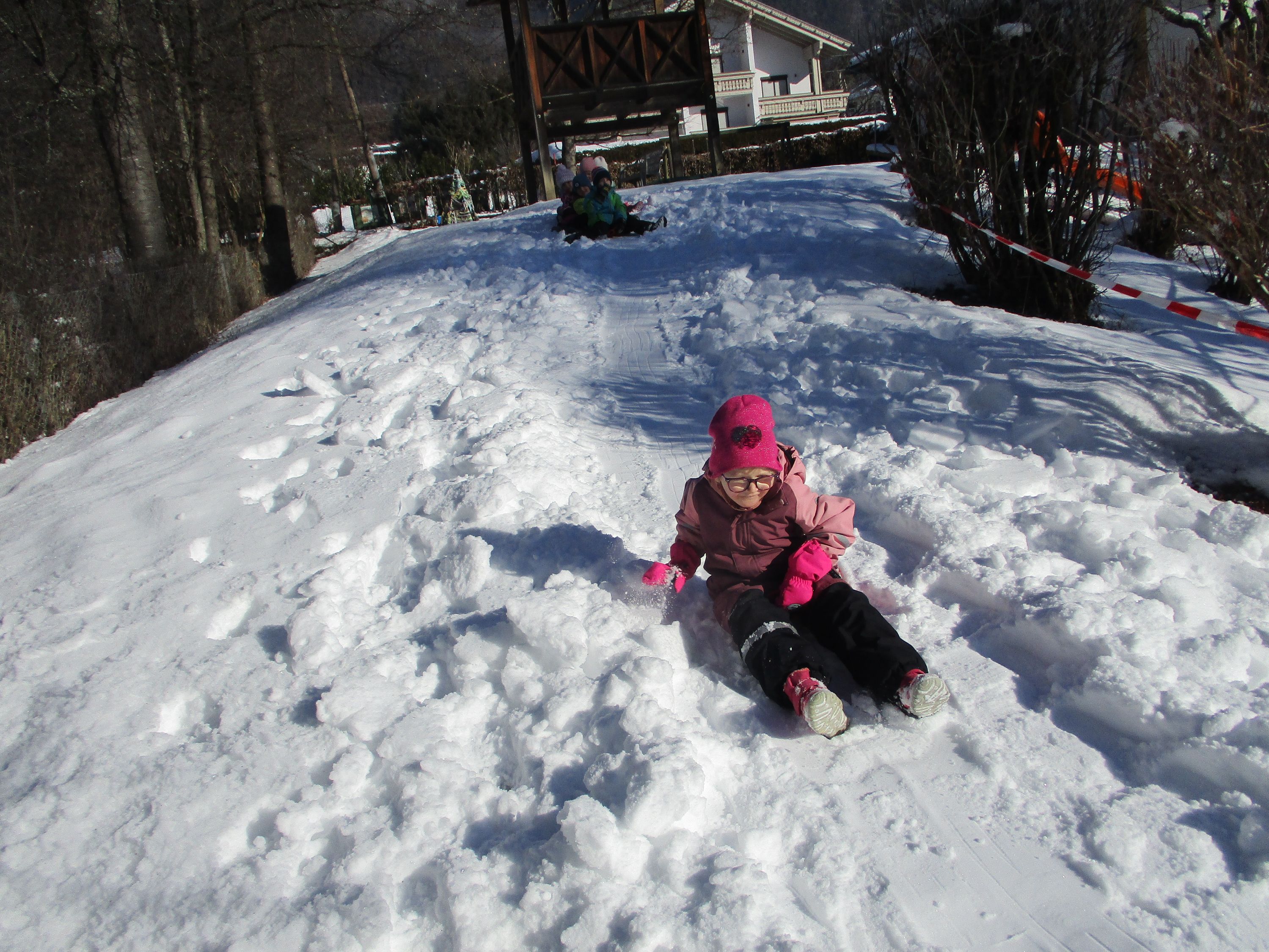 Die Kinder gestalteten mit ihren "Rutschis" eine Bahn am Hügel und rutschten dort vergnügt im Schnee. Allen Kindern wurde ein Pokal verliehen, da dies die Motivation stärken soll, die Anstrengung wertgeschätzt wird und der Fokus auf das Mitmachen und nicht auf den Sieg gelegt wurde.