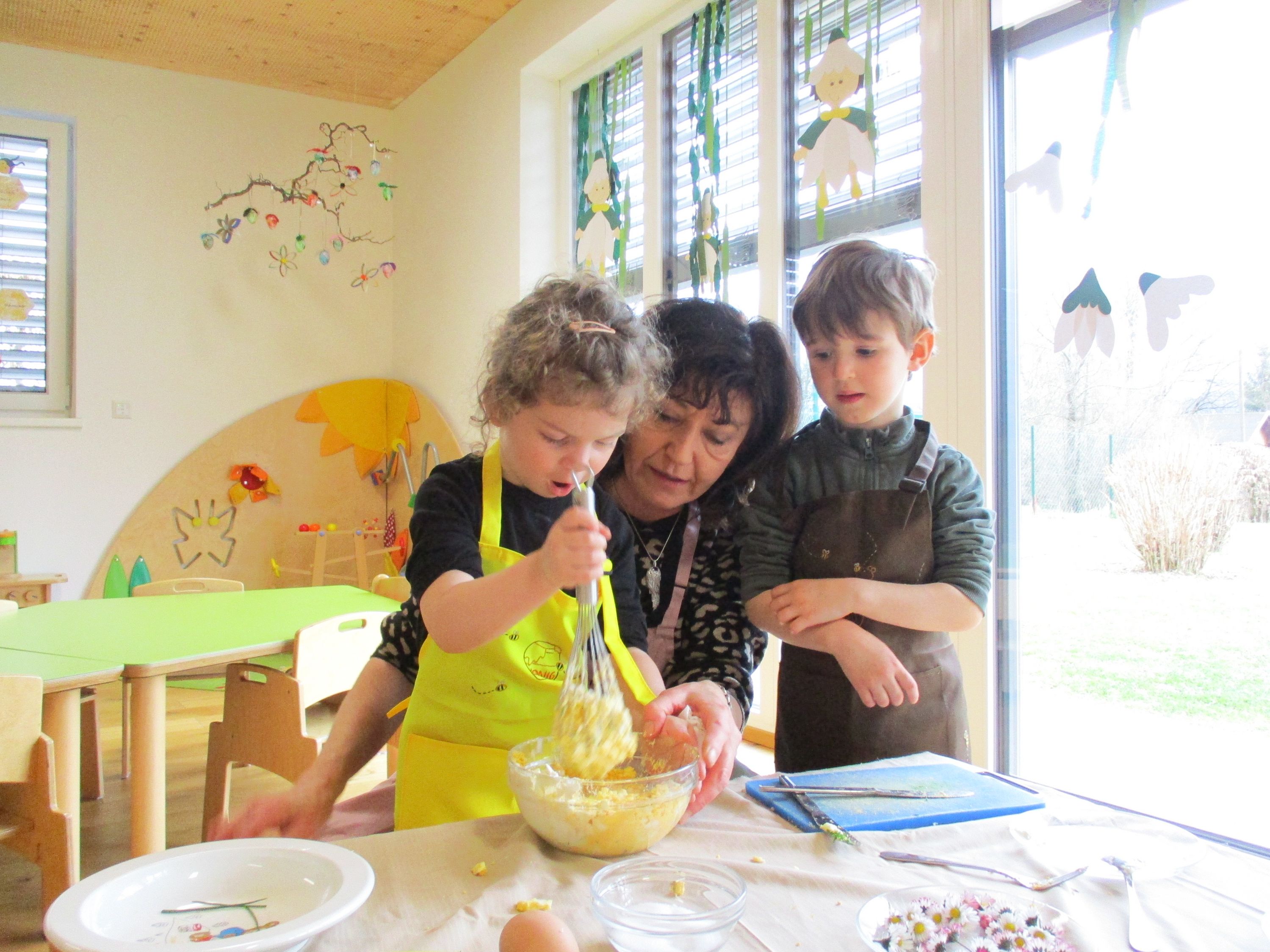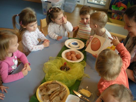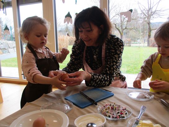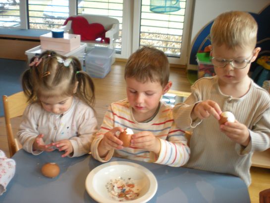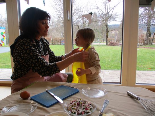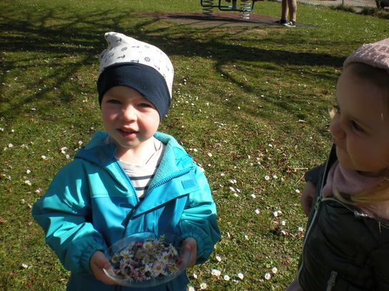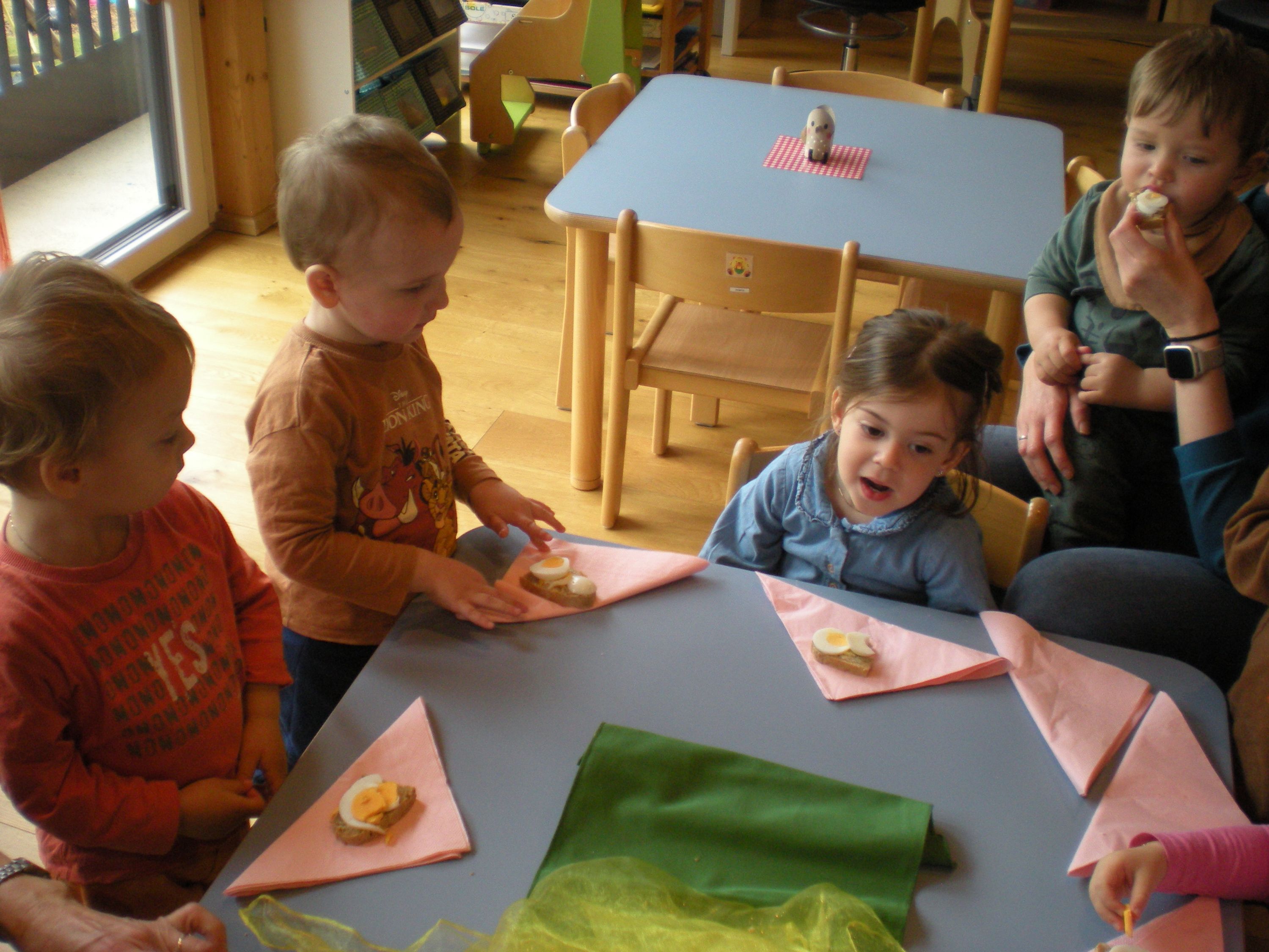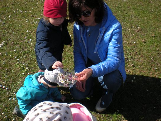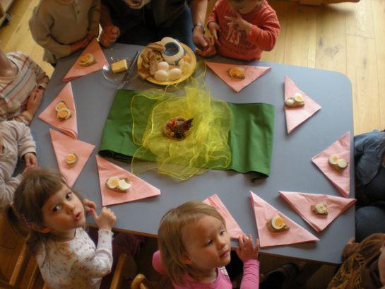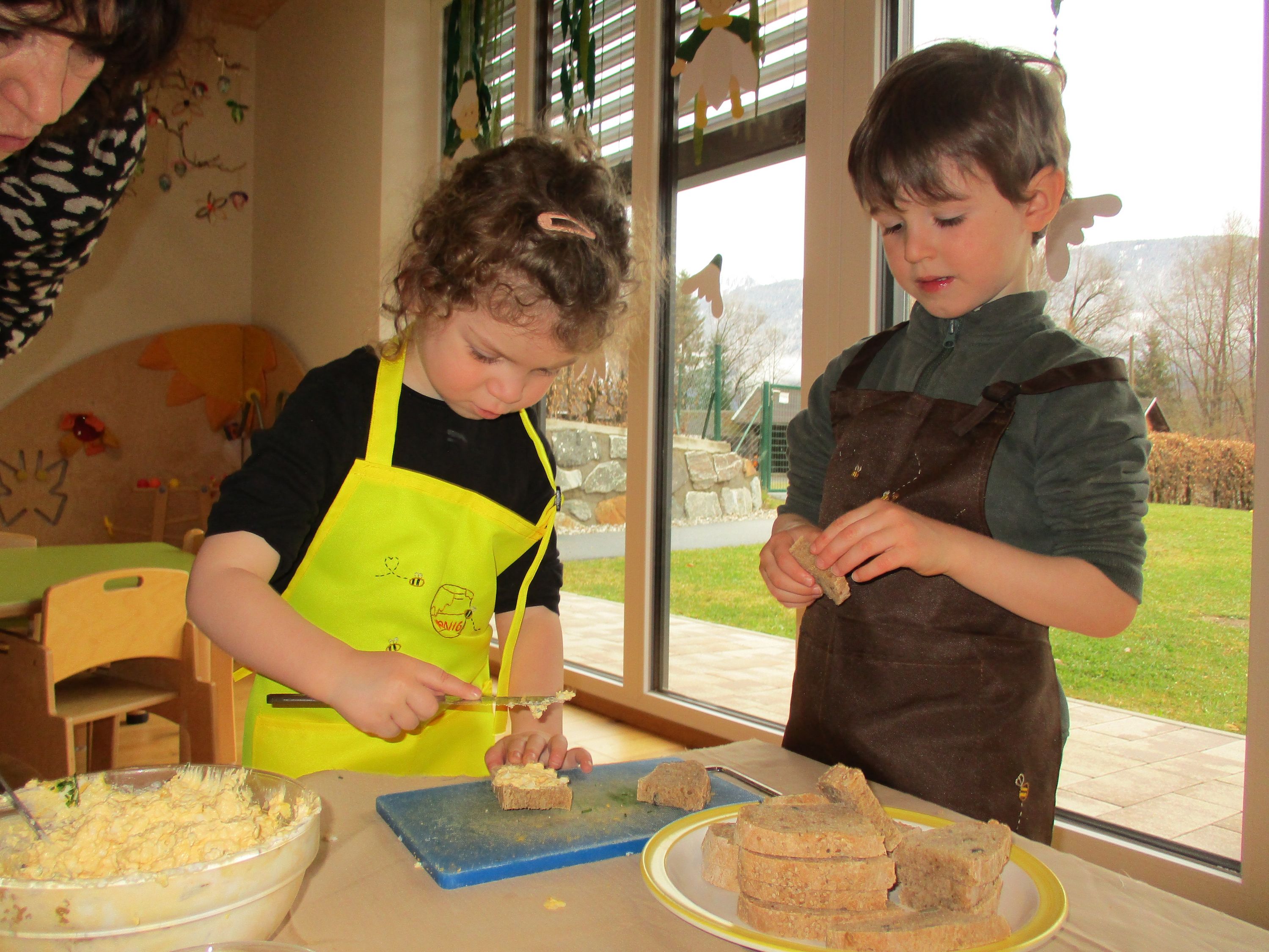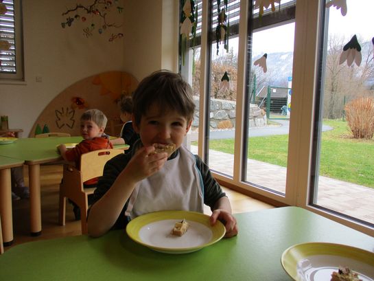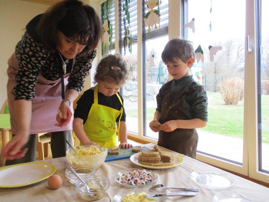 Eieraufstrich mit Gänseblümchen und Butterbrot mit hart gekochtem Ei wurden gemeinsam mit den Kindern zubereitet und verkostet.