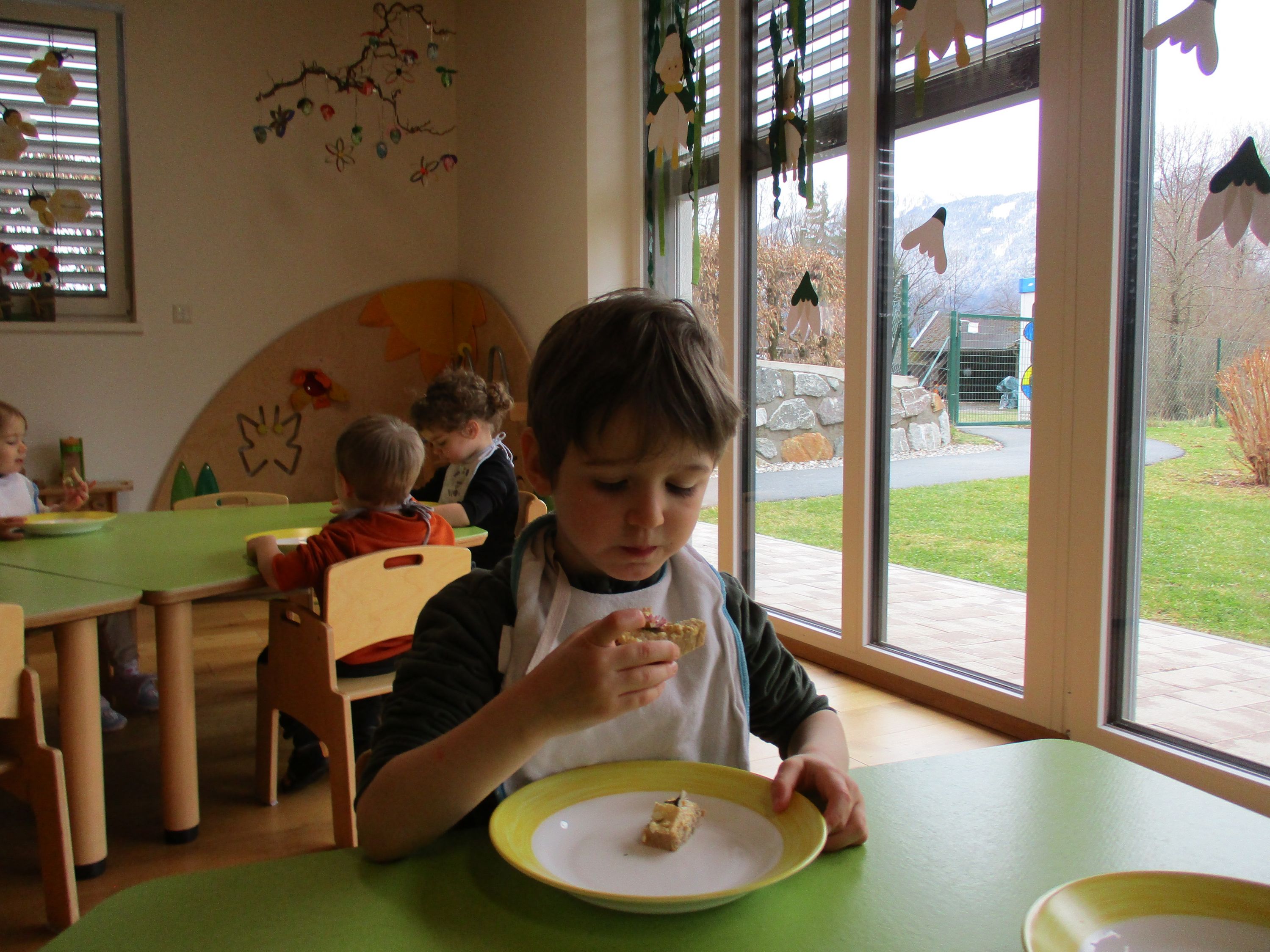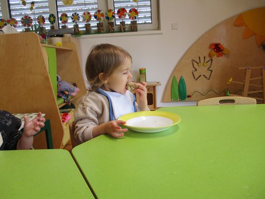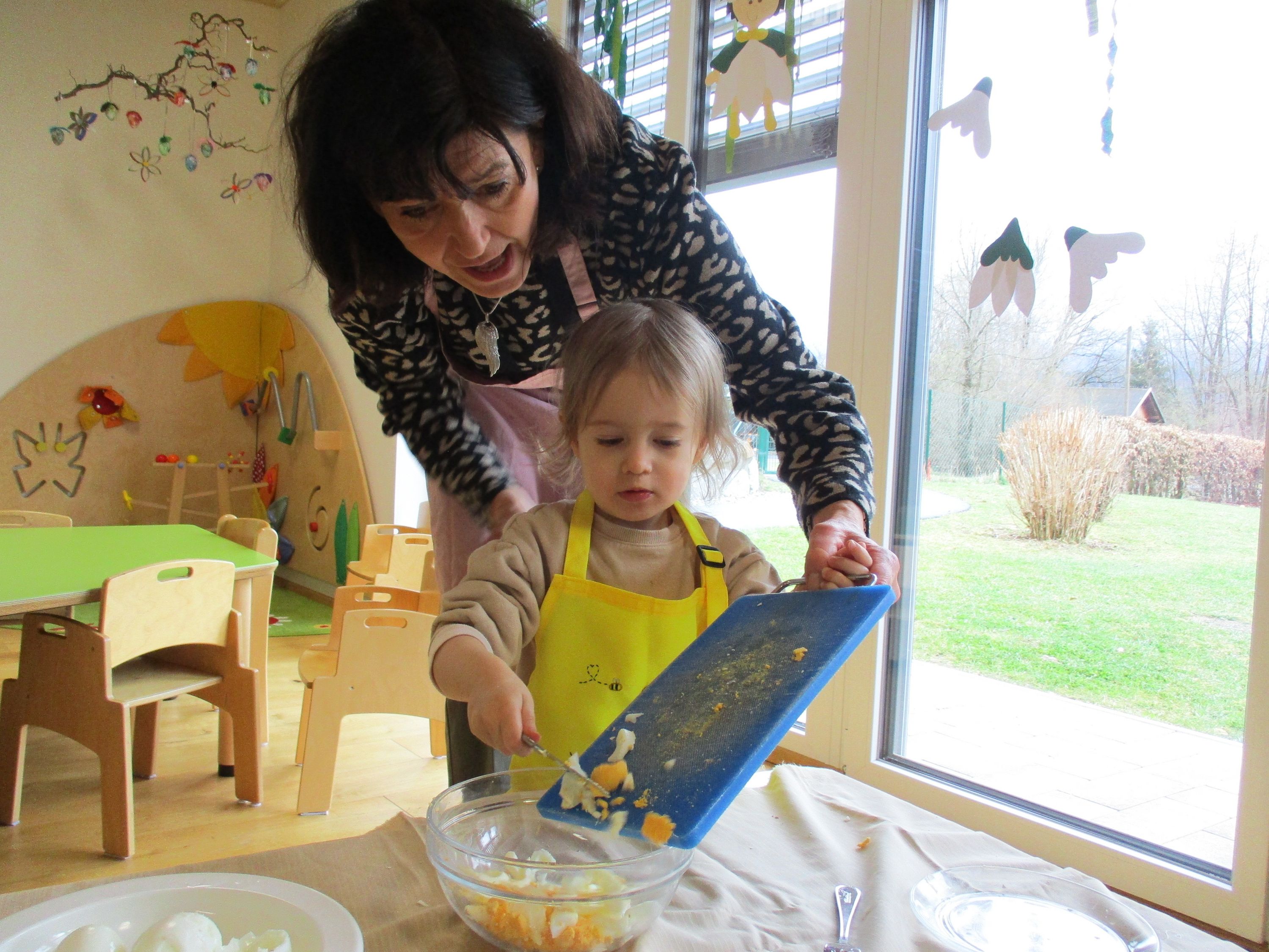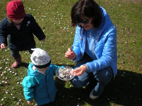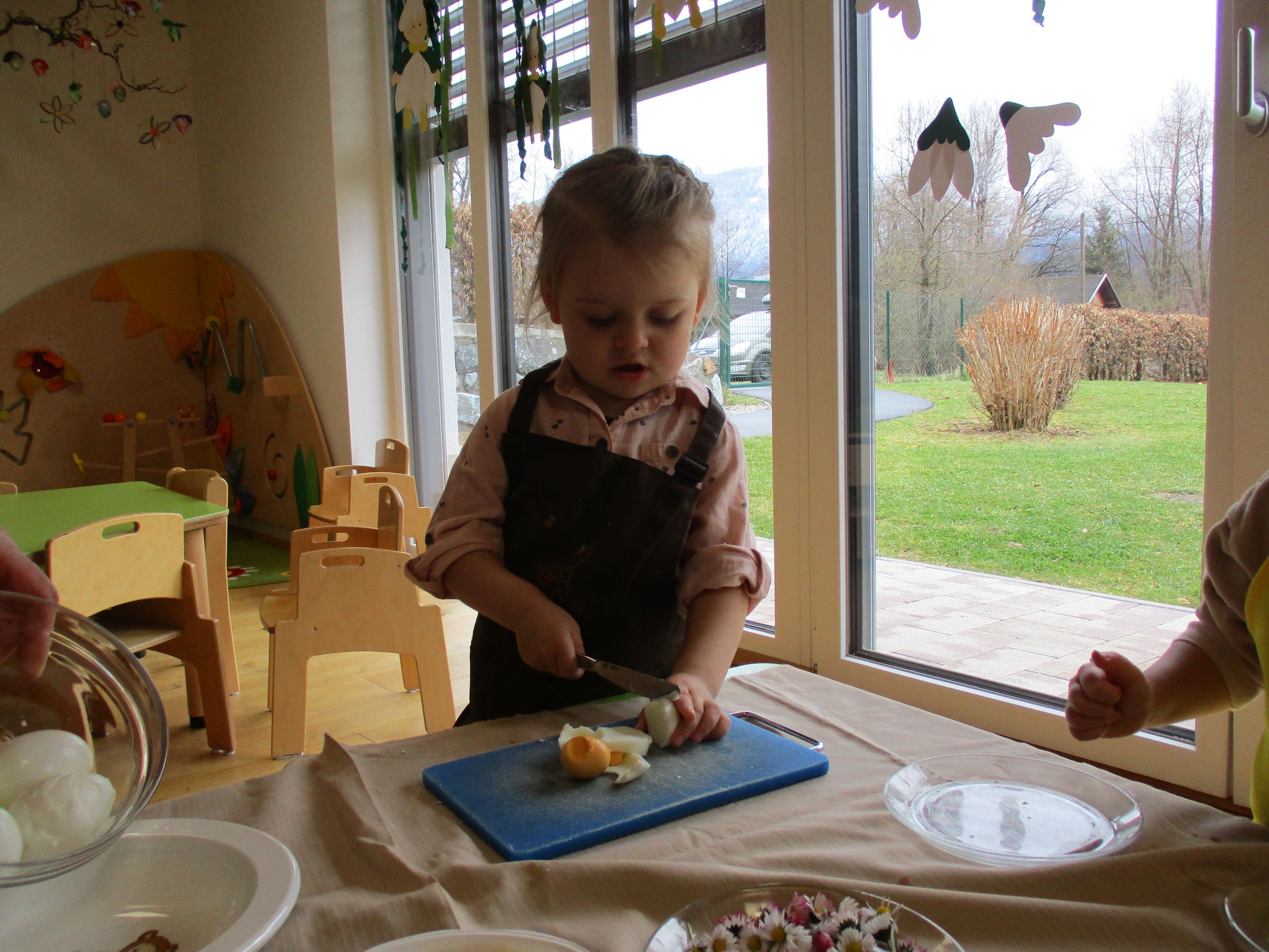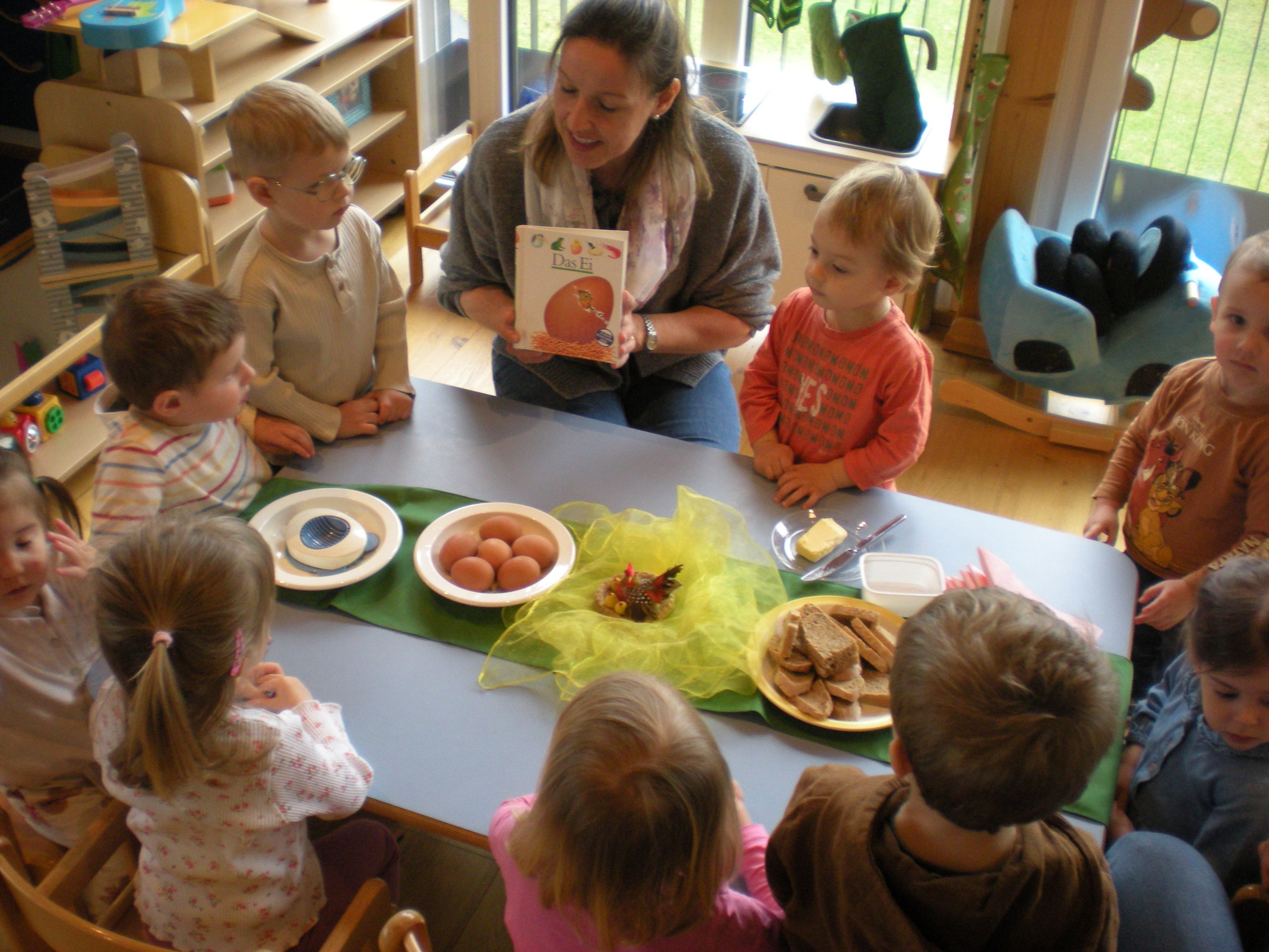 Eieraufstrich mit Gänseblümchen und Butterbrot mit hart gekochtem Ei wurden gemeinsam mit den Kindern zubereitet und verkostet.