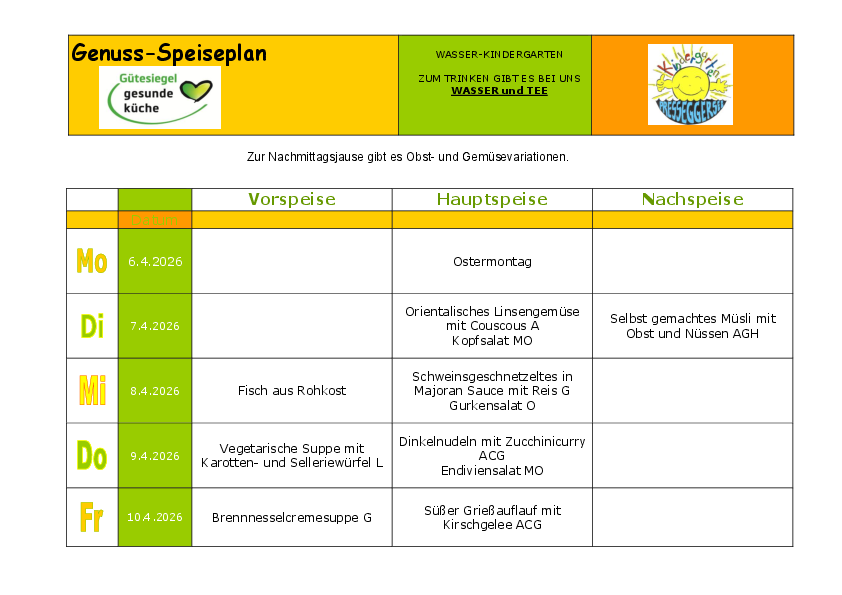 Die Speisenfolge vom 6.4. - 10.4.2026!