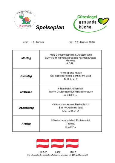 Speiseplan 19. bis 23. Jänner 2026