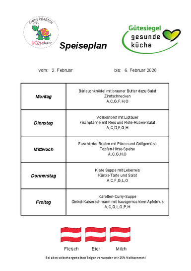 Speiseplan 2.-6. Februar 2026