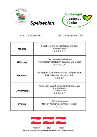 Speiseplan 24. bis 28. November 2025