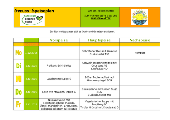 Die Speisenfolge vom 1.12. - 5.12.2025!