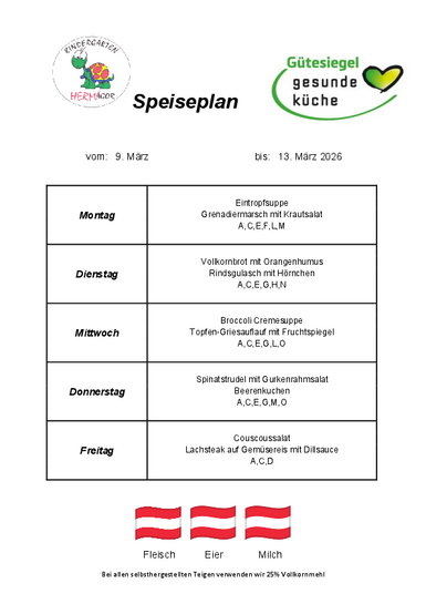 Speiseplan 9. bis 13. März 2026