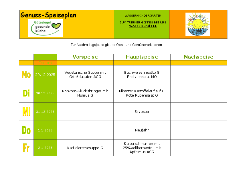 Die Speisenfolge vom 29.12.25 - 2.1.26!
