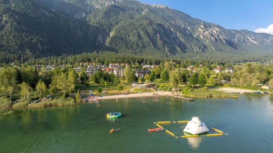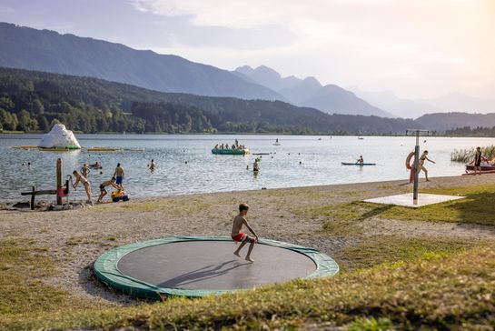 Mit einer BEACH BAR, einem KINDERSPIELPLATZ, 5 Meter hohem neuen EISBERG und TRAMPOLIN im Wasser, bietet das Strandbad viel Abwechslung für Groß und Klein.