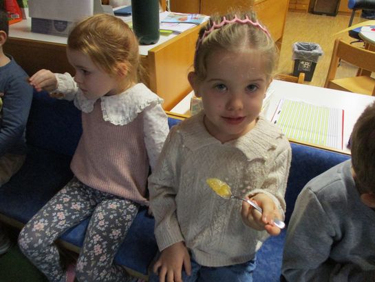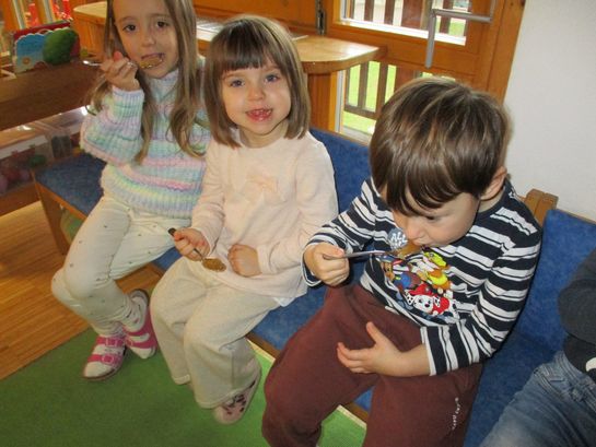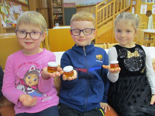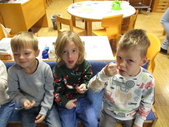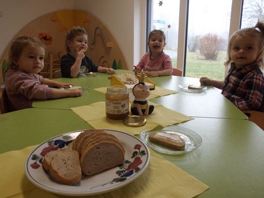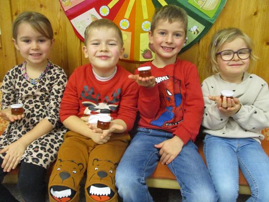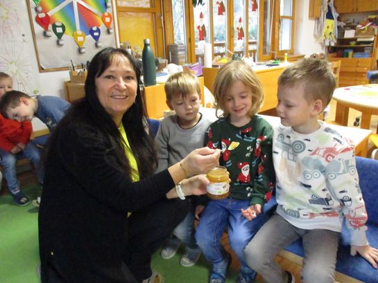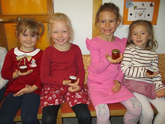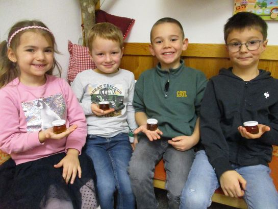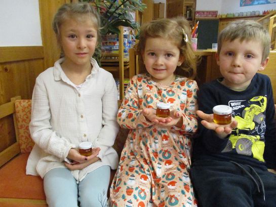 Am 7. Dezember ist der Gedenktag des hl. Bischofs Ambrosius, welcher der Schutzpatron der Imker, Wachszieher und Lebkuchenbäcker ist. Imker Josef Brugger überraschte die Kinder der Mäusegruppe mit einem Honiggläschen. Herzlichen Dank dafür!